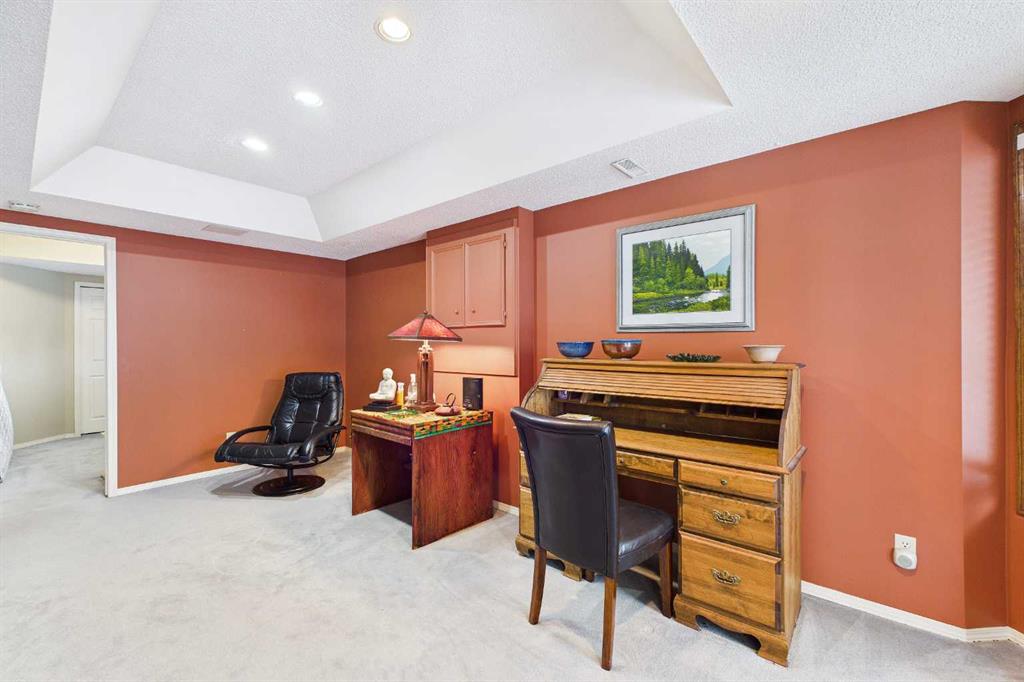 The open-concept main floor features a bright, functional space. At the heart of the home is a kitchen that flows seamlessly into the dining area—perfect for hosting. The spacious living room offers a comfortable place to relax while enjoying the view. The primary bedroom includes a private walk-in closet and spacious ensuite. A dedicated home office and convenient main-floor laundry round out this level. Lower Level: