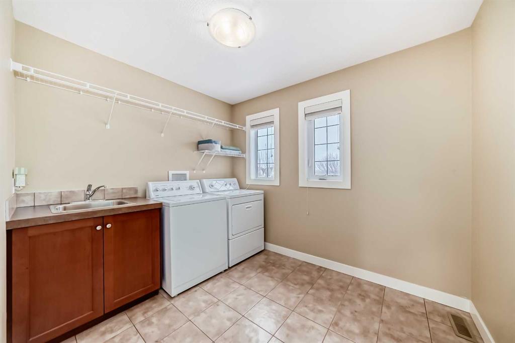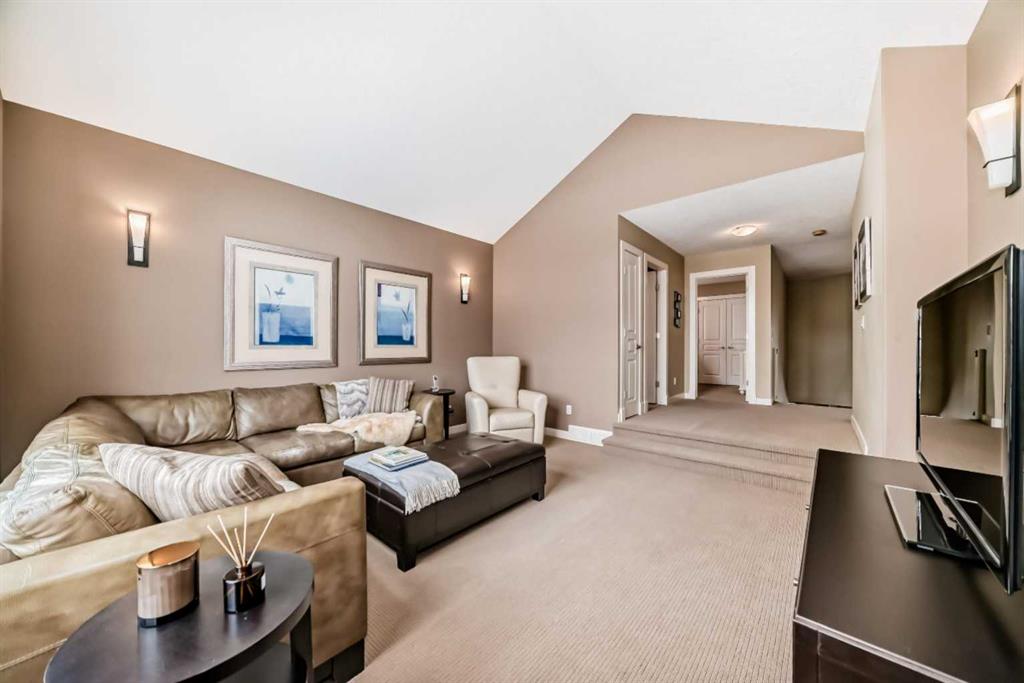 Upstairs, you’ll find three GENEROUSLY SIZED BEDROOMS, including a LUXURIOUS primary retreat. The spa inspired 5-piece ensuite features DUAL VANITIES, an OVERSIZED tiled glass shower, a soaker tub, and VAULTED CEILINGS leading into a spacious walk-in closet. Completing the upper level is a bright VAULTED BONUS ROOM with mountain views, a four-piece bathroom and a large laundry room with sink.