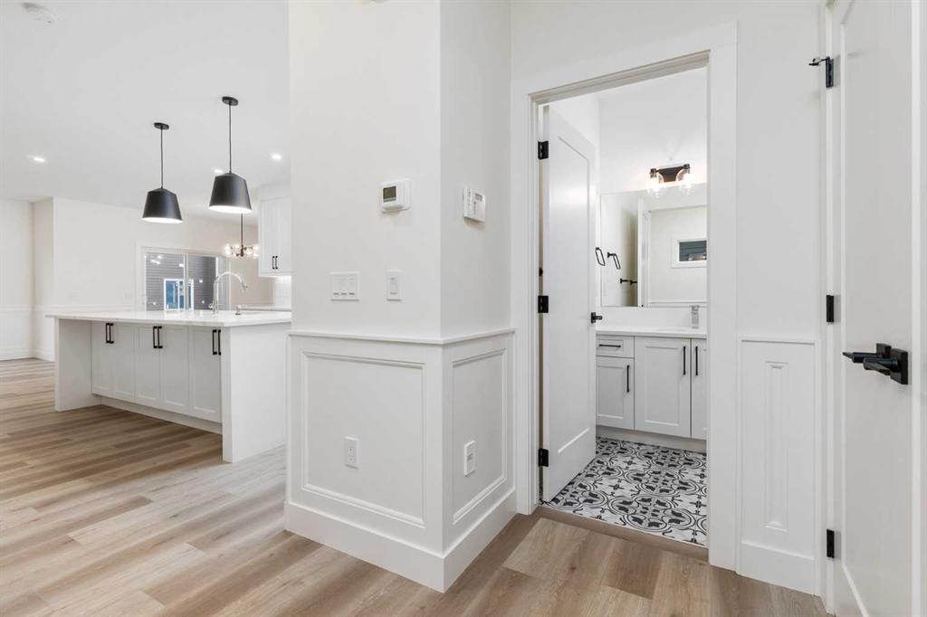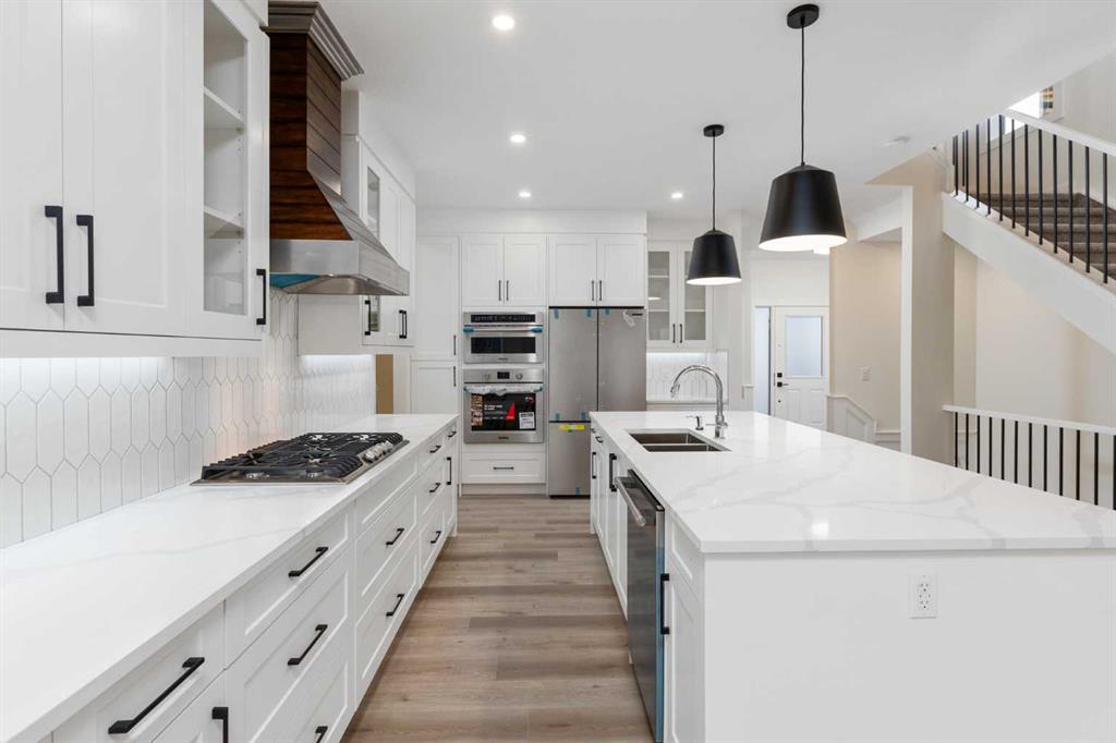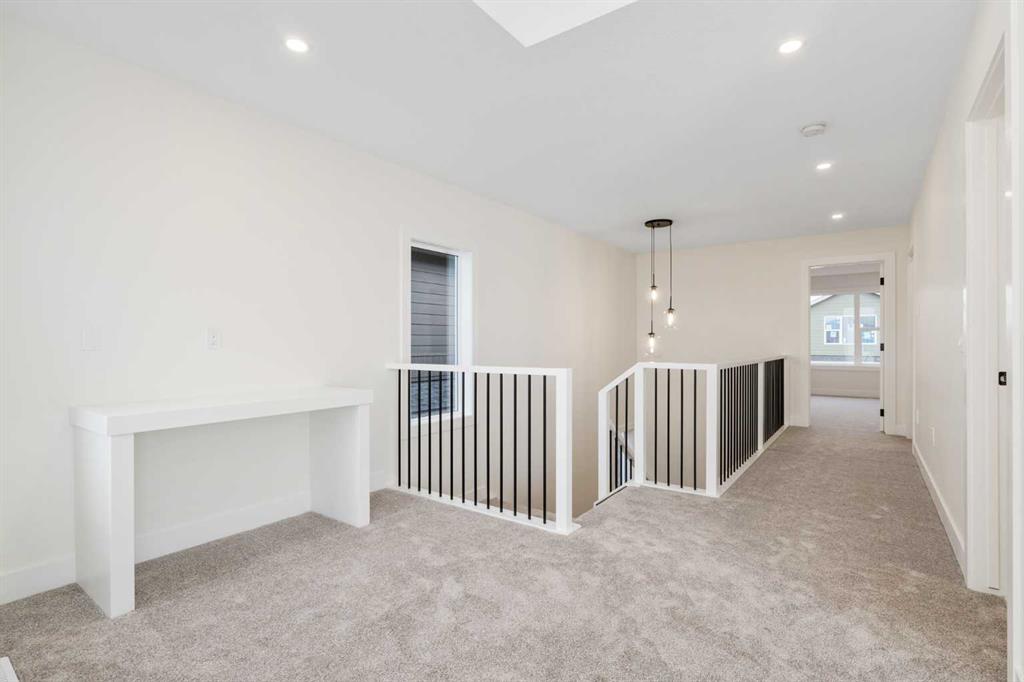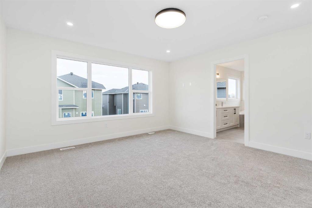 Welcome to your new home! This exceptional, brand new, detached home located in Mandalay Estates, Carstairs is situated close to downtown and recreational spaces such as the Carstairs Community Golf Course, Memorial Arena, and Campground. This stunning two-storey property is also just a short distance from Hugh Sutherland School and a future retail development . Meticulously designed by Marygold Homes, this home offers a capacious, open floor plan, with 2392 square-feet of living space, 3 bedrooms, and 2.5 bathrooms making it a flawless fit for families looking for a pleasant everyday living space. Luxury vinyl plank flooring on the main floor, and plush carpet on the upper floor, complemented by large windows that flood the space with natural light throughout give the home a thoughtful, elevated, and elegant touch. The hardie-board exterior and an attached triple car garage add practical value to the property’s striking appearance. The main floor is accessible from the spacious garage via the mudroom fully equipped with custom-built storage space. The mudroom leads directly into the kitchen which features a stunning walk-in pantry, large central island with bar-style seating, stainless steel appliances, and soft-close hardware throughout. The full-height shaker cabinetry and quartz countertop combo provide both sufficient storage and an exquisitely sophisticated aesthetic. Adjoining the urbane kitchen is an inviting dining area with large patio doors that not only bring in an abundant amount of natural light, but also lead outside to the sizable treated-wood deck and backyard. A capacious and welcoming living room is adjacent to the dining room, complete with a mantle and tile-surrounded gas fireplace, perfect for family get-togethers. The in-home office space offers ample room and an elegant glass door for both privacy and productivity. The upper level features three spacious bedrooms, including the master suite complete with oversized windows and an astonishing built-in walk-in closet with custom-shelving and sufficient storage space. The massive 5-pc ensuite features a glass shower, built-in corner soaker tub and vanity with dual sinks. The laundry room, conveniently located on the second floor, comes complete with custom cabinetry. Neighboring this space is a built-in display cabinet and entertainment center as well as a separate built-in desk with custom shelving, a full 4-pc bathroom, and a super-spacious bonus room, ideal for quality family time. The two secondary bedrooms, each with separate built-in closets, complete the upper-level layout. The unfinished basement has rough-ins for a future bathroom – a notable and customizable add-on to suit a growing family’s needs. **GST Rebate, if any, shall go to the seller. PLEASE NOTE: Photos used of are of the same/similar layouts or previous projects and are for reference and illustrative purposes only.**