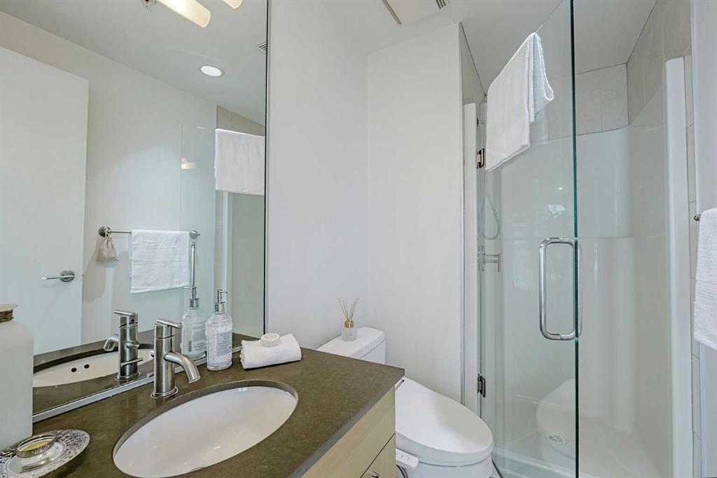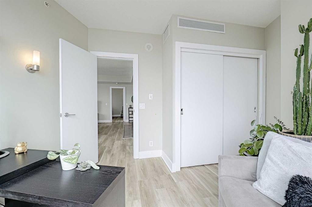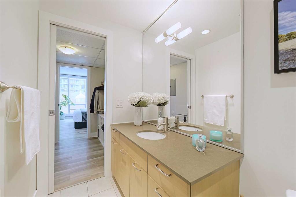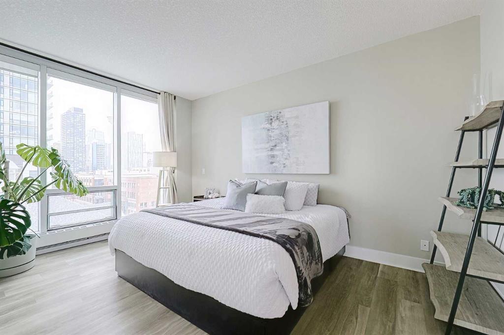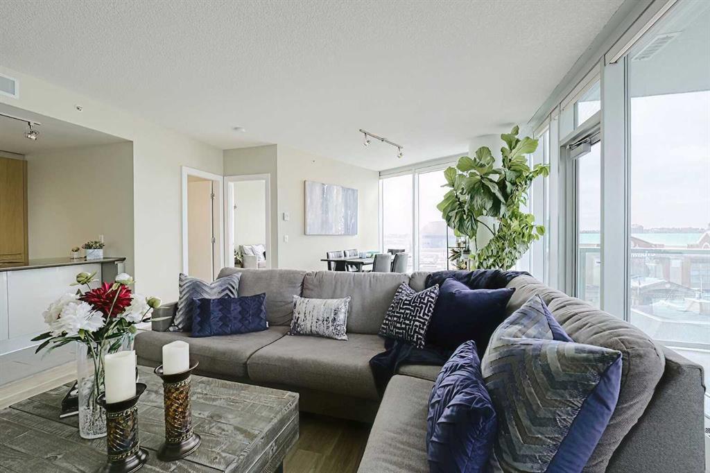 Your sweet spot in Victoria Park, the heart of Beltline. A delightfully walkable location just steps from downtown Calgary’s brand new event centre, opening in the Fall of 2027! This luxurious two-bedroom, two-bath condo in the coveted Arriva building is the definition of stylish living. With over 1,014 square feet of living space, this SW-facing suite is drenched in sunshine and boasts soaring 9-foot ceilings. Floor-to-ceiling windows provide jaw-dropping views of the city, Calgary Tower and Saddledome. Walk to concerts and events, Cowboys Casino and Studio Bell. Shopping nearby. Whip up culinary masterpieces in the expansive kitchen, featuring sleek quartz counters, panelled fridge and dishwasher, and high-end Miele stainless steel appliances. The upgraded vinyl plank floors add a touch of elegance, making every inch of this space feel oh-so-inviting. The huge master suite is a dream, complete with a walk-through closet and a spacious private ensuite. Your guests will feel right at home with a 3-piece bath just outside the guest room door. With a concierge at your service (keeping your food and parcel deliveries safe), a pet-friendly vibe, and a well-managed condo board, you’ll be living your best life close to the Stampede grounds, public transit, delicious restaurants, and fabulous shopping. Perks include heated underground parking, bike storage room and a storage locker for the extras. Turnover at Arriva is low, so you know you’ve found something special! Schedule your appointment to view. We can’t wait to show you around!