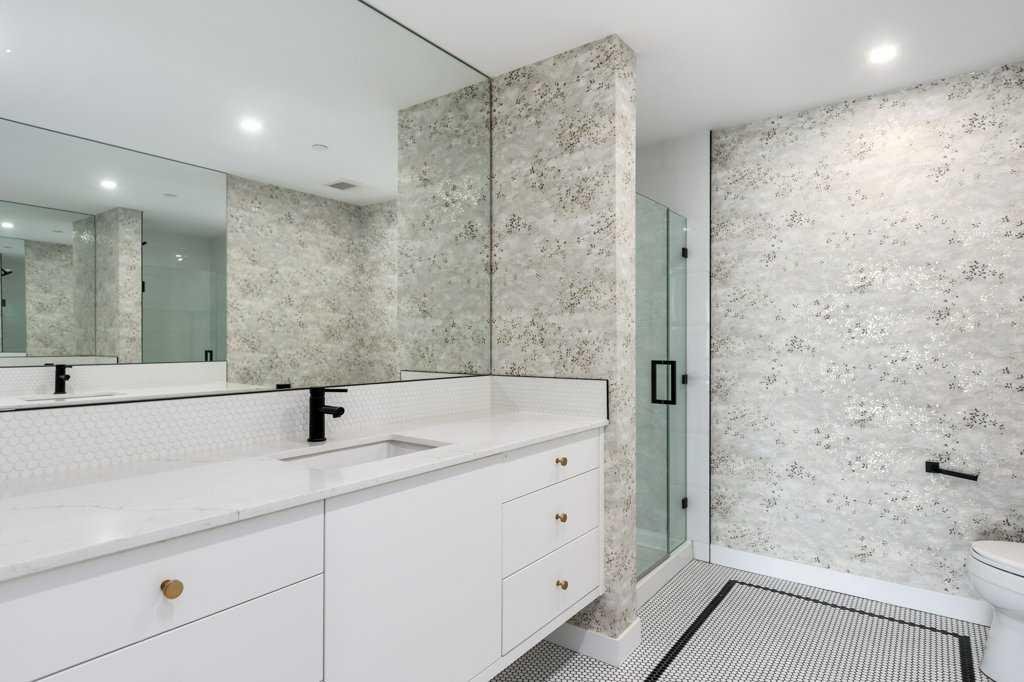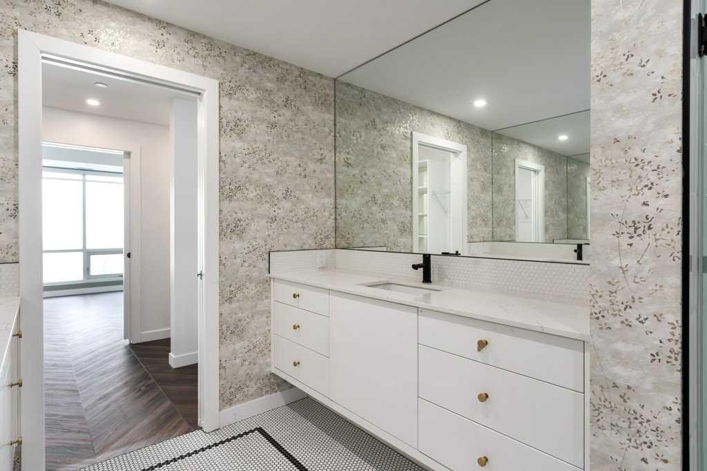 Inside, the layout is exceptionally functional boasting two spacious bedrooms, each with its own private 4-piece ensuite—perfect for guests, roommates, or a refined primary suite plus dedicated office. A separate powder room, offering added convenience rarely found in condos of this size. Luxury vinyl plank flooring throughout the main living areas for durability and style and unique mosaic tile flooring in the bathrooms, adding texture and a designer touch.