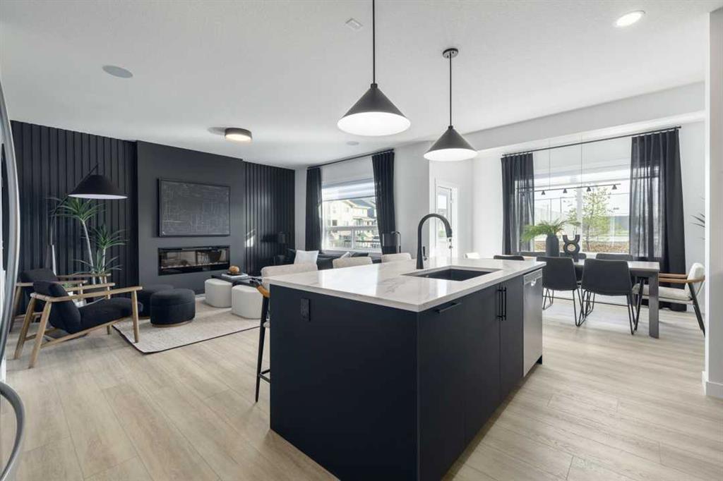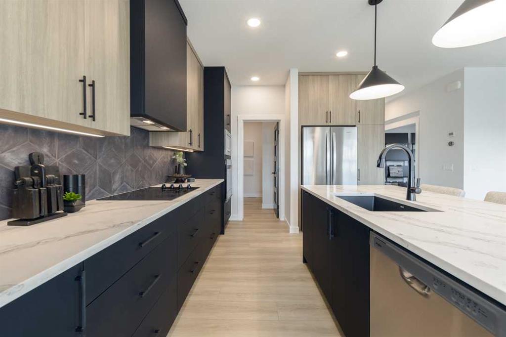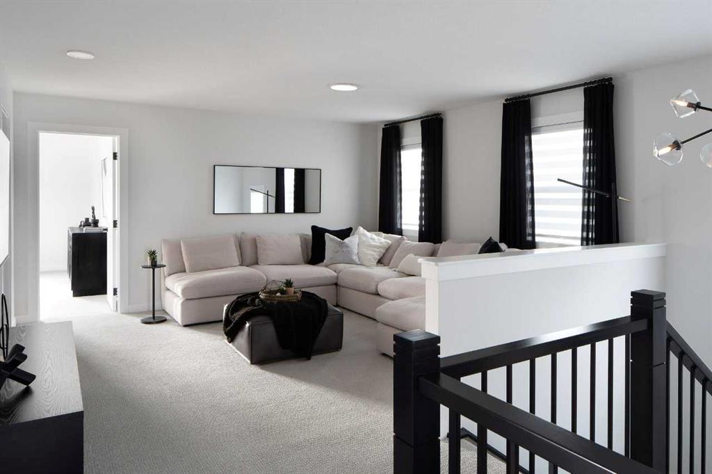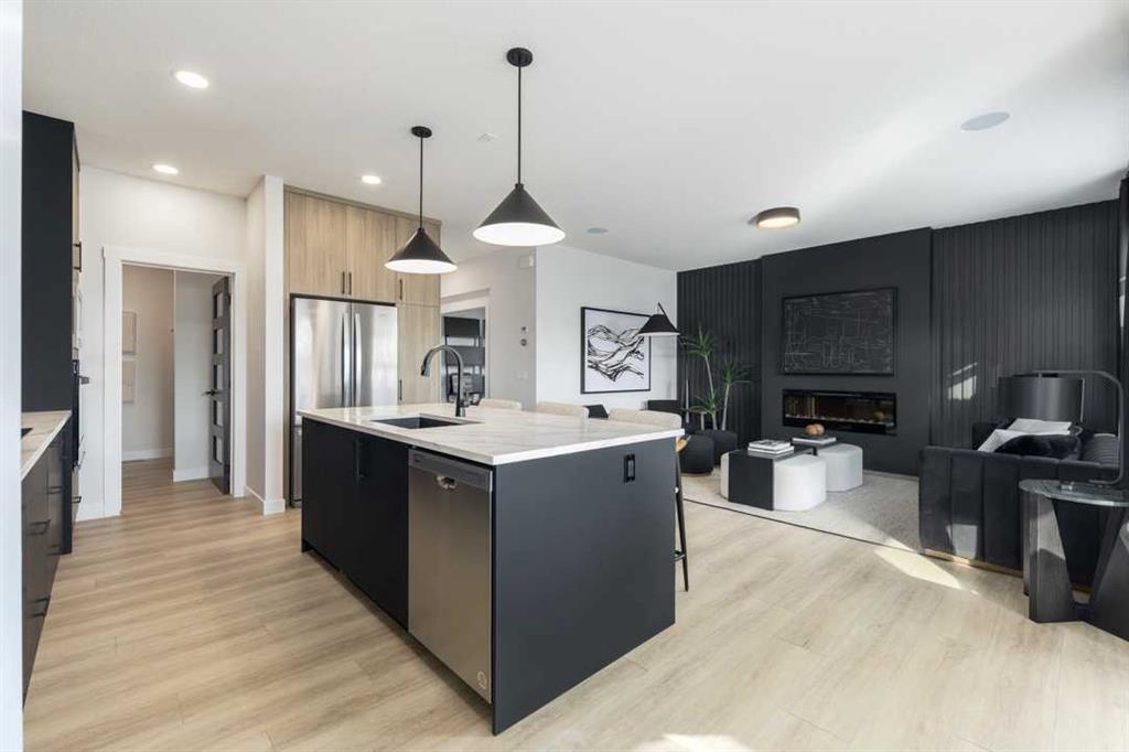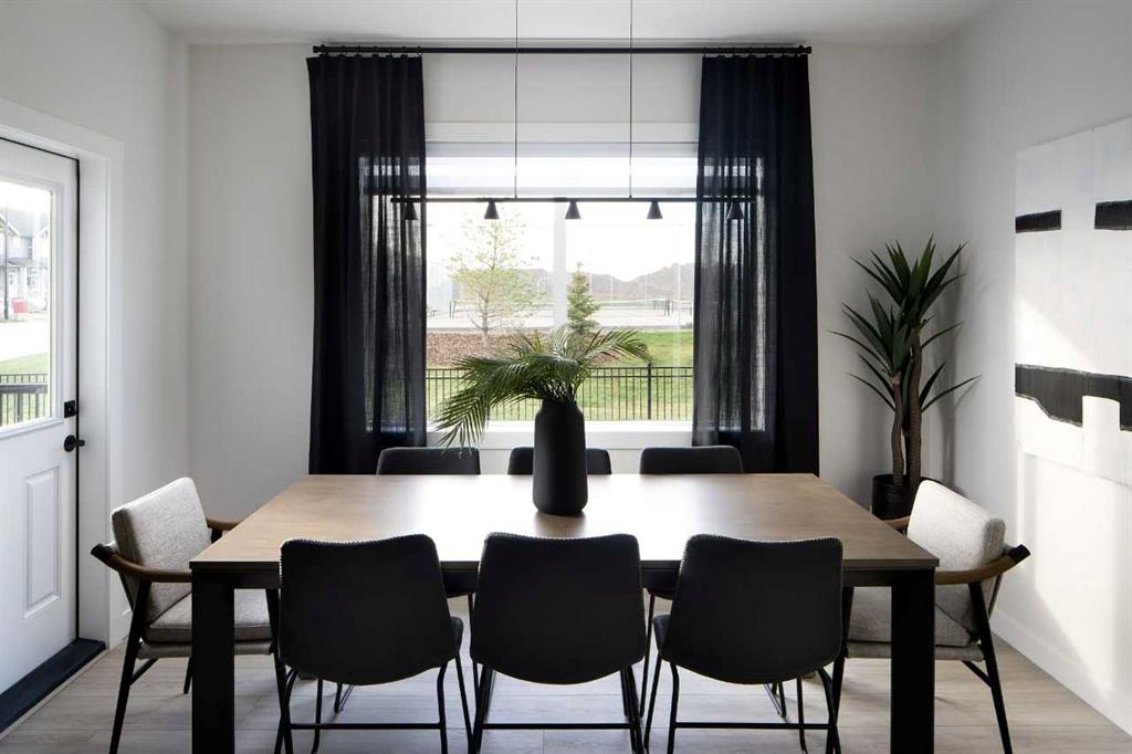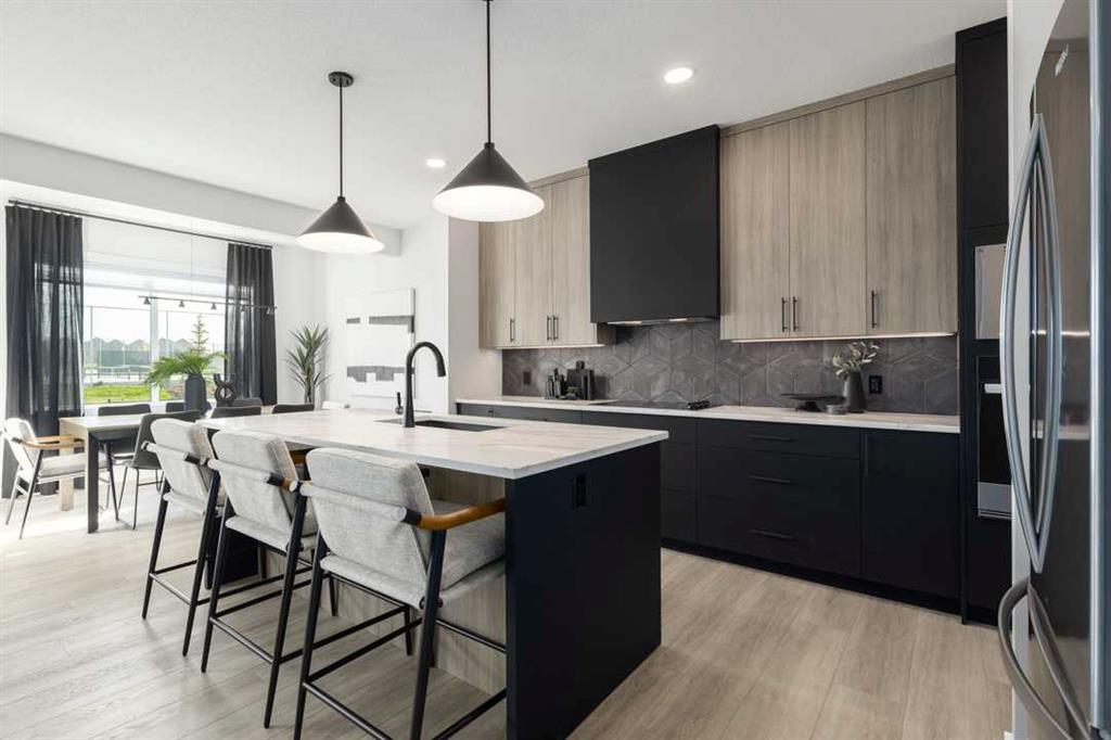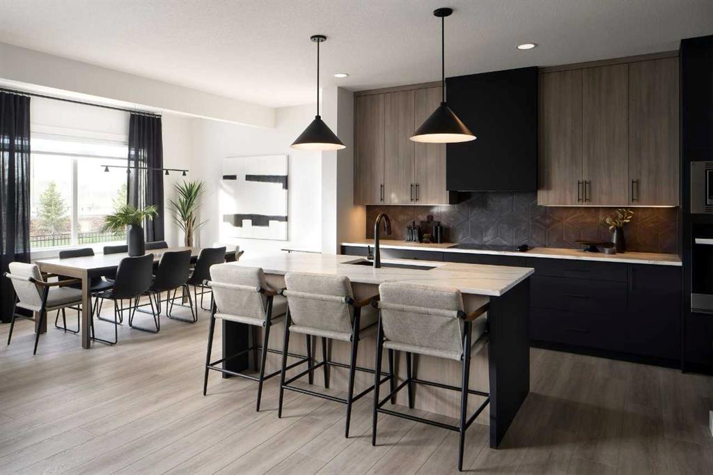Welcome to the Jaspur by Shane Homes in Cobblestone Creek, ideally located on a corner lot backing onto a park, offering added privacy and green space views. Possession available tentatively late June to early July. The main floor features a spacious foyer, front attached garage, den or office, and a full bathroom. Enjoy an open-concept layout with a central kitchen, large island, spice kitchen, dining nook with access to the included deck, and a living room with gas fireplace. Upstairs offers a central family room, 4 bedrooms, and a dedicated laundry room. The owner’s bedroom includes a walk-in closet and a 5-piece ensuite. The fully developed basement features a bedroom, full bathroom, wet bar, and separate side entrance. A well-designed showhome offering space, flexibility, and a prime park-backing location, perfect for families and entertaining.