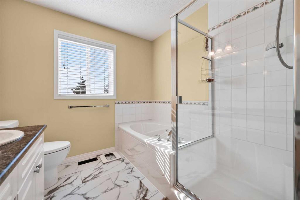 Additional features include a double-attached garage, double driveway, ample visitor parking, and recent updates such as newer shingles and fresh interior paint. The location offers unmatched convenience with nearby shopping, restaurants, a movie theatre, schools, walking paths, and quick access to Deerfoot Trail, Stoney Trail, Shaganappi Trail, and 14th Street, as well as Calgary International Airport.