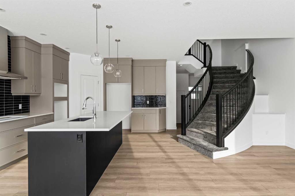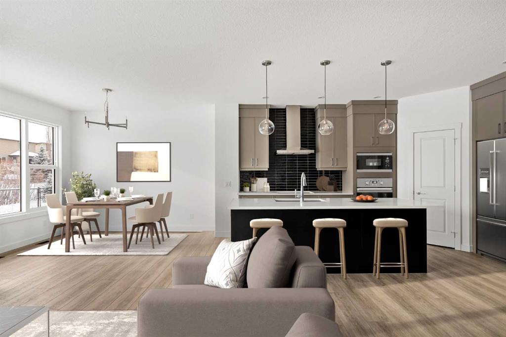 Welcome to The Robson 24 in Silver Spruce – a stunning brand-new home showcasing a timeless Heritage elevation, exceptional architectural details, and over 2,250 sq. ft. of beautifully designed living space above grade, plus an undeveloped basement ready for your future vision. Situated on a premium lot with a south-facing backyard that backs onto a pathway – offering additional privacy and optimal sunshine all year long. Inside, you’re immediately greeted by a large and bright foyer with views into the open concept main level living area that is accented by a dramatic curved central staircase – a striking architectural feature rarely found in homes of this size. Warm luxury vinyl plank flooring flows seamlessly throughout the main level and is the perfect choice for those with children and pets due to its incredible durability. The gourmet kitchen is both stylish and functional, featuring a chimney-style hood fan, built-in cooktop, built-in oven and microwave, rich micro-shaker cabinetry, a statement accent island, and a spacious corner pantry. Designed for both entertaining and everyday living, the kitchen opens effortlessly into the dining area and inviting great room. Expansive windows fill the home with natural light, enhanced by the sunny south-facing backyard that backs onto a pathway. The main living area is anchored by a cozy central fireplace, creating a warm and welcoming space for gatherings year-round. A versatile main-floor flex room offers the perfect spot for a home office, guest bedroom, or playroom, conveniently located next to a full bathroom with a tub/shower. Natural wood and iron spindle railings lead up the spiral staircase to a thoughtfully designed bonus room that provides privacy between the primary suite and secondary bedrooms – ideal for families. The spacious primary retreat impresses with a soaring vaulted ceiling, a large walk-in closet, and a luxurious 5-piece ensuite complete with dual sinks, a deep soaker tub, and a walk-in tiled shower. Two additional bedrooms, a full bathroom, and an upper-floor laundry room complete this level, offering both comfort and convenience. The lower level includes bathroom rough-ins and awaits your personal touch, making it easy to expand your living space in the future. A double attached garage keeps vehicles and valuables secure year-round, while the home itself is protected by a comprehensive 2-year builder warranty and the Alberta New Home Warranty for added peace of mind. Move in now and experience the perfect blend of thoughtful design, modern finishes, and everyday functionality in this stunning new home!Â