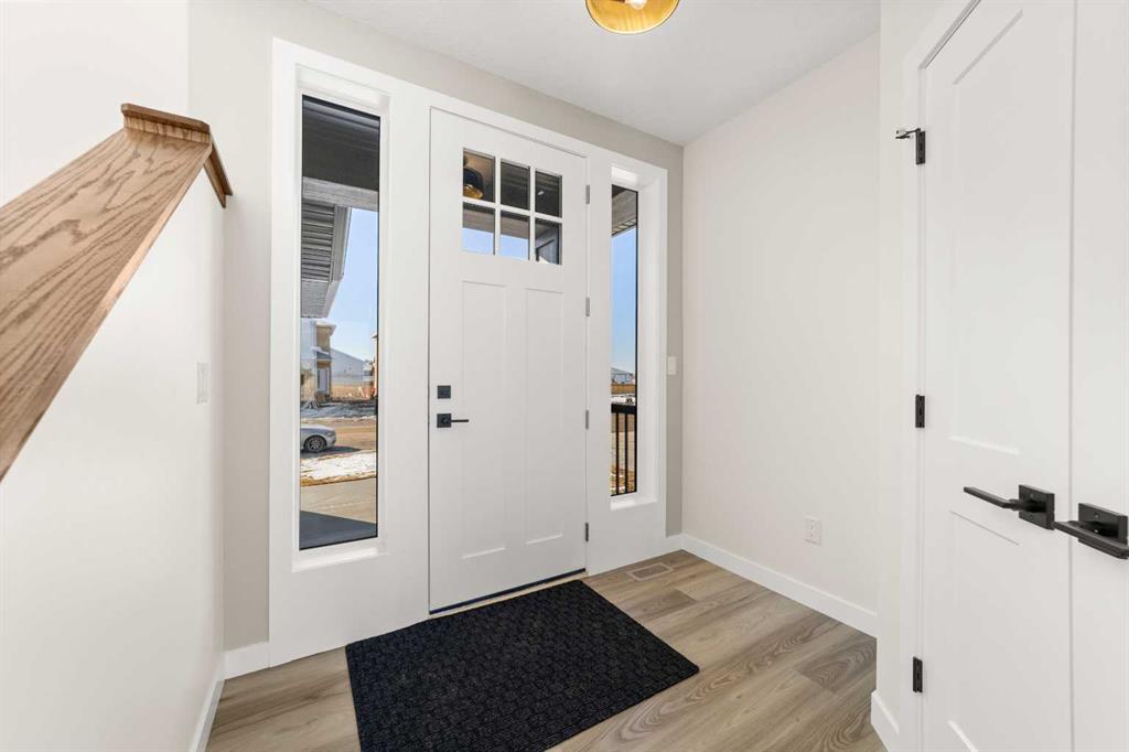 Welcome to this stunning new build, a thoughtfully designed two-storey home offering modern finishes and functional spaces. With three bedrooms, three bathrooms, and an unfinished basement ready for your personal touch, this home is perfect for families or those looking to customize their space. Step inside to find a bright and inviting kitchen featuring quartz countertops, a large pantry, and stainless-steel appliances—including a fridge, stove, microwave, and dishwasher. A convenient two-piece bathroom is located just off the living room, perfect for guests. The home is finished with luxury vinyl plank, ceramic tile, and plush carpet throughout for a stylish and comfortable feel. The mudroom/laundry room, located just off the garage entrance, adds functionality and storage, making everyday life easier. Upstairs, the primary suite boasts a spacious walk-in closet and a private three-piece ensuite. Two additional bedrooms, along with a four-piece bathroom, complete the upper level. The triple attached garage is a standout feature, offering plenty of space for vehicles and storage, with overhead heat for added comfort. The unfinished basement, with 9-foot ceilings and in-floor heat roughed in, is ready for your vision—whether it’s a recreation room, extra bedrooms, or a home gym. Outside, the front yard is landscaped with a tree, while the backyard is graded with black dirt and backs onto a proposed school site , offering a great future location for families.