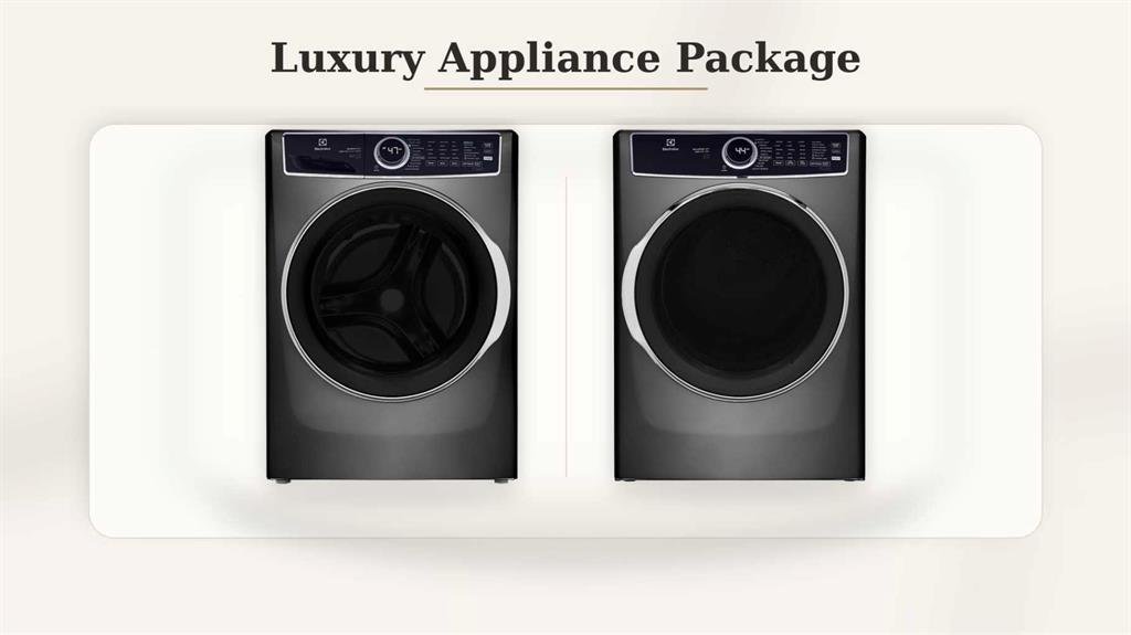 Upstairs, 9′ ceilings continue and the second floor is anchored by an impressive primary retreat that feels both private and refined, with a generous walk-in closet and a spa-inspired ensuite featuring dual vanities, a large walk-in shower, and a soaker tub. Two additional bedrooms, a full bathroom, and a dedicated laundry room with Electrolux washer and dryer plus full-height storage complete the level with the kind of functionality that supports daily life without compromising the overall design.
