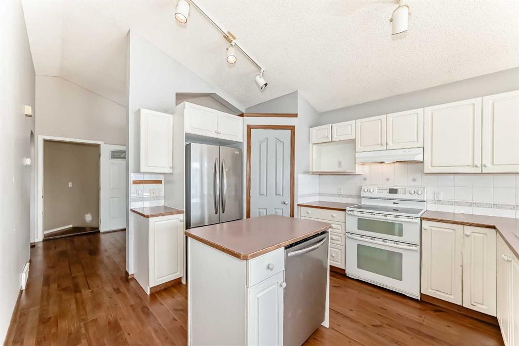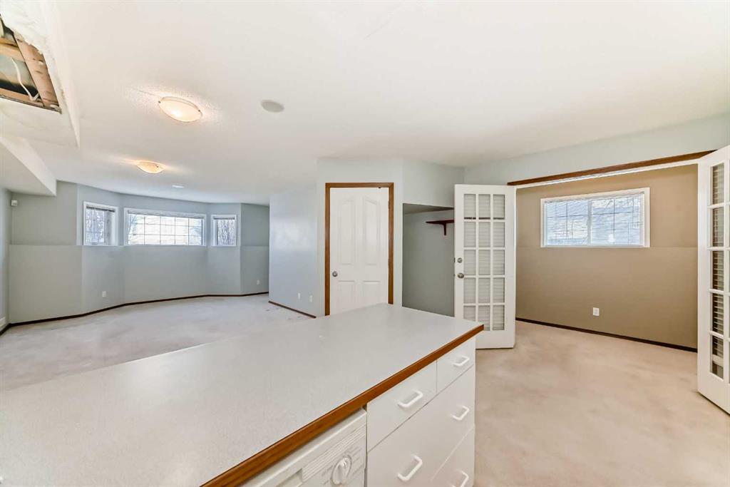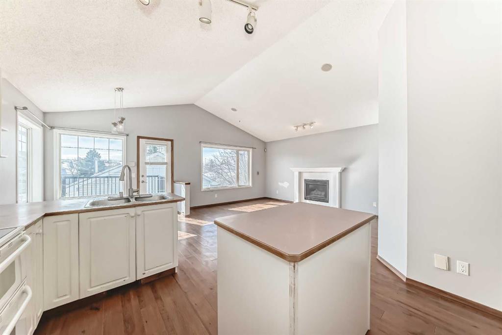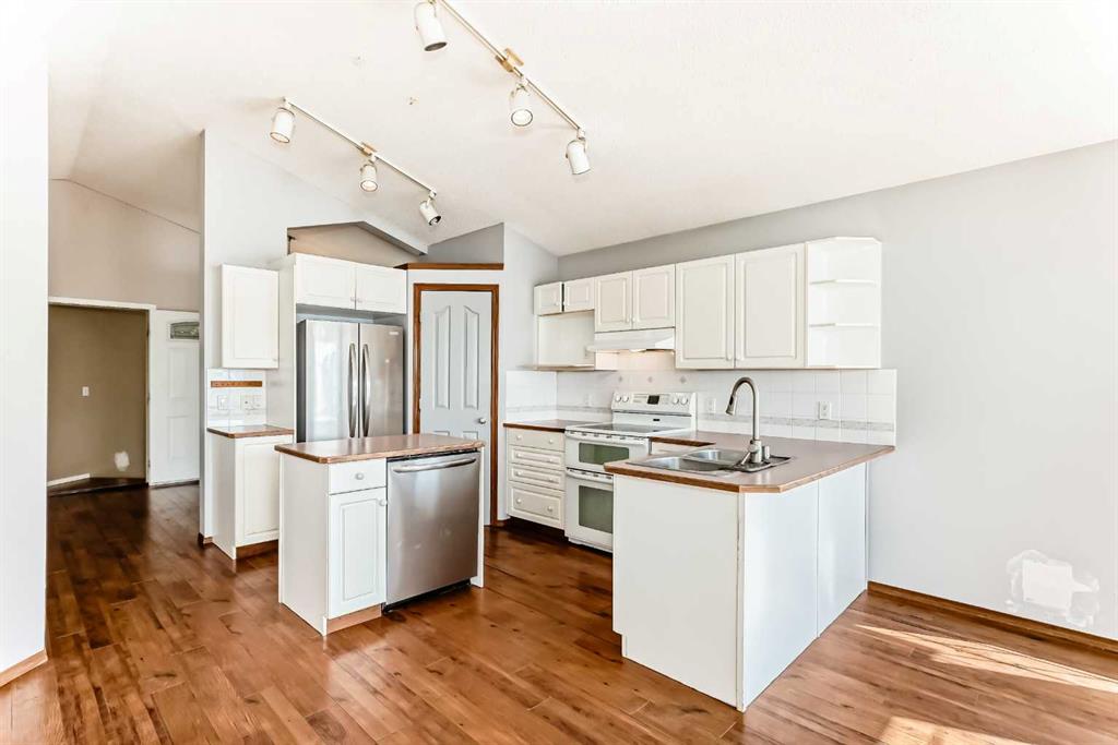 Welcome to this large Bi-Level with vaulted ceilings and SO MUCH POTENTIAL!! This property needs just a ‘little TLC’ to bring back its full potential! Walk in to a grand entrance and move up to the open floor plan with vaulted ceilings throughout and tons of natural light! This level includes a den/office/sitting area, spacious kitchen/dining/living room area (w/gas fireplace) a large primary bedroom with huge windows, a second bedroom and 4 pc bath. Going down the stairs is a laundry/mechanical room which is ‘common property’ for up and down living, and a secure door into the lower living space where you will find a second kitchen/dining area, 2 more bedrooms and a 4 pc bath. This is an illegal suite. Other notable features include a large deck off the main level, a double detached garage, back & side yard which includes a paving-stone patio area … all on an over-sized corner lot! This home does need new carpets, fresh paint and a few other touch ups to reach it’s potential & has been priced accordingly. Once renewed; it will be an amazing property for it’s new owner! Book your private viewing today.