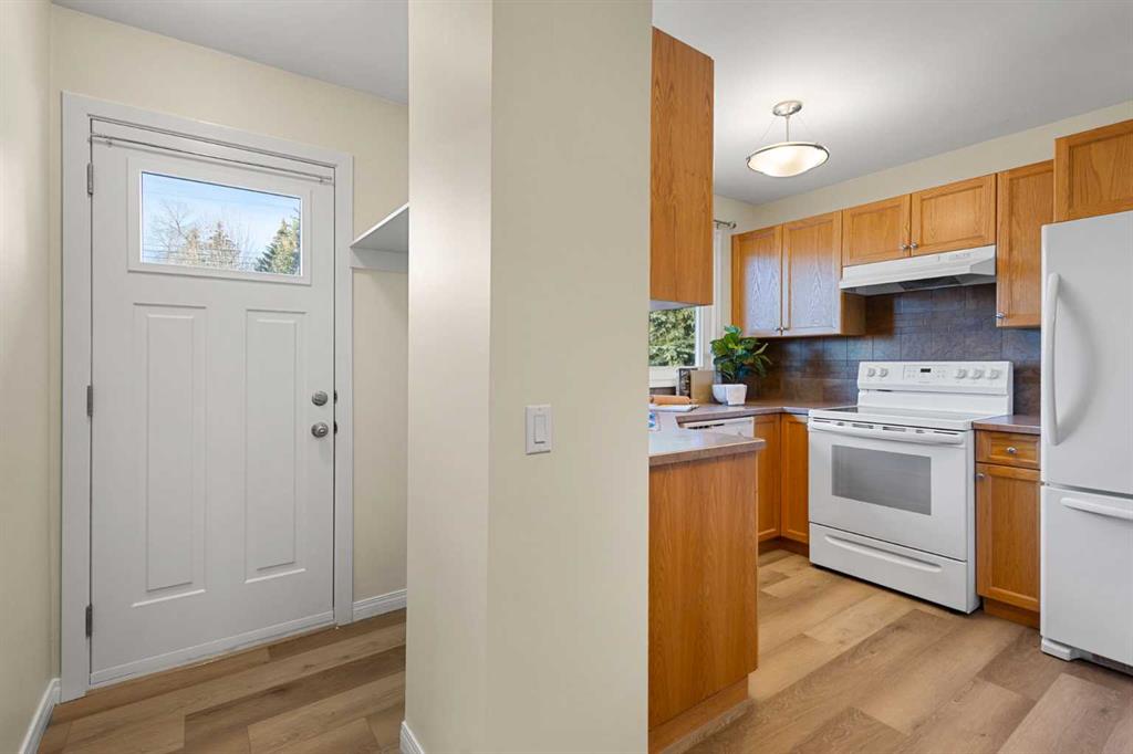 The main floor welcomes you into a cozy yet spacious living room that flows seamlessly into the dining area, featuring a bay window and a perfect nook for a cabinet/hutch. The functional kitchen offers added cabinetry and extra counter space, a pantry with a built-in spice rack, a corner sink, and a lovely window overlooking the deck and backyard. A rear foyer off the kitchen provides convenient access to the yard, with coat hooks and space for shoe storage. A separate hallway coat closet keeps the front entry neat and clutter-free for guests.