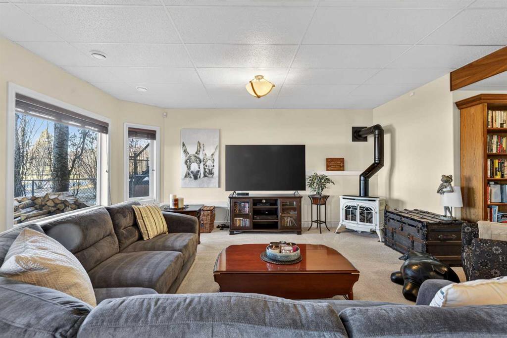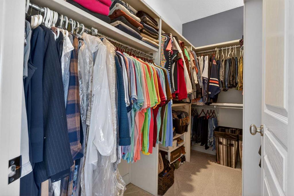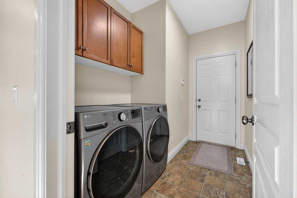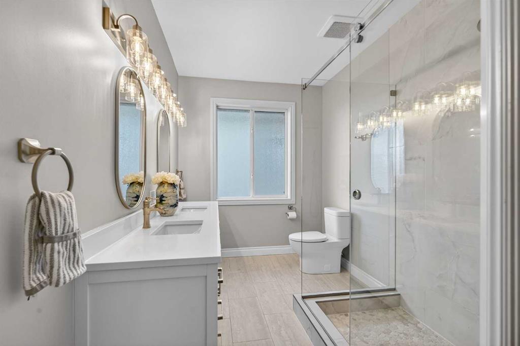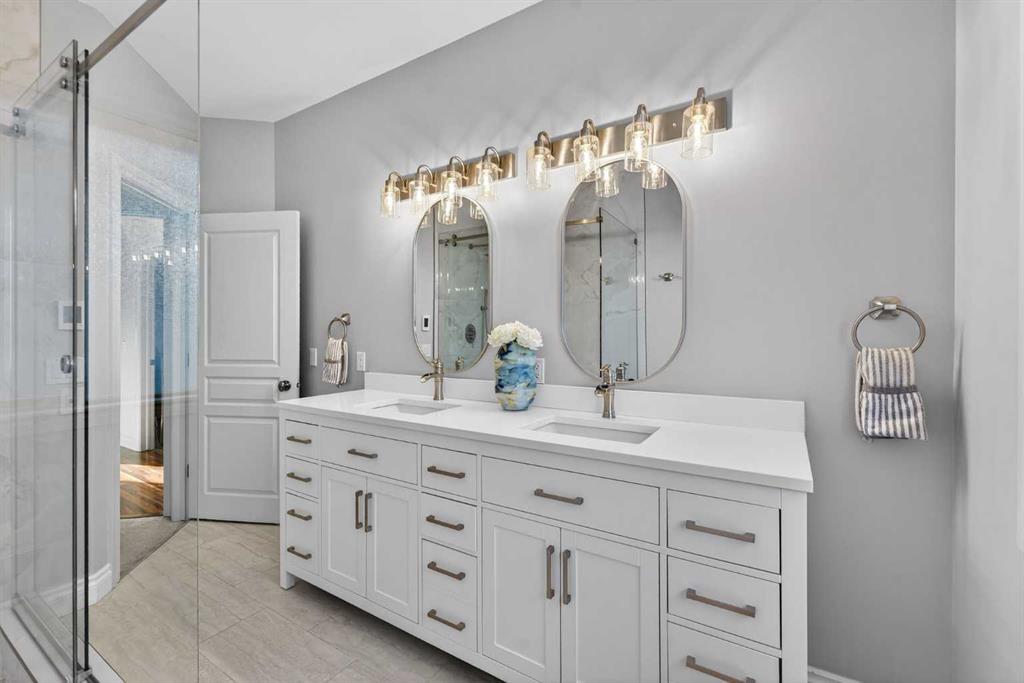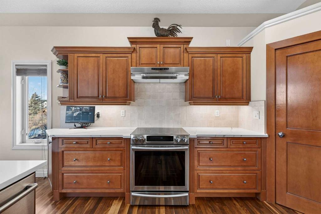 Open House – Sunday, Jan 25th from 12 – 2 pm & Sunday February 1st from 1-3 PM. Incredible opportunity to own this gorgeous walkout home with a triple car garage backing west onto Woodside Golf Course. The inside of this home is just as beautiful as the exterior with massive windows, vaulted ceilings and rich walnut hardwood floors that highlights the exceptional space. The kitchen has been recently updated with a modern backsplash, stone counters and a central island. Be prepared to host family and friends as this open concept design creates a natural space for entertaining. Off the dining space, a door leads to a full-width deck with two natural gas outlets for a BBQ and a heater. Back inside, the spacious living room overlooks the golf course and includes a cozy gas fireplace. The primary suite is a stunning oasis with gorgeous views, plenty of space, a walk-in closet and an elegant fully updated ensuite with dual sinks and a tiled shower. A second bedroom on this level and a 4 piece bath add versatility. The walkout basement is fully finished with a large rec area for movie nights with room for a home gym too. Two additional bedrooms and a 3 piece bath complete this level. Parking will never be an issue with a triple wide driveway and a three bay HEATED garage (29’11” x 24’7″) with a mezzanine and built in storage. The yard has been professionally landscaped with underground sprinklers. Watch the golfers and enjoy the sunsets from your walkout deck or from your hot tub on the patio. This home has undergone many updates including central air conditioning, two new furnaces (2023), hot water tank (2024), new washer and dryer (2025), garage doors (2023), re-modelled kitchen and bathroom (2023), solar shield on most east and west windows, water softener, built in shelving throughout and roof maintenance with 5 year warranty. This is a central Airdrie location, close to the golf course, shopping and schools.
