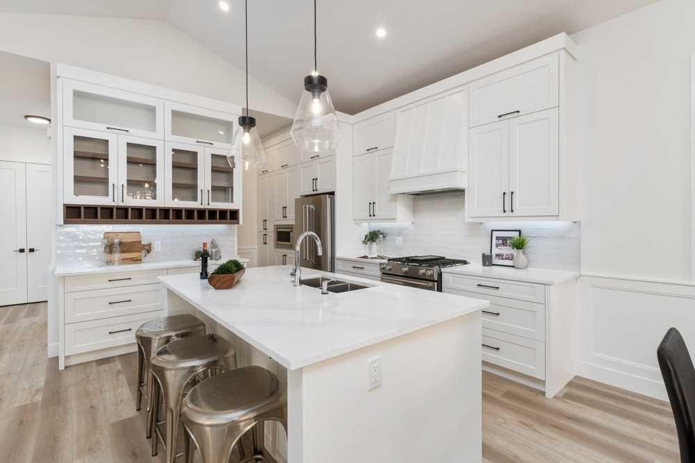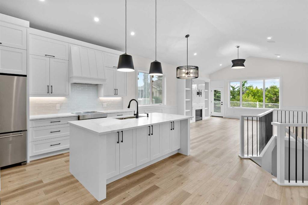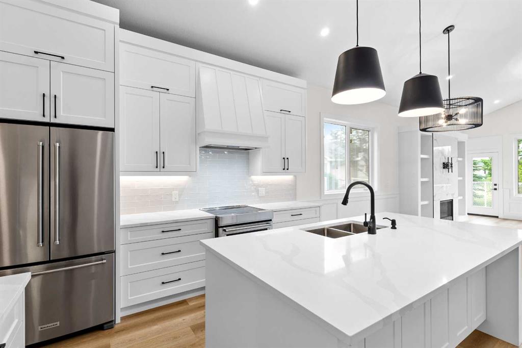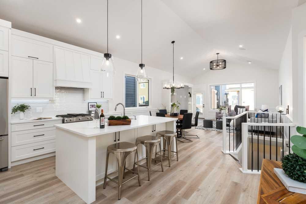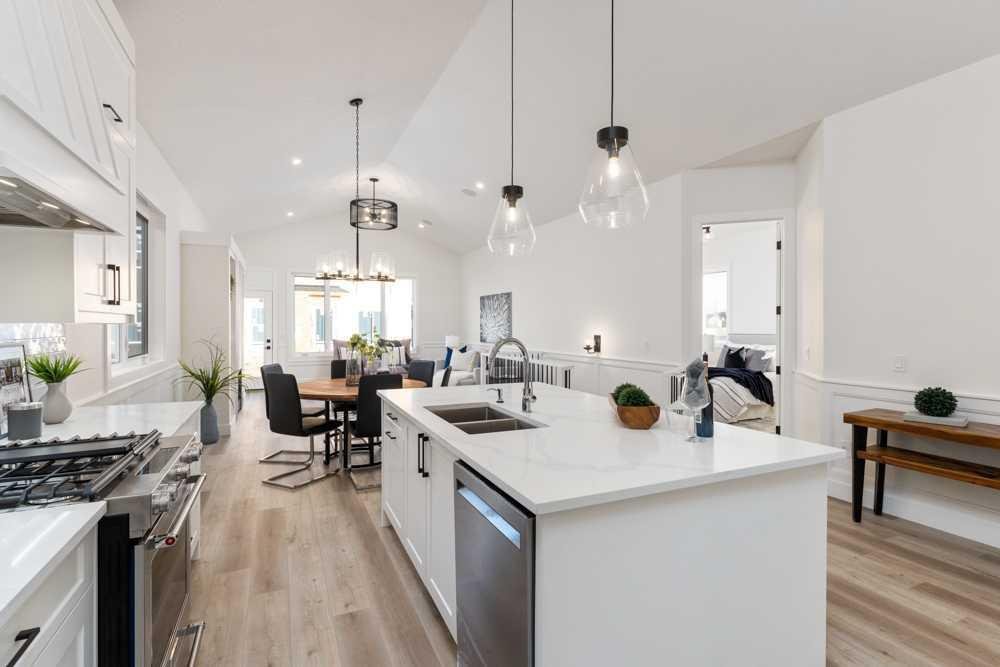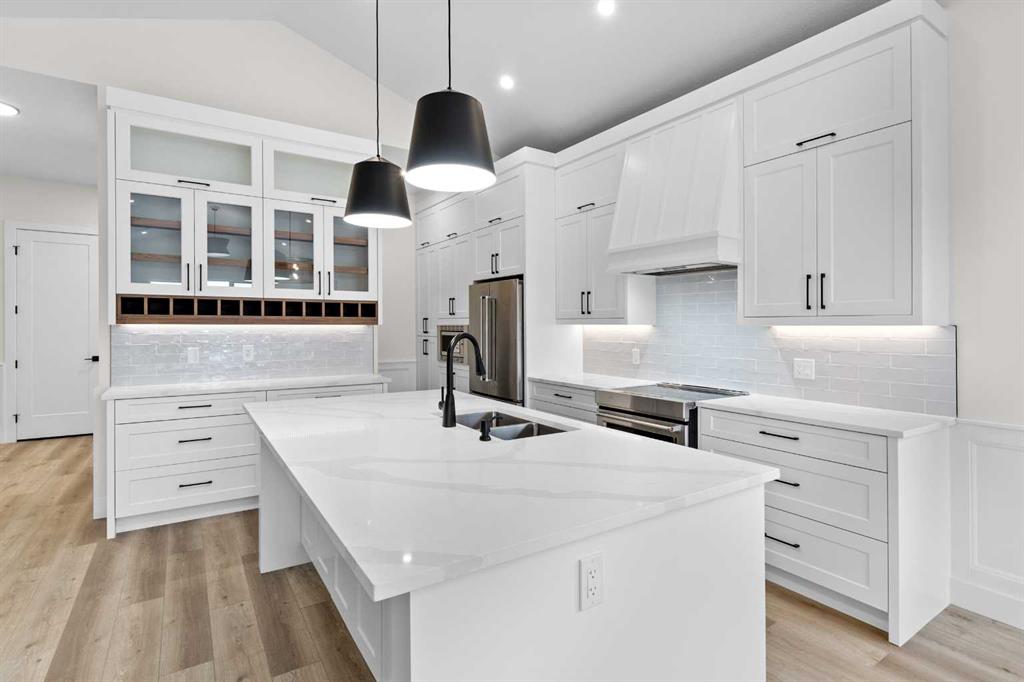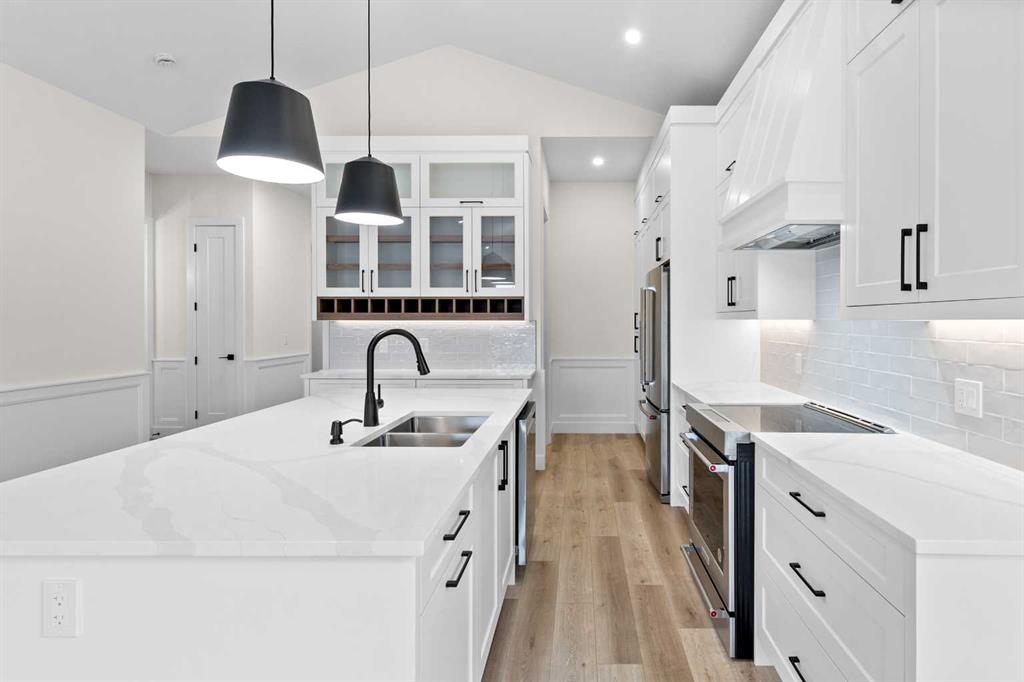 Welcome to your new home! With an estimated completion date of early 2026, this stunning, brand-new, WALK-OUT BUNGALOW by Marygold Homes comes complete with a TRIPLE CAR GARAGE as well as a FULLY FINISHED BASEMENT, back onto the pond and features over 2980 SQFT of total living space. Thoughtfully designed, this brand-new detached home in Mandalay Estates is located just minutes from downtown Carstairs, the Community Golf Course, Memorial Arena, Hugh Sutherland School, and within walking distance to a Loblaws grocery store which is right in the subdivision. The property’s durable hardie-board siding exterior adds both functionality and curb appeal. Inside, the main floor space features 10-ft ceilings, vaulted ceilings in the kitchen and living room, 8-ft interior doors, 2 bedrooms, 2 full bathrooms, and CHROME PLUMBING FIXTURES. The home offers convenient garage access through a mudroom/laundry room equipped with built-in storage and a UTILITY SINK. The chef-inspired kitchen includes a large central island with dual-side storage, bar-style seating, STAINLESS STEEL KITCHEN APPLIANCES, soft-close shaker cabinetry and pull-out drawers, quartz countertops, a custom hood fan canopy, and a walk-in pantry. A stylish bar with glass cabinetry adds both character and function, and completes the kitchen layout. The kitchen flows into the dining area and then living room, where an entertainment unit with a tile-surround gas fireplace creates a warm and inviting space. A large transom window adds architectural charm and fills the room with natural light. From here, step out onto the deck which is finished with Duradek Lino and also comes equipped with a gas line, perfect for relaxing, entertaining, or barbeque get-togethers. The primary suite features sizable windows, a 4-piece ensuite which comes complete with a dual-sink vanity, separate water-closet, shower with built-in bench, and a walk-in closet with custom shelving. A second bedroom, 4-pc bathroom, and linen closet complete the main level. The fully finished walk-out basement adds on an ample amount of living space, with expansive windows, 9-ft ceilings, 7-ft passage doors, 2 additional bedrooms, a full 4-pc bathroom, a WET BAR, as well as a large recreation area—ideal for guests, extended family, or a home gym. Don’t miss the opportunity to make this home your very own! **GST Rebate, if any, shall go to the seller. PLEASE NOTE: Property is Under-Construction (Estimated Completion: January 2026). Photos used of are of the same/similar layouts or previous projects and are for reference and illustrative purposes only. The Exterior Rendering is for illustrative purchasers only. Purchasers can choose interior selections at this time (Contact Listing Agent for more info).**