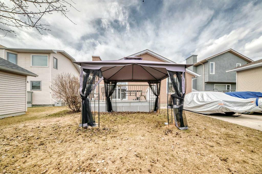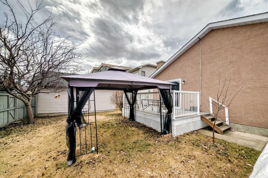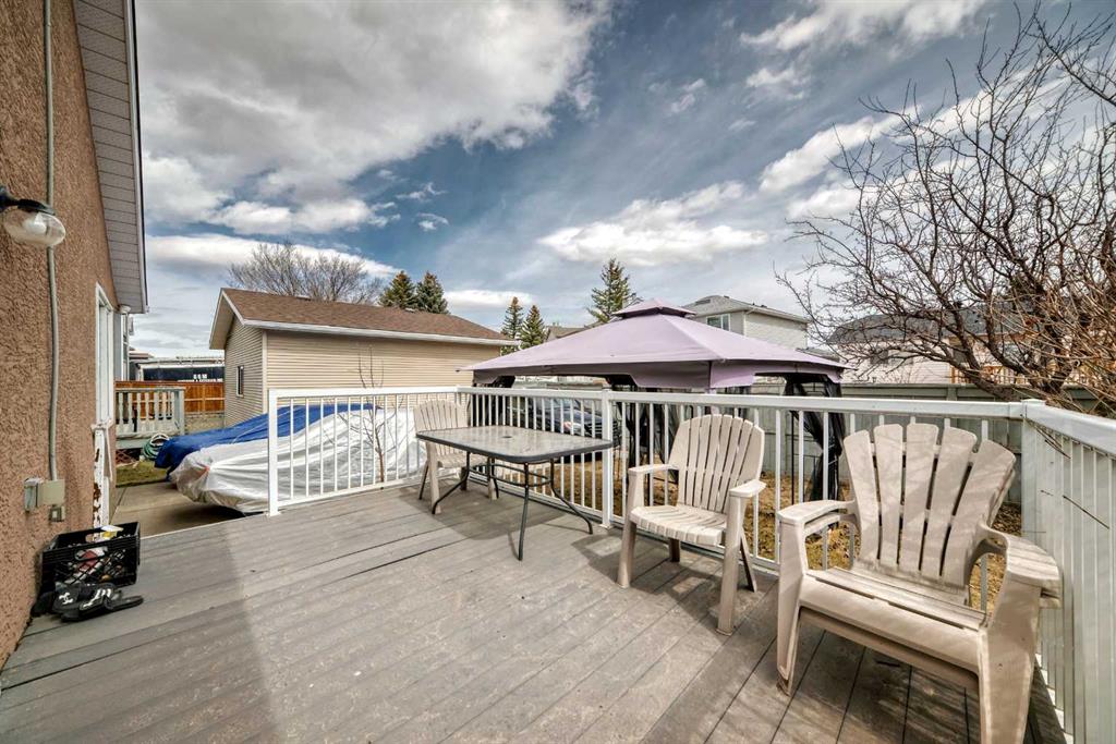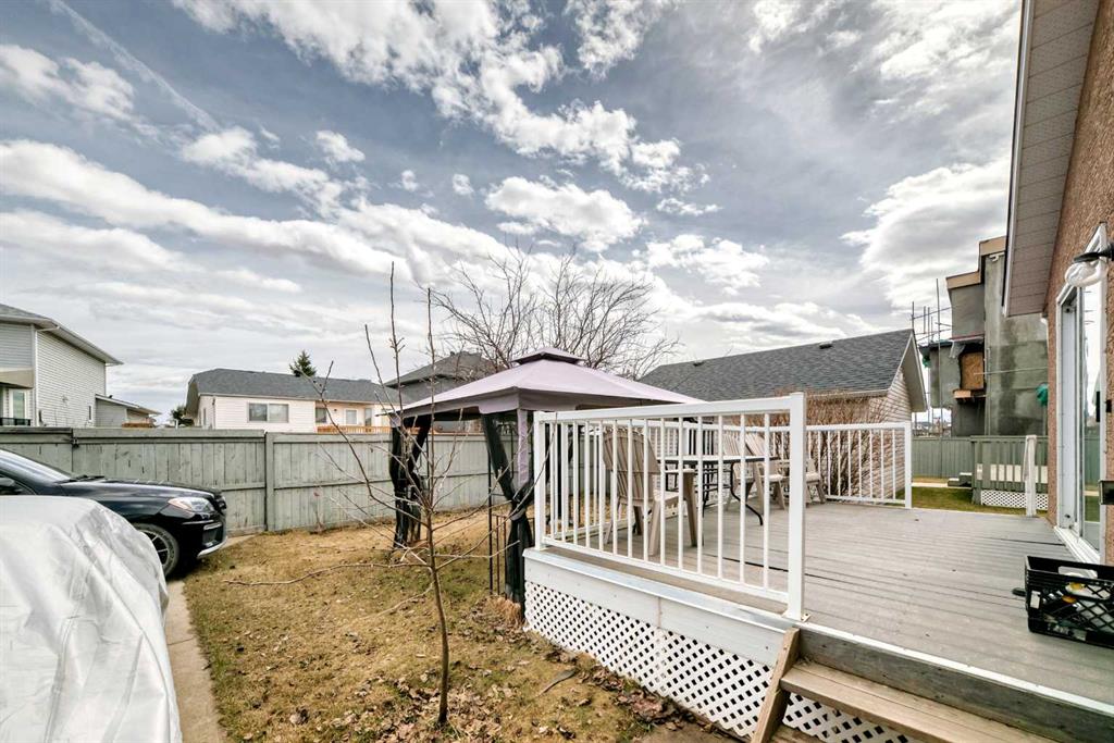 Fully renovated , This former show home is meticulously cared for and shows pride of ownership! Easy to please palette with neutral paint and flooring colors. The front facing formal dining room (or flex area) has decorative ceiling cornice and a sunny bay window. Fresh white cabinetry, peninsula island, glass door inserts, fridge, stove, dishwasher and stainless fridge in the kitchen. The main floor plan is perfect for easy flow between the kitchen, spacious eating nook and living room. Windows and vaulted ceilings add to the openness of the space. There is a cozy gas fireplace to add warmth on the cooler days. Patio access to the west facing back deck (14×9) which is covered in durable and easy care newer trek decking. Upper cabinets provide extra storage in the main floor laundry. The Master bedroom has decorative wood detail and vaulted ceilings as well as a walk in closet and jetted tub and shower en suite. The lower level has two more bedrooms and a very large open rec are as well as a 3 piece bath. There is RV parking in the rear with convenient power and water hook ups .