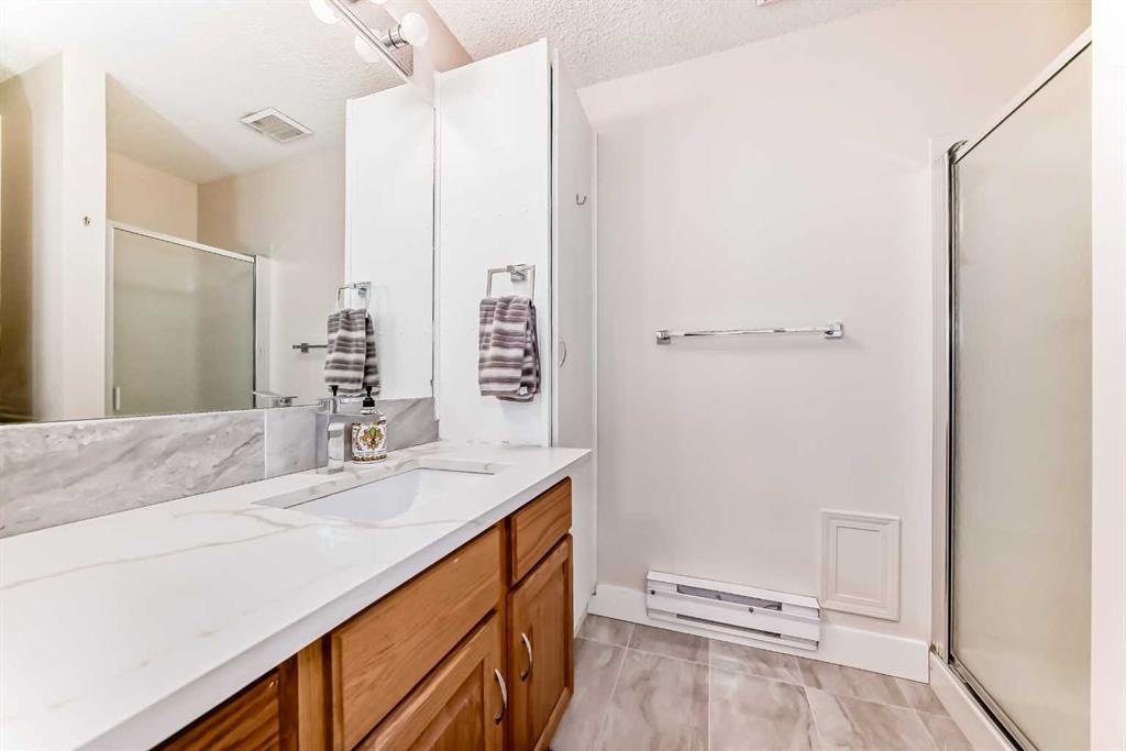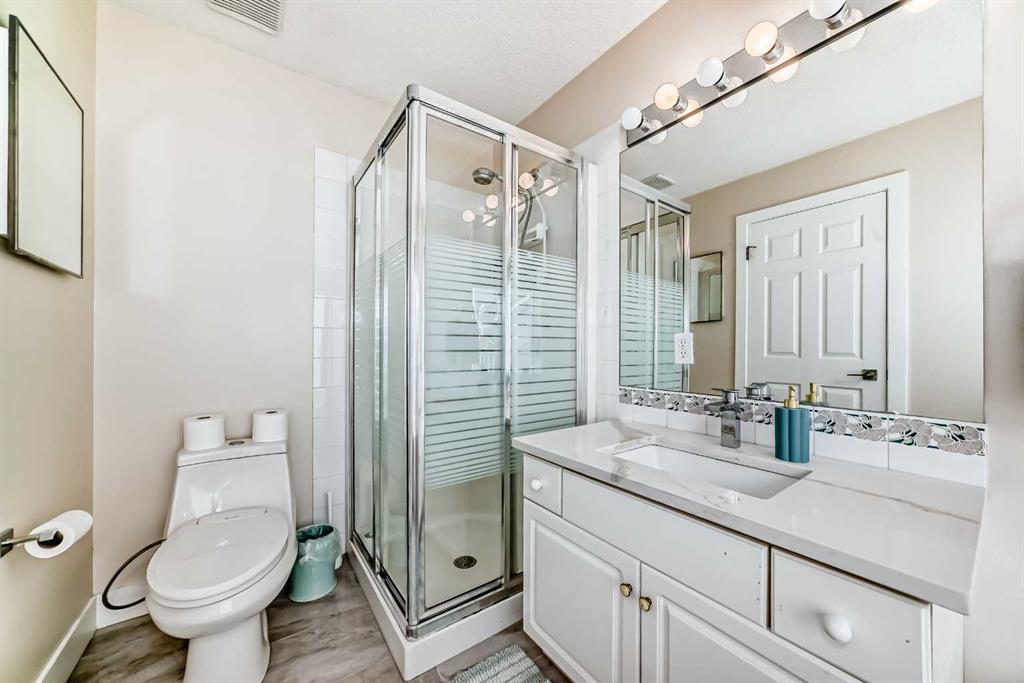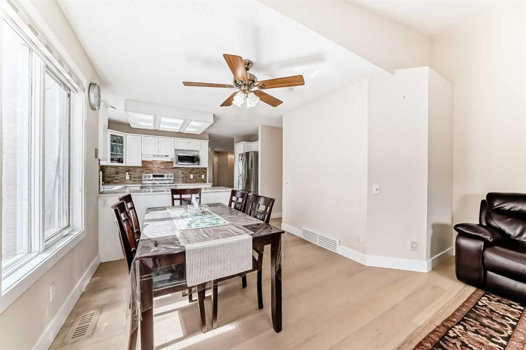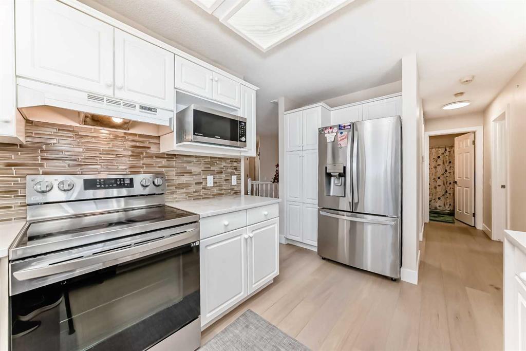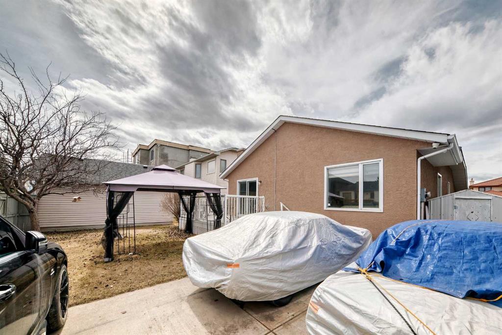 Fully renovated , This former show home is meticulously cared for and shows pride of ownership! Easy to please palette with neutral paint and flooring colors. The front facing formal dining room (or flex area) has decorative ceiling cornice and a sunny bay window. Fresh white cabinetry, peninsula island, glass door inserts, fridge, stove, dishwasher and stainless fridge in the kitchen. The main floor plan is perfect for easy flow between the kitchen, spacious eating nook and living room. Windows and vaulted ceilings add to the openness of the space. There is a cozy gas fireplace to add warmth on the cooler days. Patio access to the west facing back deck (14×9) which is covered in durable and easy care newer trek decking. Upper cabinets provide extra storage in the main floor laundry. The Master bedroom has decorative wood detail and vaulted ceilings as well as a walk in closet and jetted tub and shower en suite. The lower level has two more bedrooms and a very large open rec are as well as a 3 piece bath. There is RV parking in the rear with convenient power and water hook ups .