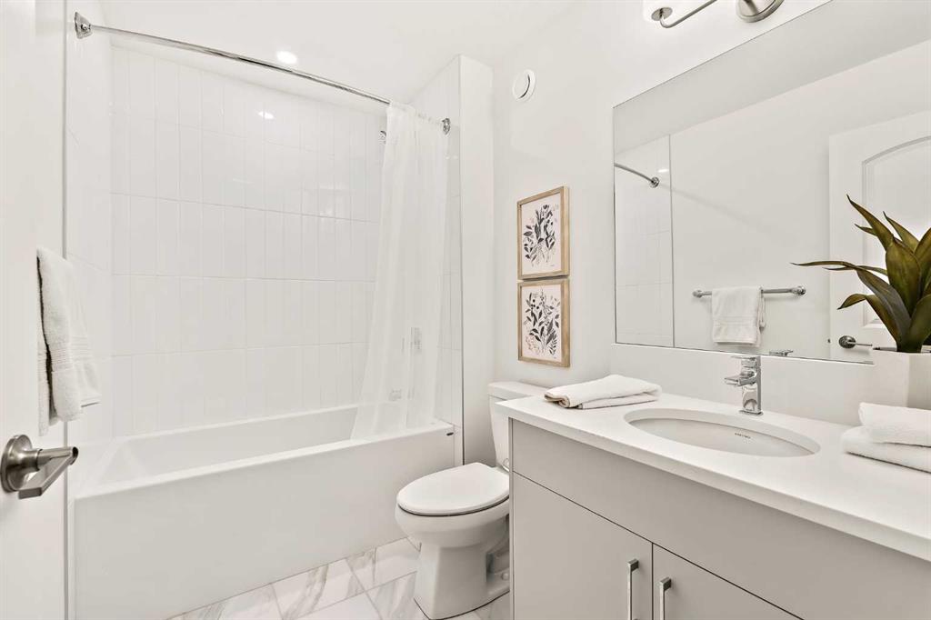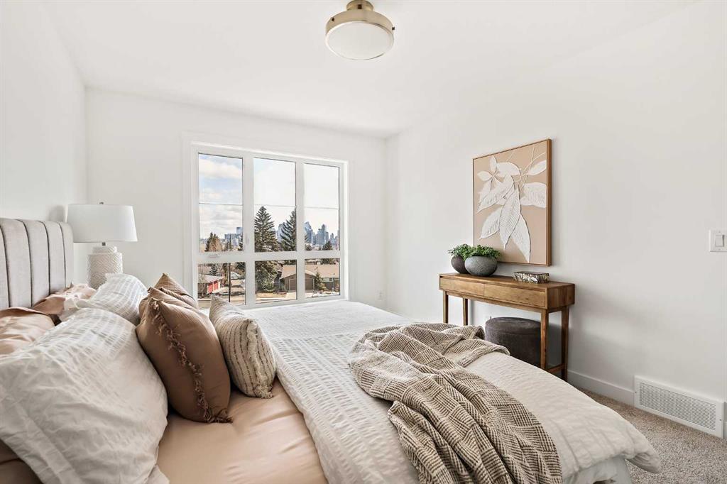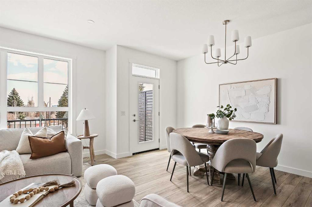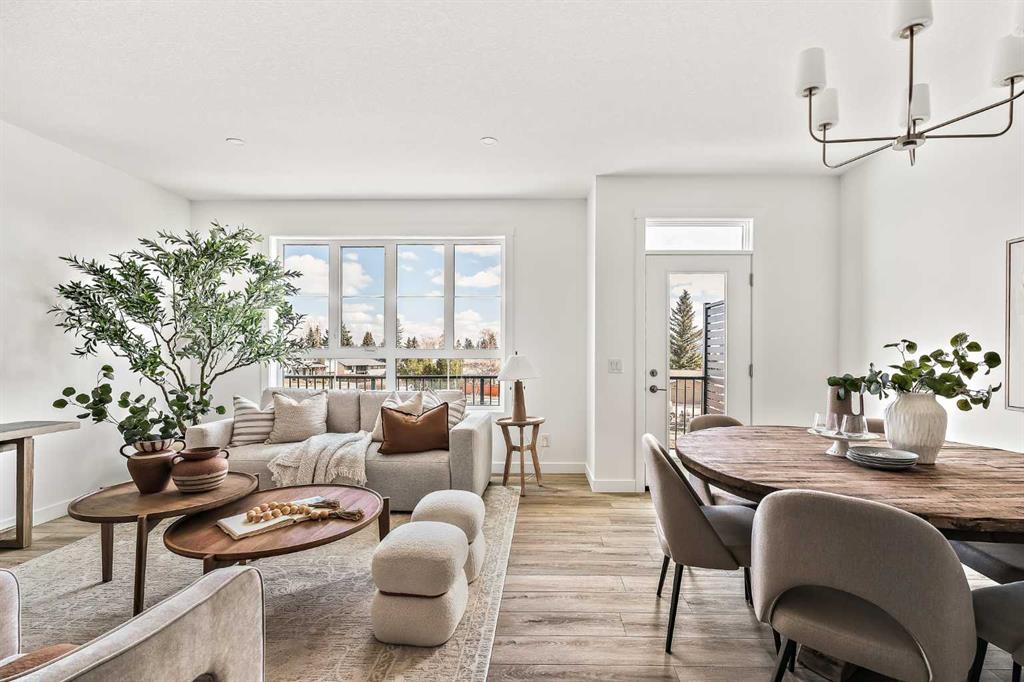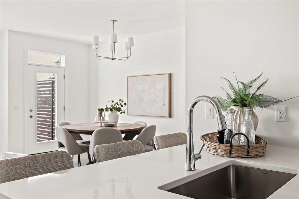 Welcome to one of the final opportunities to own a brand-new townhome at Crown Park, Calgary’s premier inner-city community. Offering over 1,300 sq ft of thoughtfully designed living space, this 3-storey home features 2 bedrooms, 2.5 bathrooms, and a private single attached garage. The open-concept main level is designed for modern living, with the central living area seamlessly connecting the kitchen and dining space, creating an ideal setting for both everyday living and entertaining. Soaring 9-foot ceilings enhance the sense of space, while large windows fill the home with natural light throughout the day. The kitchen is both stylish and functional, showcasing full-height cabinetry, quartz countertops, and a premium stainless-steel appliance package that includes an electric cooktop, chimney-style hood fan, and built-in wall oven and microwave. The efficient layout maximizes usable space and opens onto a spacious private balcony, nearly 19 feet wide, perfect for outdoor lounging or hosting. Upstairs, the primary suite offers a walk-through closet and a private en suite complete with a sleek walk-in shower. A second well-sized bedroom, an additional full bathroom, and upper-level laundry provide convenience and flexibility for a variety of lifestyles. The generous balcony, measuring approximately 19’ x 7’, is equipped with a BBQ gas line and A/C rough-in, extending your living space outdoors. The oversized single attached garage completes the home, offering secure parking and additional storage. Ideally located, Crown Park is highly sought-after for its proximity to Shaganappi Golf Course, easy access to downtown, and excellent connectivity to transit. Residents will enjoy nearby walking paths, parks, and a variety of local dining and entertainment options. This home also includes an extended 3-year workmanship warranty, full Alberta New Home Warranty coverage, and complimentary legal fees, providing added confidence in your purchase. Perfectly suited for professionals or those seeking low-maintenance inner-city living, this home will be ready for possession this spring. Please note: Photos are from a similar unit and may not reflect exact finishes. Refer to the final image for specific interior selections.