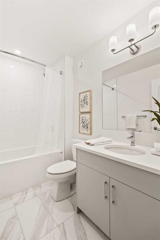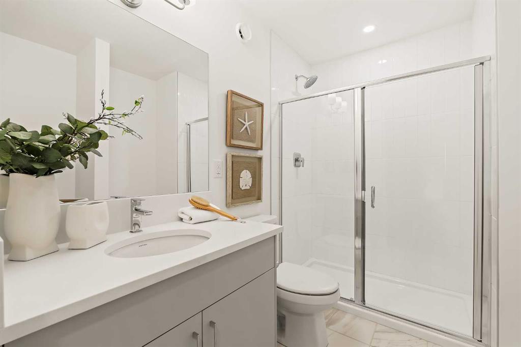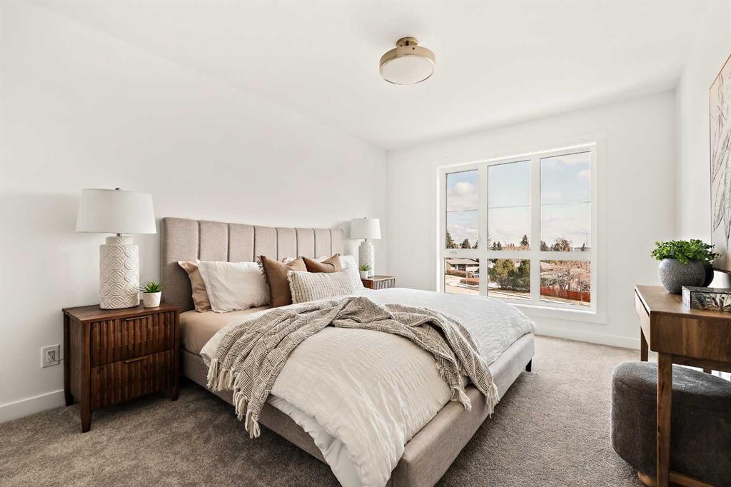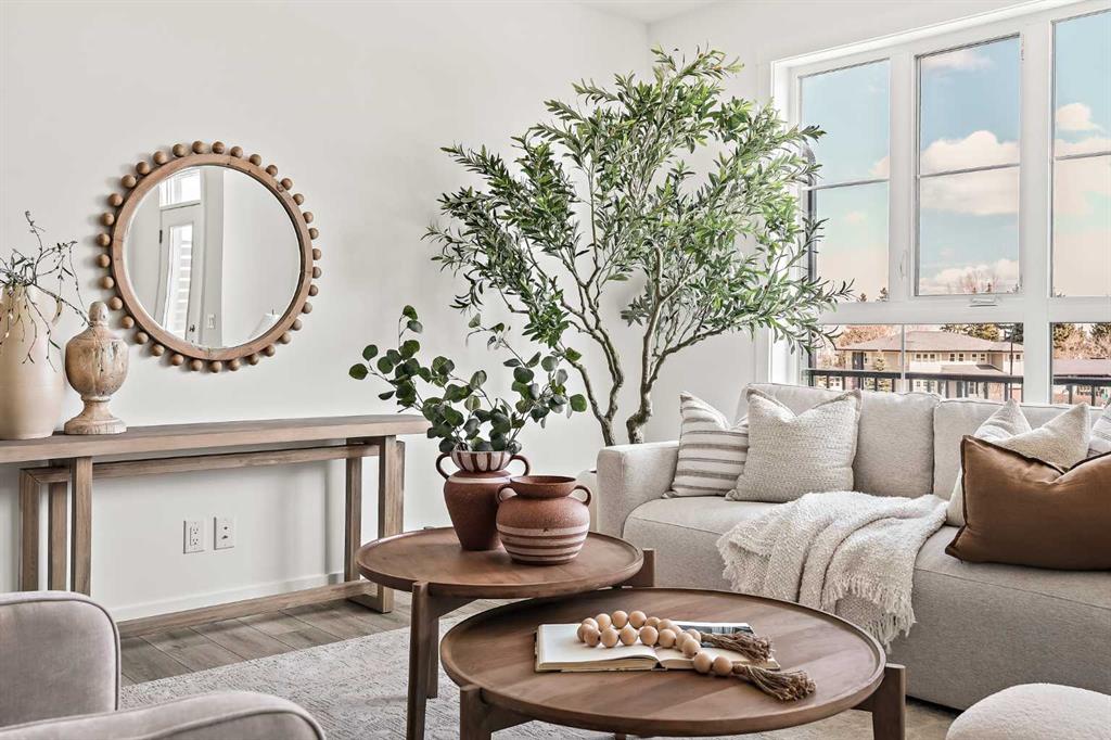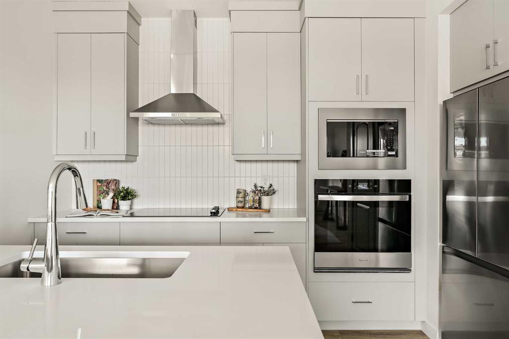 Welcome to one of the final opportunities to own a brand-new townhome at Crown Park, Calgary’s premier inner-city community. Offering over 1,300 sq ft of thoughtfully designed living space, this 3-storey home features 2 bedrooms, 2.5 bathrooms, and a private single attached garage. The open-concept main level is designed for modern living, with the central living area seamlessly connecting the kitchen and dining space, creating an ideal setting for both everyday living and entertaining. Soaring 9-foot ceilings enhance the sense of space, while large windows fill the home with natural light throughout the day. The kitchen is both stylish and functional, showcasing full-height cabinetry, quartz countertops, and a premium stainless-steel appliance package that includes an electric cooktop, chimney-style hood fan, and built-in wall oven and microwave. The efficient layout maximizes usable space and opens onto a spacious private balcony, nearly 19 feet wide, perfect for outdoor lounging or hosting. Upstairs, the primary suite offers a walk-through closet and a private en suite complete with a sleek walk-in shower. A second well-sized bedroom, an additional full bathroom, and upper-level laundry provide convenience and flexibility for a variety of lifestyles. The generous balcony, measuring approximately 19’ x 7’, is equipped with a BBQ gas line and A/C rough-in, extending your living space outdoors. The oversized single attached garage completes the home, offering secure parking and additional storage. Ideally located, Crown Park is highly sought-after for its proximity to Shaganappi Golf Course, easy access to downtown, and excellent connectivity to transit. Residents will enjoy nearby walking paths, parks, and a variety of local dining and entertainment options. This home also includes an extended 3-year workmanship warranty, full Alberta New Home Warranty coverage, and complimentary legal fees, providing added confidence in your purchase. Perfectly suited for professionals or those seeking low-maintenance inner-city living, this home will be ready for possession this spring. Please note: Photos are from a similar unit and may not reflect exact finishes. Refer to the final image for specific interior selections.
