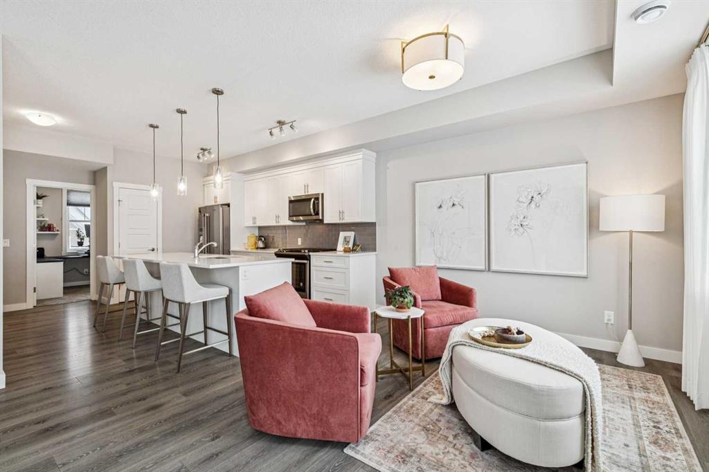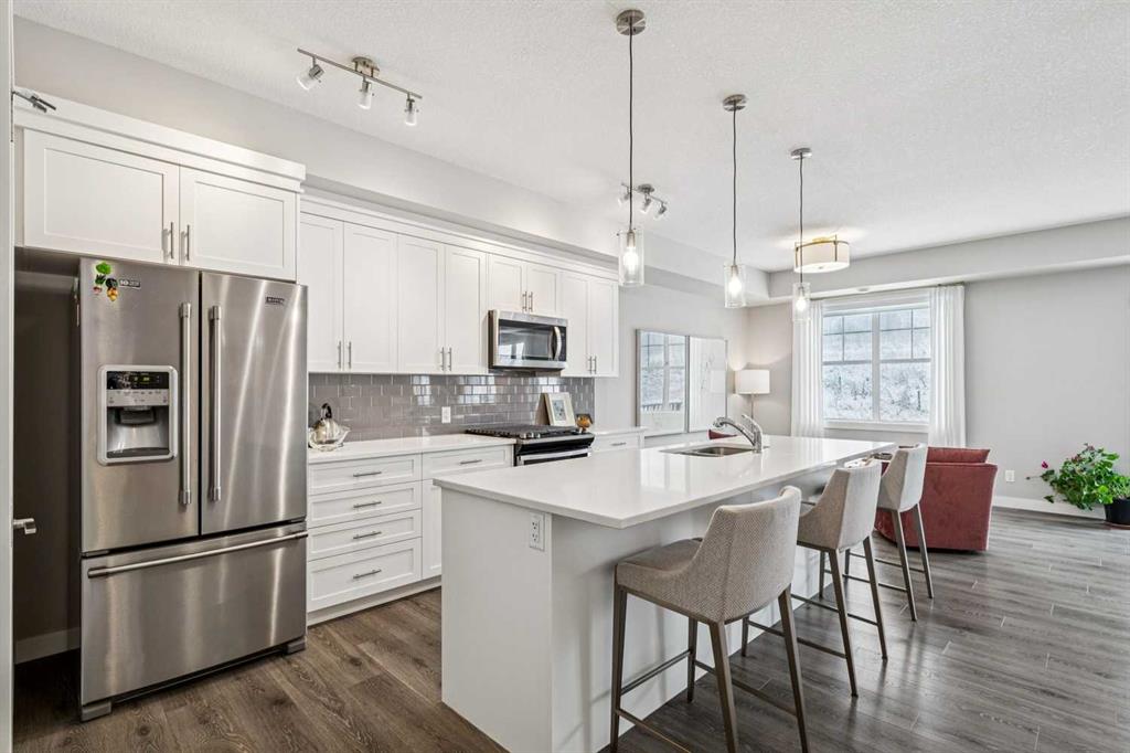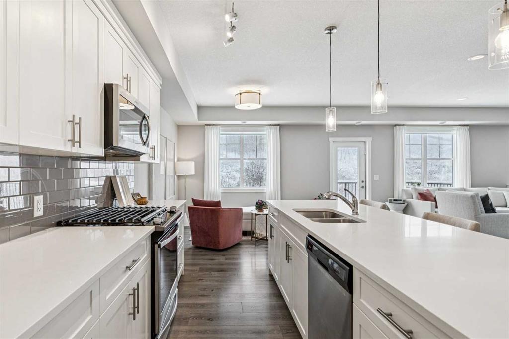 | BACKING ONTO NATURAL ESCARPMENT | TOP-FLOOR BUNGALOW-STYLE LIVING | 3 BEDROOMS | DOUBLE ATTACHED GARAGE | Are you looking for a home where NATURE IS YOUR BACKYARD? This IMMACULATE upper-level bungalow in Cranston’s Riverstone offers BRIGHT, OPEN LIVING with UNOBSTRUCTED VIEWS OF THE ESCARPMENT—a setting that’s rare to find. From the moment you walk into your main living space, you’ll be IMPRESSED how bright, open, and inviting this home feels. The OPEN-CONCEPT GREAT ROOM is designed for both comfort and entertaining, featuring WIDE-PLANK FLOORING, a modern FIREPLACE, and a full wall of windows that frame the natural landscape with the convenience of REMOTE CONTROLLED blinds. The kitchen boasts QUARTZ COUNTERTOPS, FULL-HEIGHT CABINETRY, and an OVERSIZED ISLAND the comfortably seats four. The GAS RANGE, STAINLESS STEEL APPLIANCES, SOFT-CLOSE CABINETS, and WALK-IN PANTRY complete this beautiful kitchen. The DINING AREA flows seamlessly to your OVERSIZED BALCONY—where you’ll enjoy 180-DEGREE VIEWS OF THE NATURAL RESERVE. Your balcony becomes a true extension of your living space—perfect for BBQs, outdoor heaters, and evenings that feel a little quieter than the rest of the city. With 3 BEDROOMS, this layout offers flexibility for how you live. The PRIMARY SUITE is set privately at the end of the hall with a WALK-IN CLOSET and A SPA-INSPIRED ENSUITE with a large WALK-IN SHOWER. A 2nd bedroom sits across from the full bath, while the 3rd bedroom—currently styled as a HOME OFFICE—gives you options for work, family, guests, or hobbies. The LOWER LEVEL adds additional usable space for a HOME GYM, FLEX AREA, or STORAGE along with access to your DOUBLE ATTACHED GARAGE—something you’ll appreciate year-round in Calgary. Set within RIVERSTONE IN CRANSTON, this is where lifestyle really stands out. Step outside to BOW RIVER PATHWAYS, and WALKING TRAILS just moments from your door. At the same time, you’re only minutes to South Health Campus, SETON shopping, restaurants, and Cranston’s community amenities including tennis courts, skating rink, and more. If you’ve been waiting for a home that offers INCREDIBLE VIEWS, AND A TRUE CONNECTION TO NATURE—THIS IS IT. Watch video!