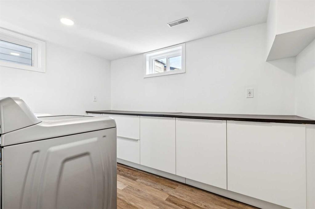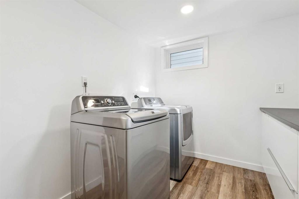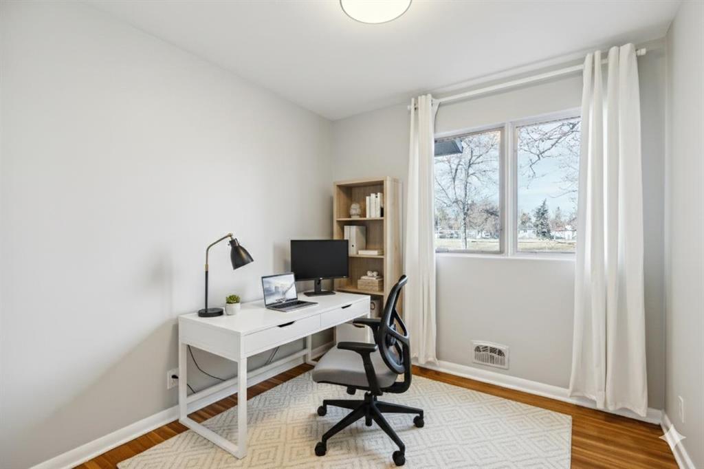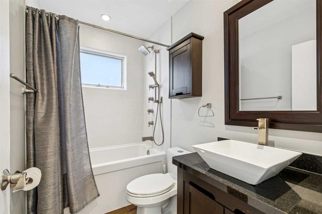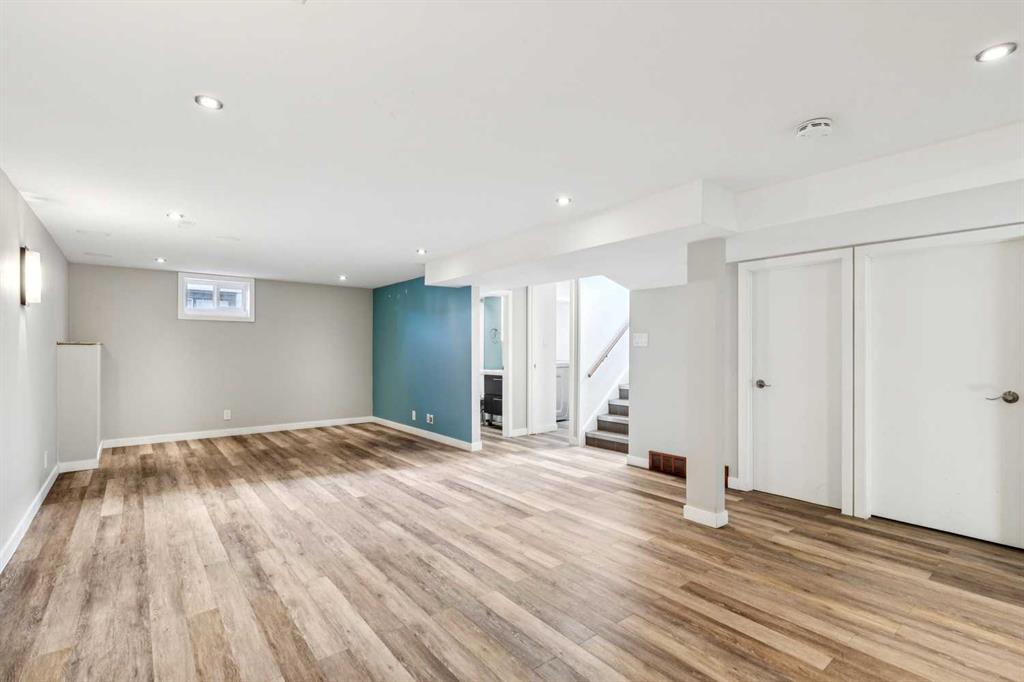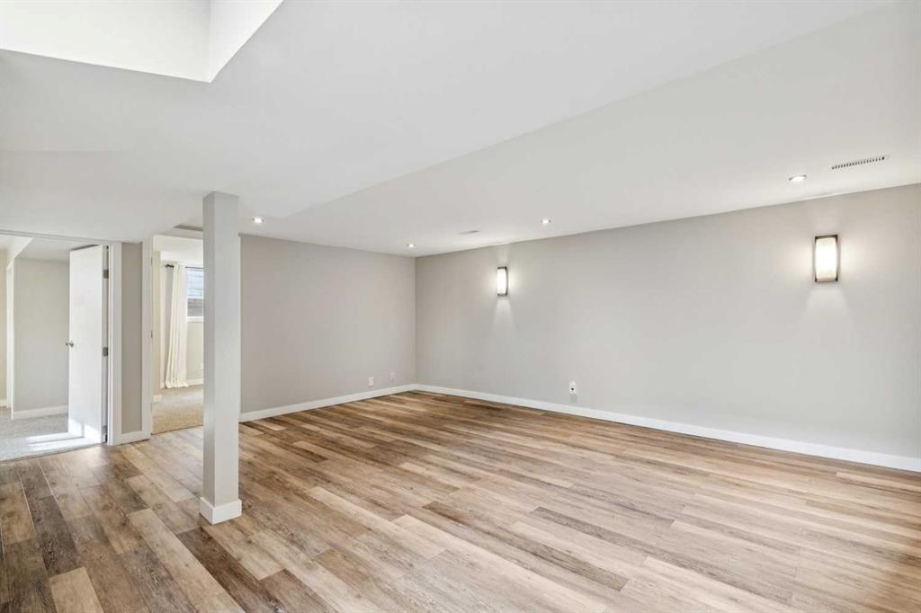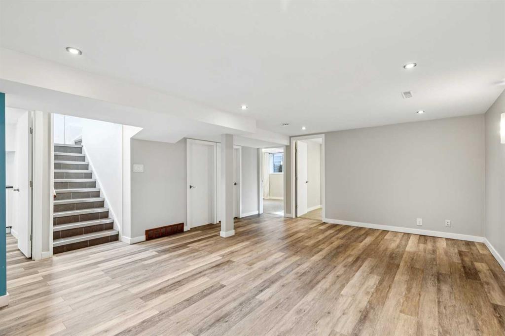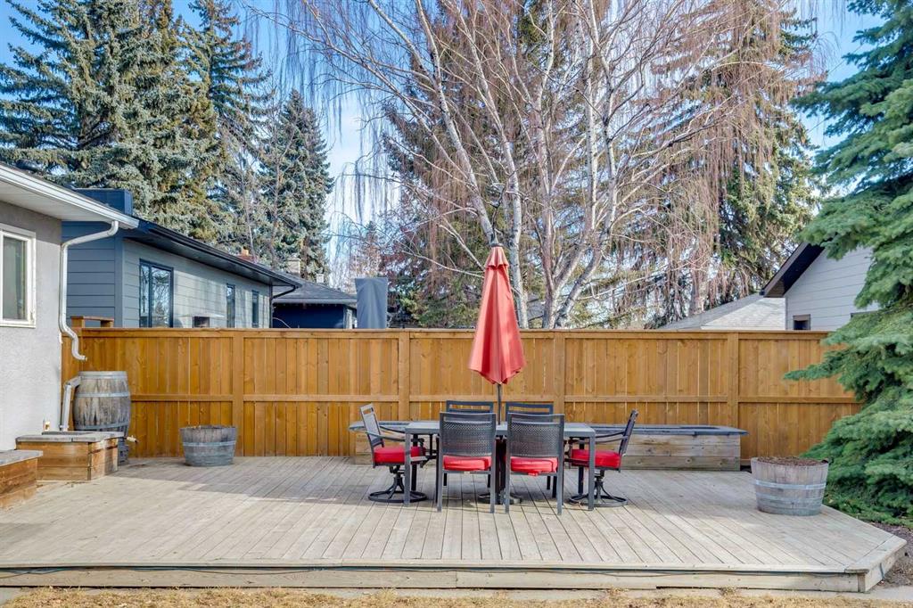 This upgraded and move-in-ready bungalow offers a rare combination of privacy and unbeatable walkability in the heart of Elboya. Situated directly across from the open green space of the St. Anthony school field, you’ll enjoy expansive views and no neighbours directly in front. The main floor is bright and inviting, featuring large living room windows that frame the park views. While maintaining a traditional layout, the dining room is perfectly situated beside the kitchen for easy entertaining and day-to-day flow. The main floor is highlighted by a large primary suite featuring extensive wall-to-wall built-in closets. Two additional good-sized bedrooms offer the perfect setup for children’s rooms or dedicated home offices. A renovated 3-piece bath completes the main level. The fully finished basement has been updated to include a modern laundry room, a spacious family room, an additional renovated full bathroom, and two large bedrooms. With a separate entrance and laundry situated outside the living area, the basement is well-configured for a potential legal suite (subject to City of Calgary discretionary approval and permitting). The private, south-facing backyard is designed for both relaxation and entertaining. A large tiered deck provides a perfect space for outdoor lounging and dining amidst perennial beds and a raspberry patch. A double detached heated garage provides comfort year-round, and a large gravel parking pad beside the garage accommodates two additional vehicles. Perfect for extra cars, a boat, or a small utility trailer. Experience the rare luxury of park-front peace and Britannia’s best amenities just steps from your front door.