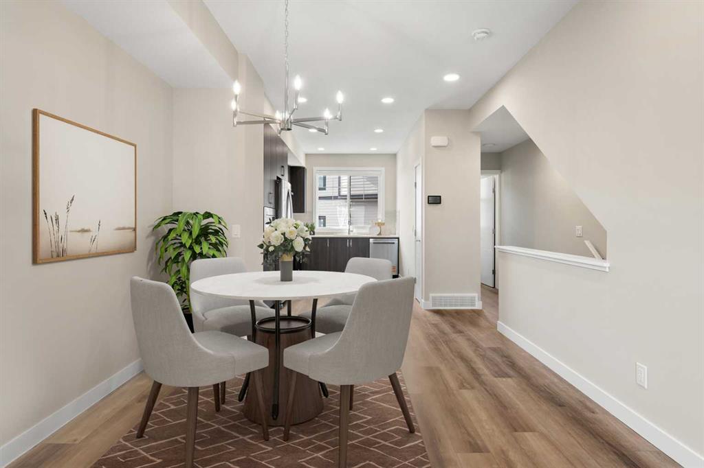 **OPEN HOUSE: Saturday and Sunday from 1-4PM** Welcome to Chelsea Court, a beautifully designed two-bedroom, two-and-a-half-bathroom townhome nestled in the heart of Chestermere’s vibrant Chelsea community. This modern residence offers over 1000 sqft of thoughtfully laid-out living space, with an open-concept main floor that seamlessly integrates the kitchen, dining area, and living room—perfect for entertaining and everyday comfort. Large windows flood the space with natural light, enhancing the sleek finishes and warm tones throughout.