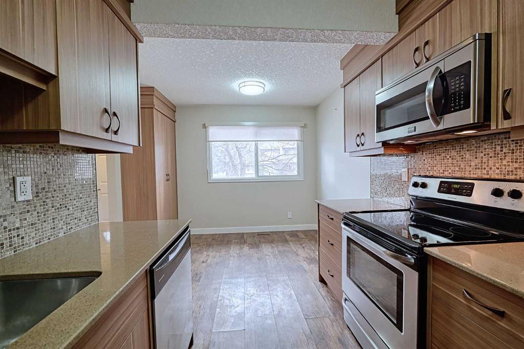 Welcome to a gorgeous UPDATED 3 bedroom townhome located in the sought after Madigan Village. Your future home offers a RENOVATED kitchen with GRANITE countertops, BEAUTIFUL cupboards, FANCY backsplash, STAINLESS STEEL APPLIANCES and laminate flooring; a living room with access to a private backyard; UPDATED 4PC bathroom and 3 spacious bedrooms. Furnace was replaced with a mid-efficiency furnace in 2014. Basement is wide open for future development. 2 PARKING STALLS right in front of the unit for your convenience! Well run complex and excellent location with walking distance (LITERALLY!) to 3 schools – St. Martha’s (K9), Dr. Gladys McKelvie Egbert (7-9), and Roland Michener (K-6). PLUS the complex backs onto the vast BIG MARLBOROUGH PARK. Come view it today and get ready to move in!