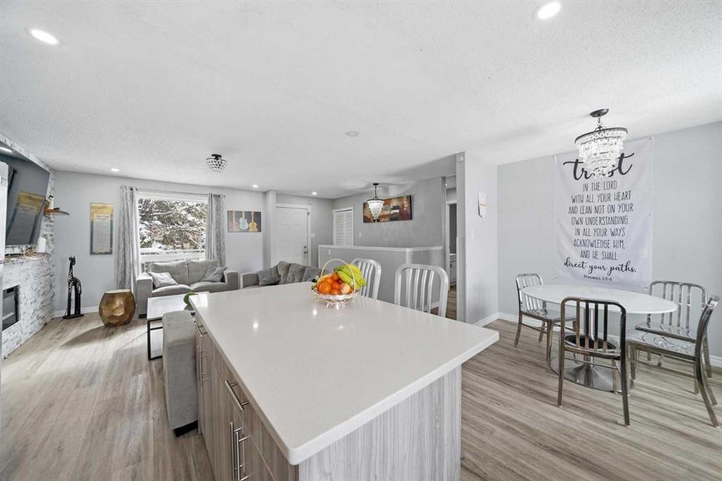 Attention first-time home buyers and investors, don’t miss this opportunity to own a beautifully renovated and well cared for home with incredible value and versatility. Step inside to a bright and inviting main floor featuring a professionally installed new kitchen with a new open concept layout, complete with quartz countertops, a stunning quartz island and barstool seating, perfect for entertaining while the chef takes center stage. The adjoining dining area flows seamlessly into the living room, showcasing a striking stone feature wall with an electric fireplace that creates a warm and cozy space for relaxing or hosting family and friends. New luxury vinyl plank (LVP), flooring runs throughout the main floor, which also includes two good sized bedrooms. Downstairs offers exceptional space and flexibility with three additional bedrooms, all featuring brand new egress windows for added safety and natural light, along with new LVP flooring throughout the basement space. Outside, the home boasts fantastic curb appeal with newer siding and shingles (pre 2021) and a private backyard backing directly onto greenspace. Enjoy the new front deck area including the back yard, which also features a large deck for summer BBQ and entertaining. Included with your outdoor space you will find ample parking with a single car garage, carport, and an additional concrete parking pad. The property backs onto Falshire Park and Terry Fox School, providing convenient access to a playground, outdoor rink, baseball diamond and a soccer field, perfect for active families. Don’t miss this opportunity to book your showing today!