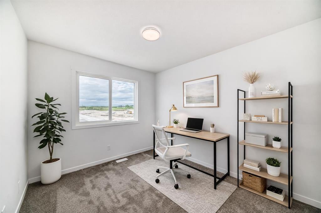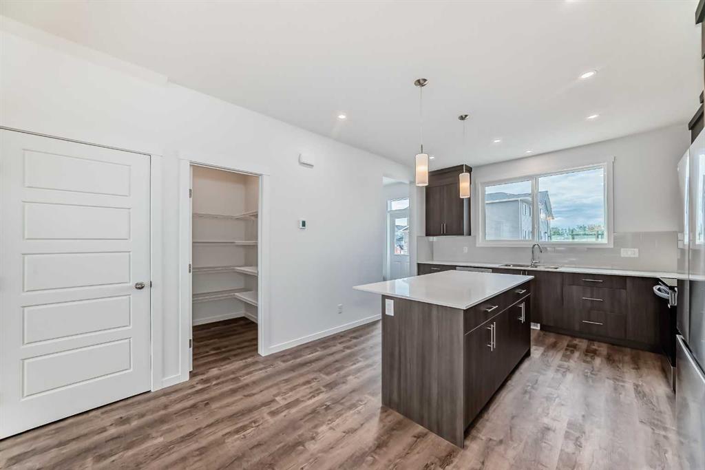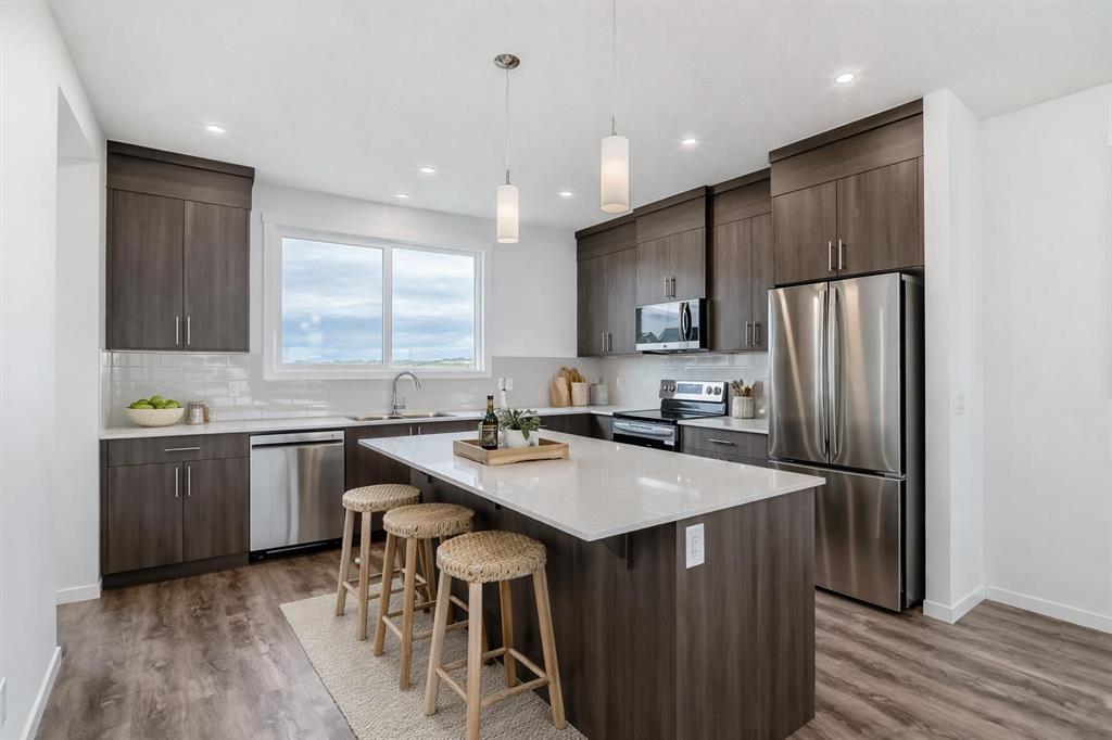 Discover your dream home in Wedderburn, Okotoks, just 25 minutes from Calgary via Highway 2A—a never-occupied 1,448 sq. ft. gem by Anthem, perfect for buyers seeking a turnkey haven with a builder’s new home warranty. The open-concept main floor dazzles with sunlight through an extra dining window, durable LVP flooring, and a seamless living-dining space for cozy nights or gatherings. The upgraded kitchen shines with ceiling-height soft-closing cabinetry for ample storage, sleek stainless steel appliances, quartz countertops, a spacious island, under-cabinet lighting, and a walk-in pantry. Upstairs, your primary bedroom boasts a walk-in closet and 3-piece ensuite, plus two bedrooms with walk-in closets, a full bath, and a stackable washer/dryer. A side entrance and 9’ basement with two windows offer future suite potential (subject to approval and permitting by the city/municipality), while a BBQ gas line in back awaits summer evenings. Minutes from St. James School, Wedderburn Park, D’Arcy Crossing shops, and commuter routes, this energy-efficient home blends tranquility and convenience. Stop dreaming and book your private showing today to embrace the Wedderburn lifestyle!