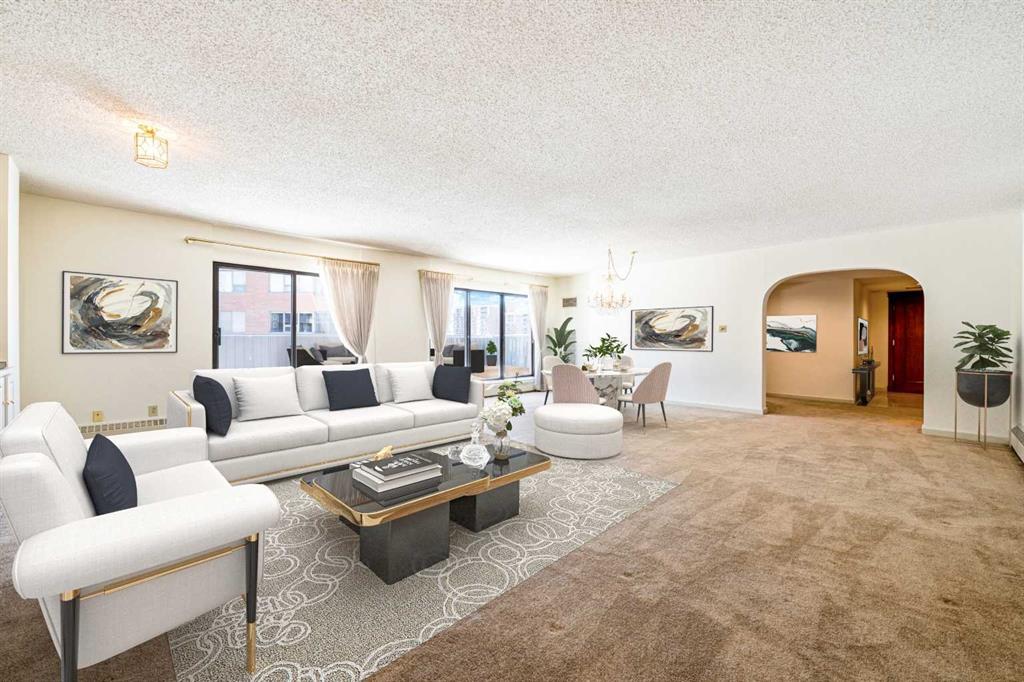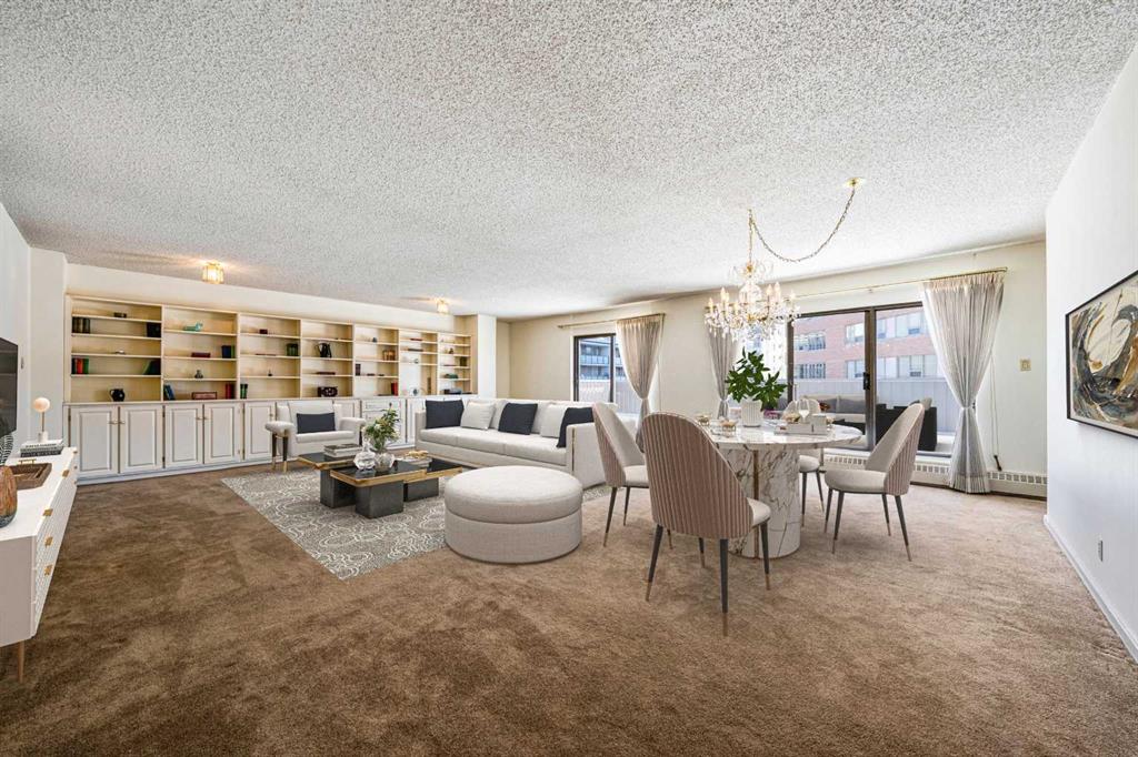 Executive, private corner unit in the West Tower of “The Estate,” with only three units on the floor. Offering over 1,930 sq. ft. of living space, this bright and spacious home features oversized windows that flood the living and dining areas with natural light. You will appreciate the thoughtful layout with two huge bedrooms, two full bathrooms, two south-facing balconies, and two heated underground parking stalls. From the moment you step inside, you are welcomed by a generous foyer that leads into an impressive open living and dining space with large windows and sliding doors opening to a sun-filled oversized balcony. The kitchen is equally bright with multiple windows and plenty of workspace, and the adjacent laundry room offers excellent storage. Retreat to a generous primary bedroom featuring large windows, ample closet space, a 5-piece ensuite, and access to a private balcony. The second bedroom is also spacious and includes a built-in workstation, plus an ensuite bath with a cheater door, allowing it to function as both a private ensuite and a convenient main bathroom. This bedroom also offers access to the second south-facing balcony, shared with the primary bedroom, perfect for enjoying bright afternoons and fresh air. Life at “The Estate” offers elegance and ease, with a beautifully renovated lobby and 24/7 concierge and security. Amenities include an indoor saltwater pool and hot tub with a poolside kitchen, a modern fitness facility, an indoor library and book exchange, and an expansive 8,000 sq. ft. outdoor terrace with gas BBQs, fire tables, and plenty of seating. Condo fees include all utilities, and there is plenty guest parking. The Estate also offers a private storage locker and a dedicated area for ski storage. The Estate is directly attached to the Ranchmen’s Club, Alberta’s only platinum-ranked private club founded in 1891, offering dining, social events, and more. Enjoy an unbeatable inner-city location with shopping, dining, and green space nearby, including Lougheed House directly across the street.
