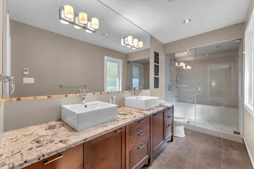 Step outside into your private backyard surrounded by mature, low-maintenance trees and shrubs. The massive covered deck, just off the kitchen, lets natural light filter through while providing shade and shelter year-round. At the back, you’ll find a huge RV pad with alley access and room for multiple vehicles.