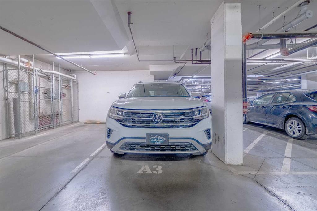 Additional highlights include air conditioning, underground titled parking, a secure storage cage for seasonal items, and easy access to the elevator without being directly beside it.