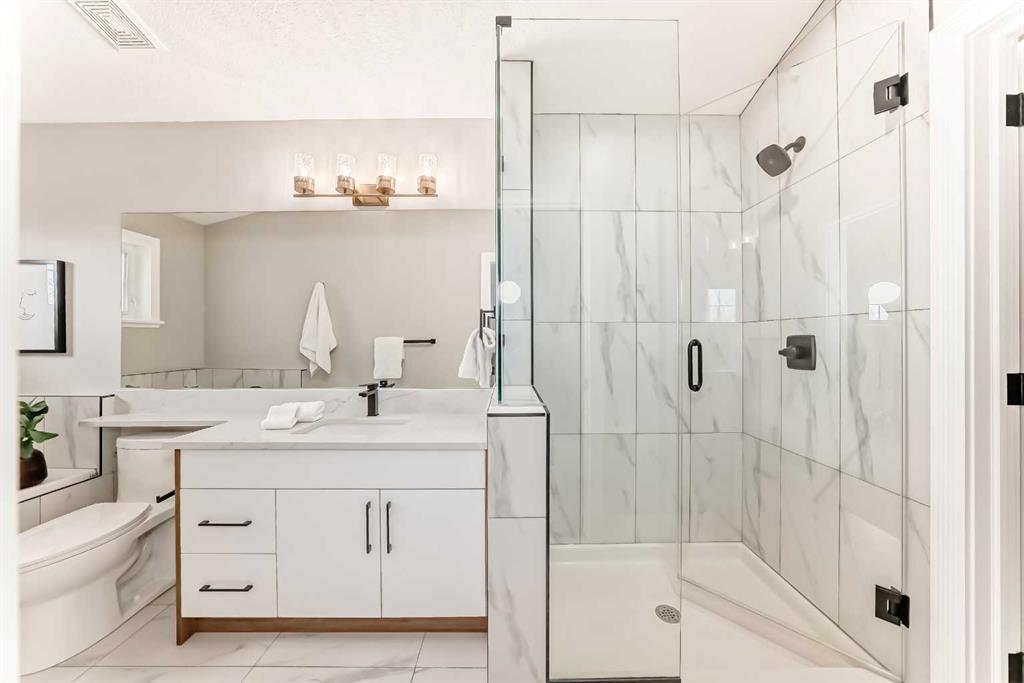 Welcome to this beautifully refreshed semi-detached home in the highly sought-after inner-city community of Windsor Park. Known for its central location and charm, Windsor Park offers an exceptional lifestyle just minutes from downtown. Enjoy being a short stroll from the shops, dining, and everyday conveniences of Britannia Plaza, as well as easy access to the scenic Britannia Ridge and Calgary’s extensive pathway network. Inside, the home has been thoughtfully updated with new flooring throughout, along with a beautifully renovated kitchen and refreshed bathrooms, creating a clean and modern feel from top to bottom. The primary suite is a true standout, showcasing a stunning vaulted ceiling. Enjoy the luxury of two walk-in closets and a spacious ensuite complete with a soaker tub and separate shower. The upper level also features two additional bedrooms, a main bathroom, and convenient upper-level laundry. Outside, the low-maintenance backyard offers a great outdoor space to enjoy with minimal upkeep. Additional upgrades include on-demand hot water, air conditioning, and a new furnace. The basement is well designed for entertaining, featuring a cozy fireplace and a bar area complete with a bar fridge. This level also includes a spacious guest bedroom with its own ensuite, providing comfort and privacy for guests. Storage is a rare find in homes of this style, but this property delivers with a large, dedicated storage room and additional space in the furnace room as well as beautiful built-ins throughout the home. This is an incredible opportunity to own a move-in ready home in one of Calgary’s most desirable inner-city neighbourhoods.