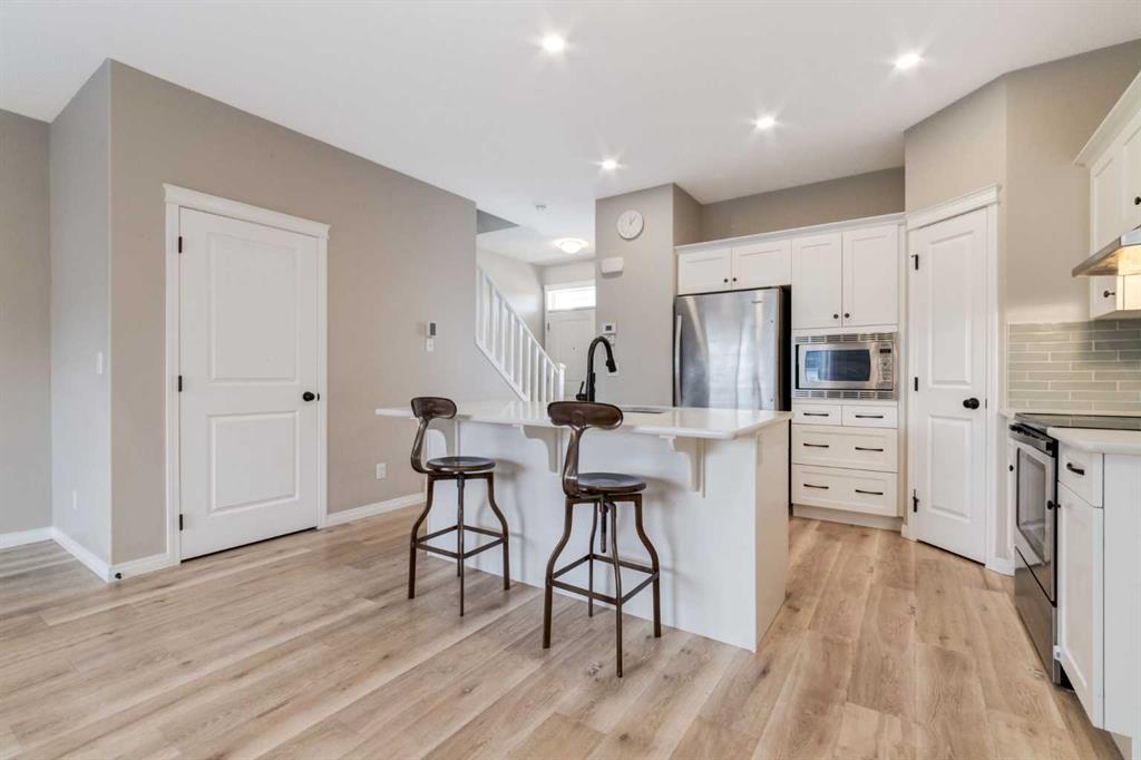 Welcome to this former Morrison showhome in the vibrant SW community of Belmont — a thoughtfully designed home offering flexibility, comfort, and future growth potential. Just off the front entrance, a versatile flex space can easily serve as a main floor bedroom, office, or study. The open-concept layout flows into a stylish kitchen featuring a built-in microwave and seamless sightlines to the dining and living areas, while the east-facing backyard fills the home with beautiful morning sunlight. Outside, the spacious 20′ x 24′ detached garage provides ample storage and comfortable parking for two vehicles. Upstairs offers two bedrooms and a generous bonus room that could be converted into a third bedroom, and the unfinished basement is ready for your personal vision. As Belmont continues to grow, exciting future amenities are planned including a recreation centre, library, schools, and a transit hub with a future LRT stop, making everyday living even more convenient. Ideally located in Calgary with quick access to Macleod Trail and Stoney Trail, plus connections to cycling pathways and major routes, this quiet and well-buffered neighbourhood offers both accessibility and peaceful residential charm.