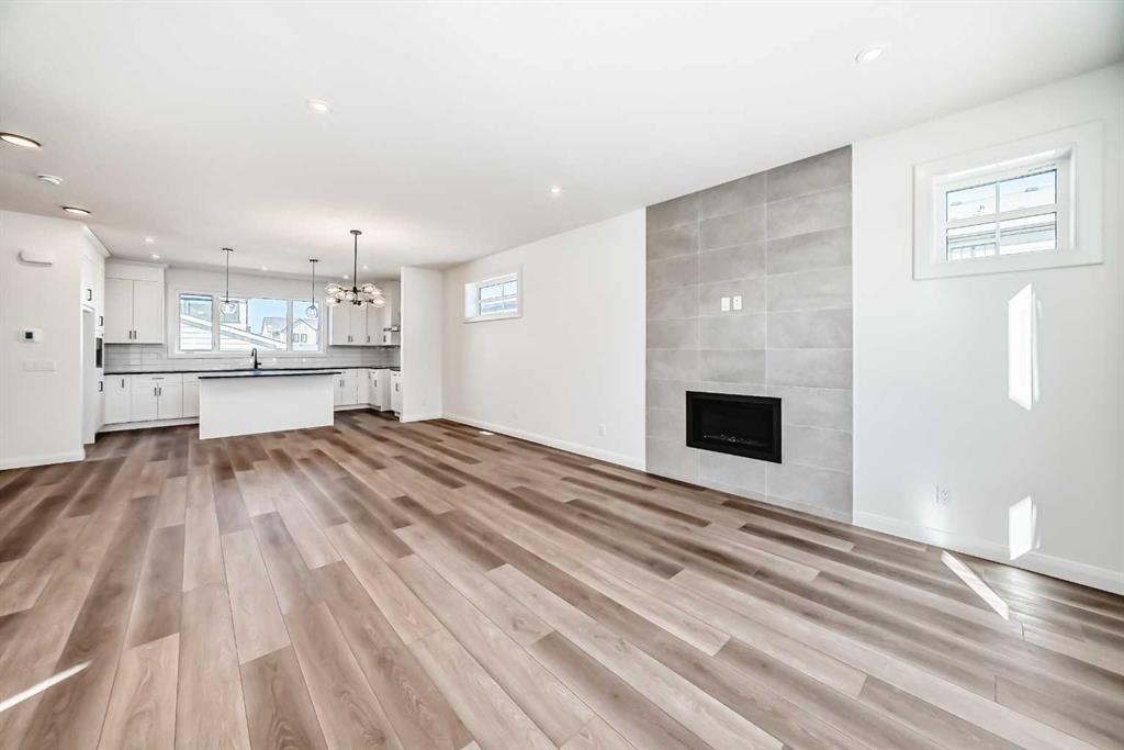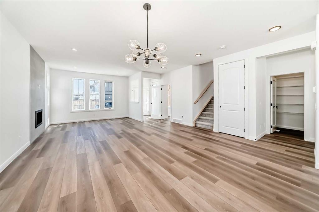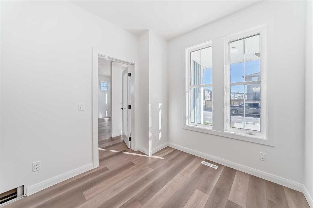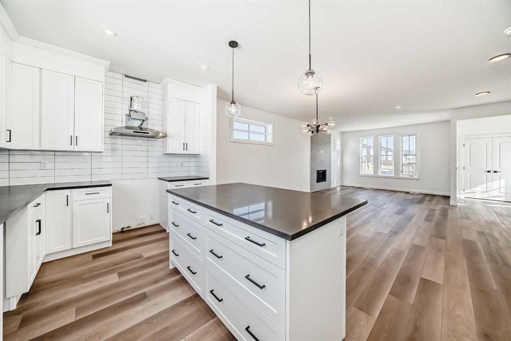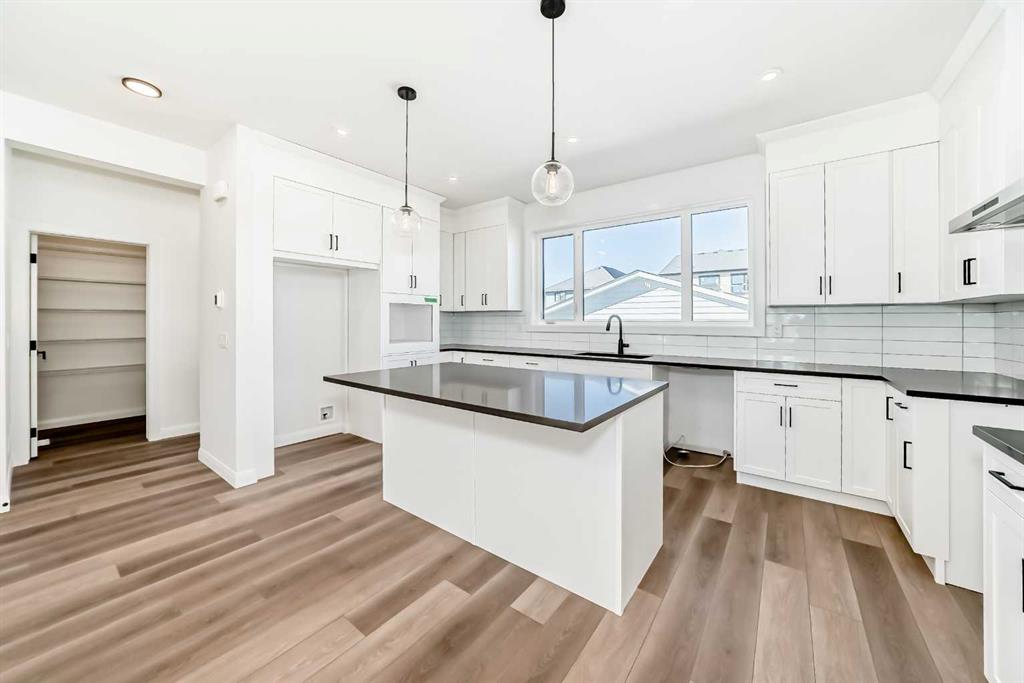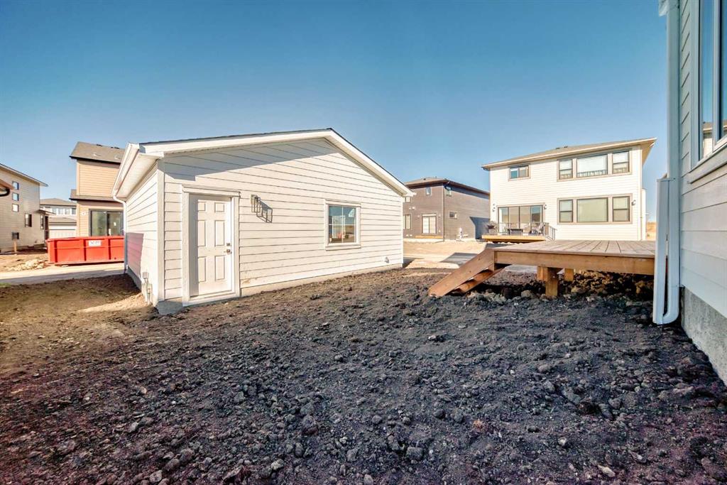 Brand new and move-in ready! This 2,082 sq. ft. Broadview Homes build blends timeless style with thoughtful upgrades. The main floor offers a flexible front room ideal for an office and a sunlit living room with a stylish gas fireplace. The bright white kitchen features quartz counters and 42″ upper cabinets finished to the ceiling with crown moulding. The stainless-steel appliance package includes a gas range, dishwasher, hood fan, and built-in microwave. A large walk-in pantry keeps everyday essentials organized. Upstairs you’ll find three bedrooms and two baths, including a primary retreat with a walk-in closet with a window and a luxurious 5-piece ensuite with double vanity, soaker tub, and roomy tiled shower. The lower level features 9′ ceilings and is unfinished, ready for your design, with rough-in for a future bathroom. The west-facing backyard offers a 10′ x 18′ deck and a concrete sidewalk to the oversized double garage, providing ample parking and storage. Additional perks include rough-in for central vacuum. Set within Harmony, a sought-after lake community and bedroom community of Calgary, you are moments from parks, pathways, golf, and everyday amenities.