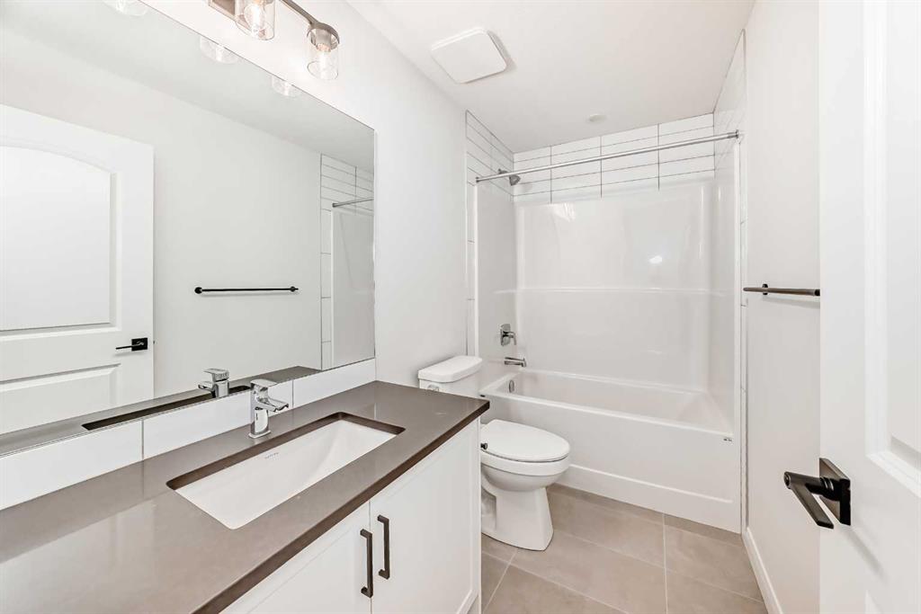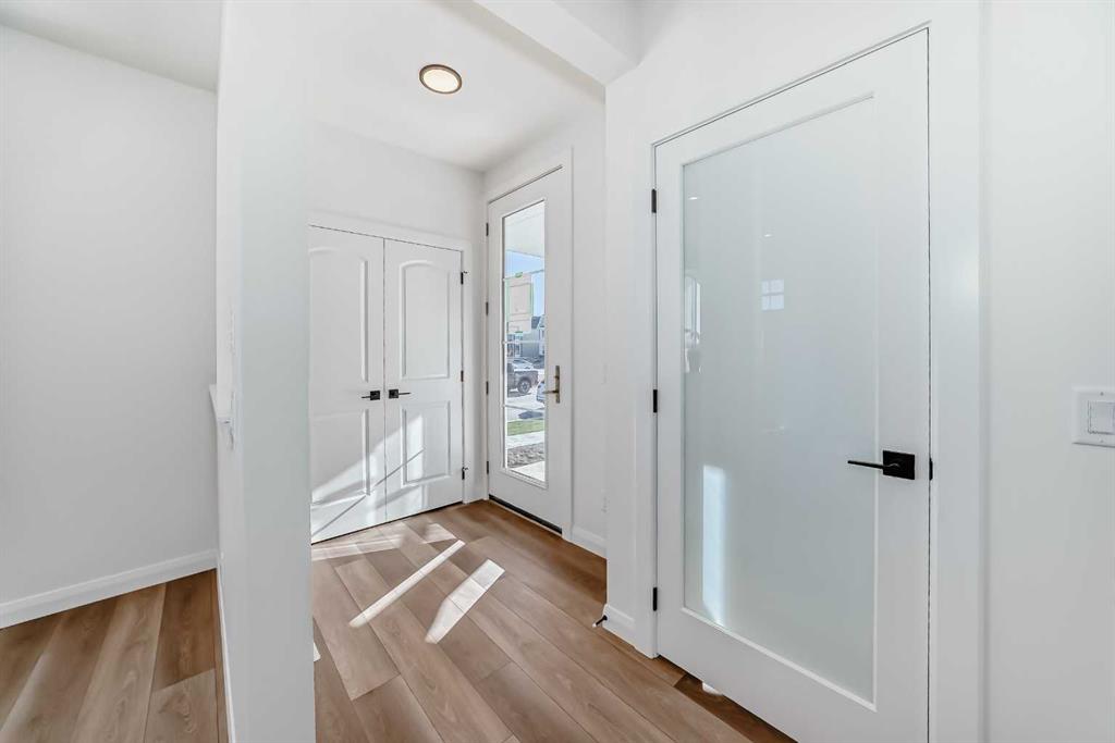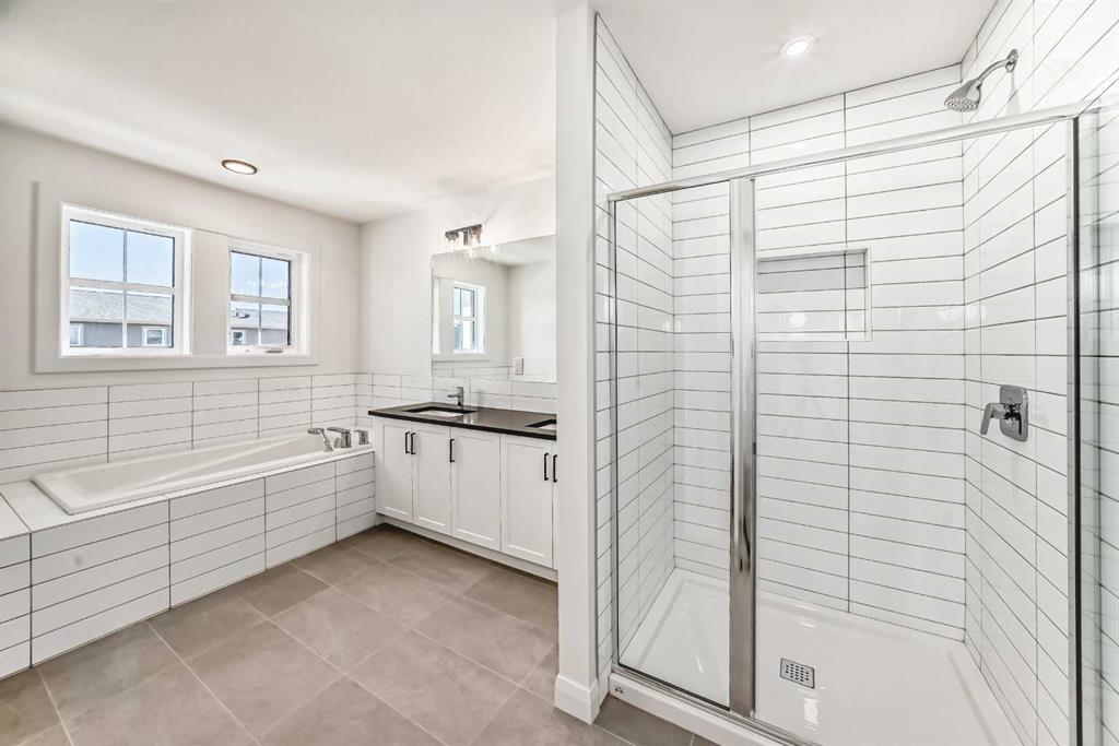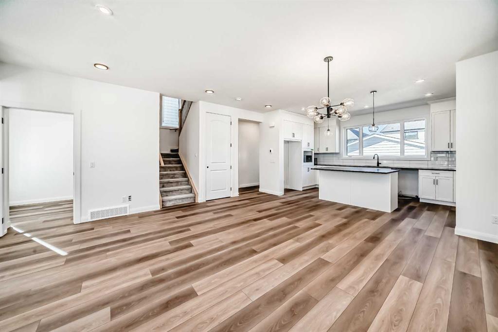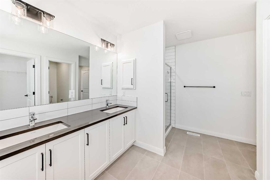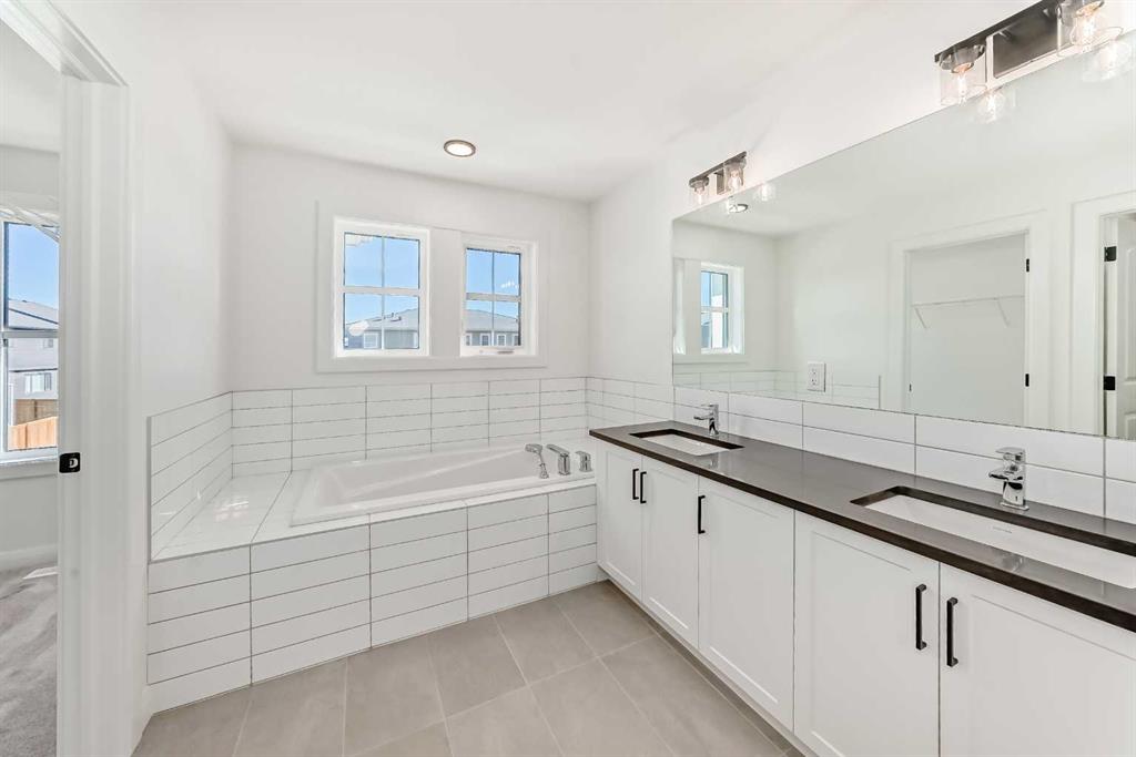 Brand new and move-in ready! This 2,082 sq. ft. Broadview Homes build blends timeless style with thoughtful upgrades. The main floor offers a flexible front room ideal for an office and a sunlit living room with a stylish gas fireplace. The bright white kitchen features quartz counters and 42″ upper cabinets finished to the ceiling with crown moulding. The stainless-steel appliance package includes a gas range, dishwasher, hood fan, and built-in microwave. A large walk-in pantry keeps everyday essentials organized. Upstairs you’ll find three bedrooms and two baths, including a primary retreat with a walk-in closet with a window and a luxurious 5-piece ensuite with double vanity, soaker tub, and roomy tiled shower. The lower level features 9′ ceilings and is unfinished, ready for your design, with rough-in for a future bathroom. The west-facing backyard offers a 10′ x 18′ deck and a concrete sidewalk to the oversized double garage, providing ample parking and storage. Additional perks include rough-in for central vacuum. Set within Harmony, a sought-after lake community and bedroom community of Calgary, you are moments from parks, pathways, golf, and everyday amenities.