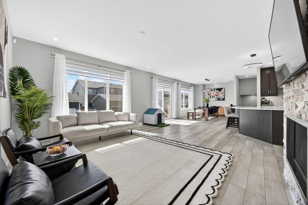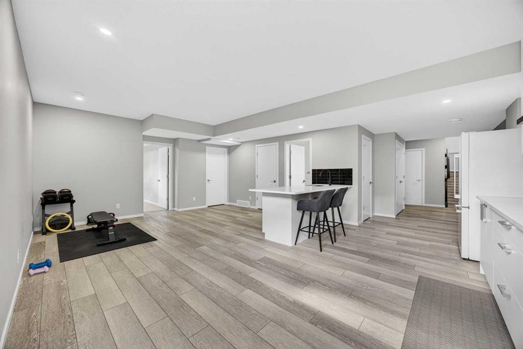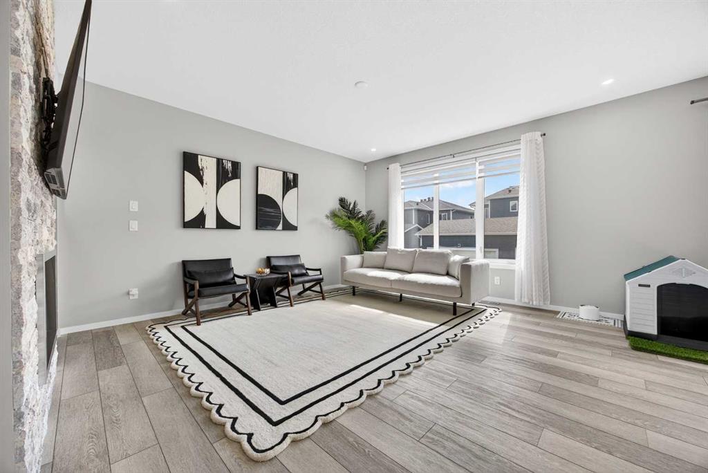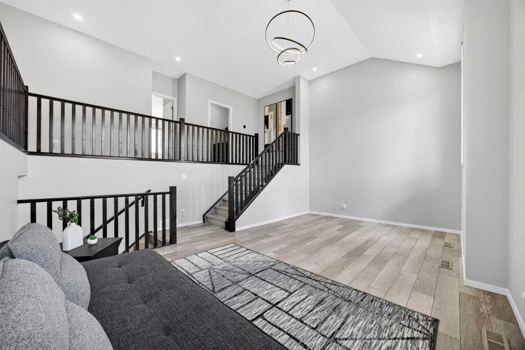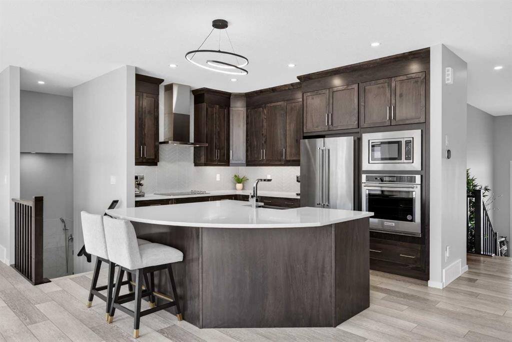 WOW! I don’t even know where to start with this amazing home! So much space and room to grow in this IMMACULATE home that still shows like brand new! As you enter the home you are greeted with a spacious entrance and as you come up a few stairs to the main living areas you have a convenient private office space, a WIDE OPEN floor plan in the kitchen, living room and dining areas! The kitchen is a chefs dream with a HUGE island, quartz countertops, loads of cabinet space, cooktop, built in wall oven, central sink in the island, chevron style backsplash, a walk in pantry and upgraded lighting! The living room features a floor to ceiling stone wall where the gas fireplace ties in seamlessly, beautiful vinyl flooring throughout the main floor, a generous sized dining area that can accommodate a massive table if needed and there is access to the back yard from the living/dining areas! As we make our way upstairs you have a totally separate and HUGE bonus room with soaring vaulted ceilings and tons of natural light! As we keep going upstairs to the bedrooms there is an upper level laundry room with a sink , the primary bedroom is awesome and it has a sunny south exposure, a walk in closet that is massive and the ensuite bathroom has dual sinks, quartz counters, soaker tub and a separate shower! The remainder of the upper level features THREE more bedrooms (all a great size!) and another full bathroom with dual sinks as well! As if that wasn’t enough we ALSO have a fully finished basement with a side entrance, kitchen area (no stove) but there is a second fridge, additional washer and dryer, tons of storage and a 5th bedroom as well as a large living area that could be suited in the future if needed. This home has it ALL – in addition to all of this there is also a professionally built dog wash area in the mudroom, south facing back yard that will have brand new sod installed soon, a double front attached garage, super close and convenient to all of the areas amenities, schools, parks, playgrounds, golf courses, Stoney and McLeod trails! This home is one of the special ones you don’t see very often and is ready for the new owners to love it as much as the current ones do! Don’t miss this one!