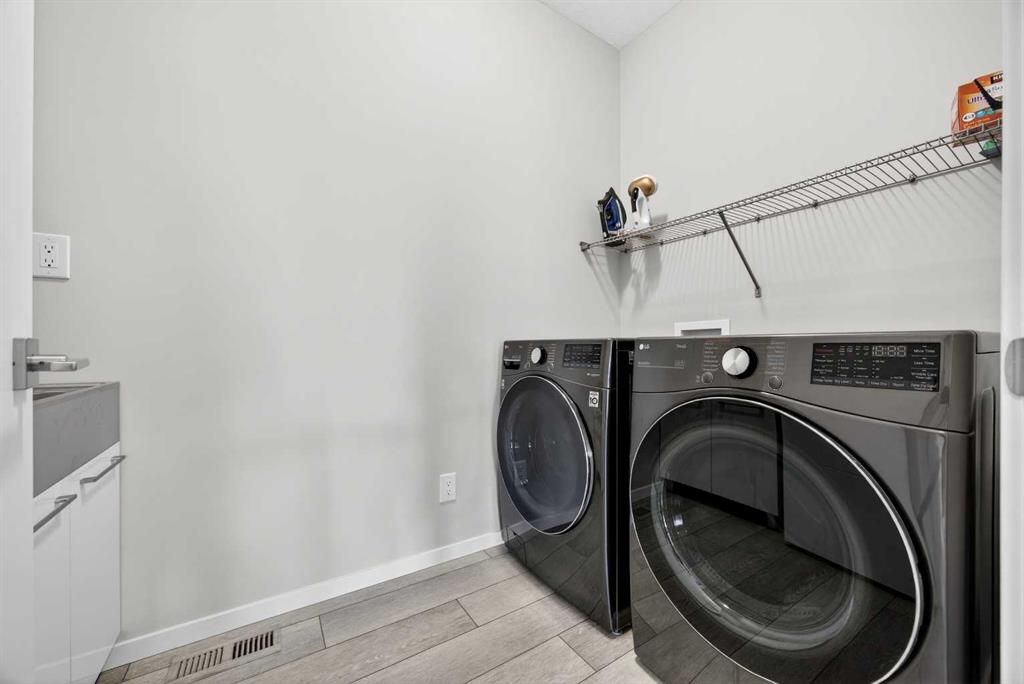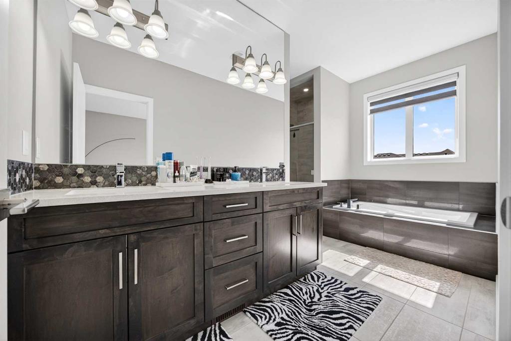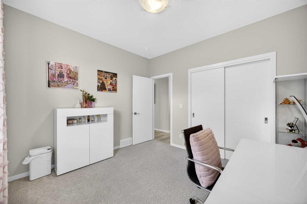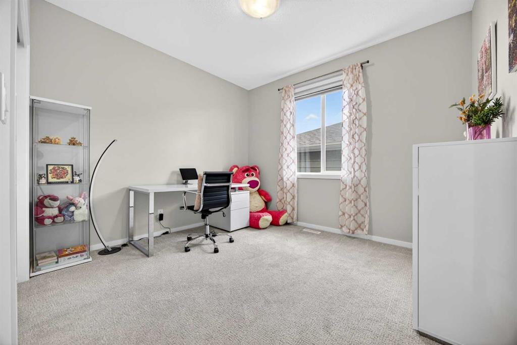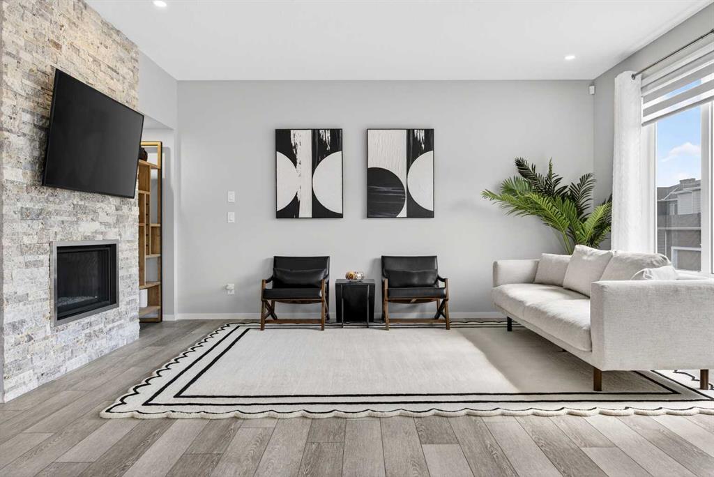 WOW! I don’t even know where to start with this amazing home! So much space and room to grow in this IMMACULATE home that still shows like brand new! As you enter the home you are greeted with a spacious entrance and as you come up a few stairs to the main living areas you have a convenient private office space, a WIDE OPEN floor plan in the kitchen, living room and dining areas! The kitchen is a chefs dream with a HUGE island, quartz countertops, loads of cabinet space, cooktop, built in wall oven, central sink in the island, chevron style backsplash, a walk in pantry and upgraded lighting! The living room features a floor to ceiling stone wall where the gas fireplace ties in seamlessly, beautiful vinyl flooring throughout the main floor, a generous sized dining area that can accommodate a massive table if needed and there is access to the back yard from the living/dining areas! As we make our way upstairs you have a totally separate and HUGE bonus room with soaring vaulted ceilings and tons of natural light! As we keep going upstairs to the bedrooms there is an upper level laundry room with a sink , the primary bedroom is awesome and it has a sunny south exposure, a walk in closet that is massive and the ensuite bathroom has dual sinks, quartz counters, soaker tub and a separate shower! The remainder of the upper level features THREE more bedrooms (all a great size!) and another full bathroom with dual sinks as well! As if that wasn’t enough we ALSO have a fully finished basement with a side entrance, kitchen area (no stove) but there is a second fridge, additional washer and dryer, tons of storage and a 5th bedroom as well as a large living area that could be suited in the future if needed. This home has it ALL – in addition to all of this there is also a professionally built dog wash area in the mudroom, south facing back yard that will have brand new sod installed soon, a double front attached garage, super close and convenient to all of the areas amenities, schools, parks, playgrounds, golf courses, Stoney and McLeod trails! This home is one of the special ones you don’t see very often and is ready for the new owners to love it as much as the current ones do! Don’t miss this one!