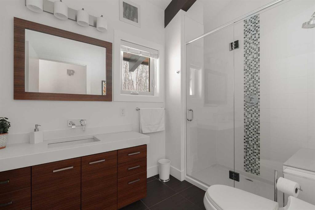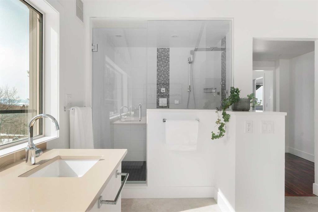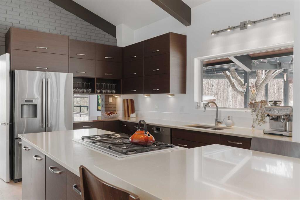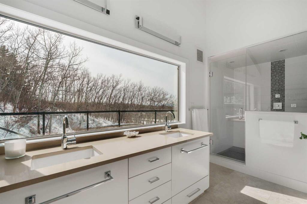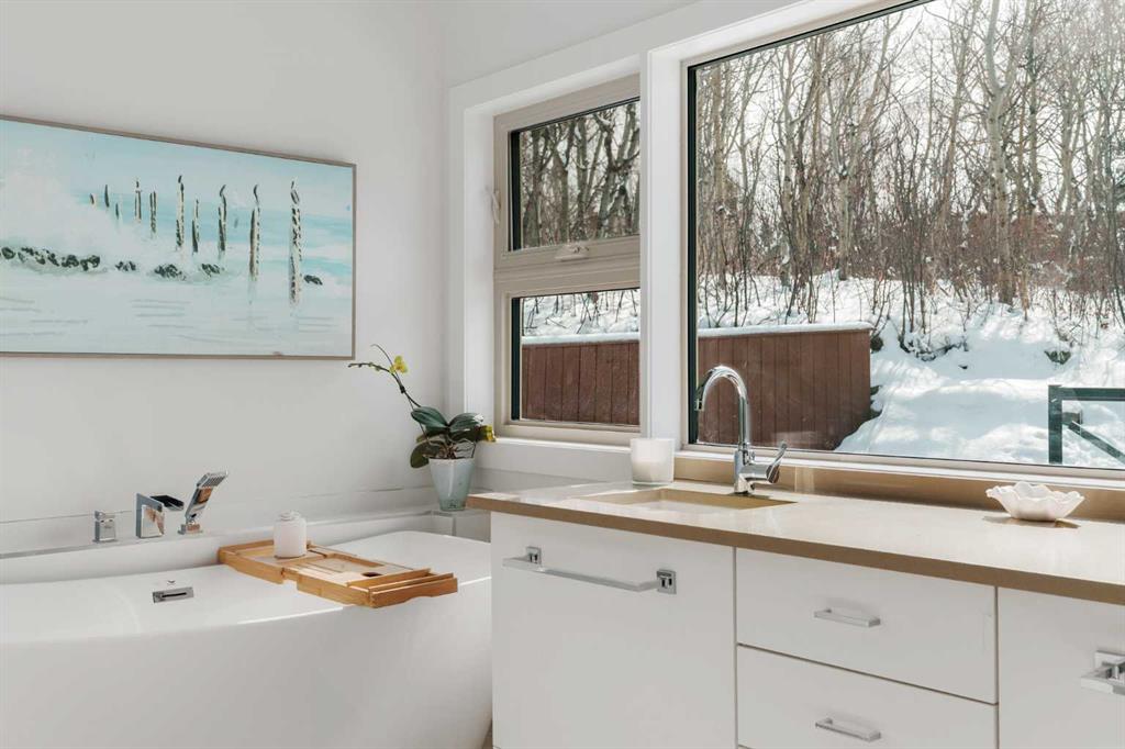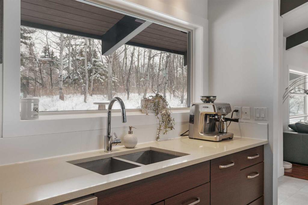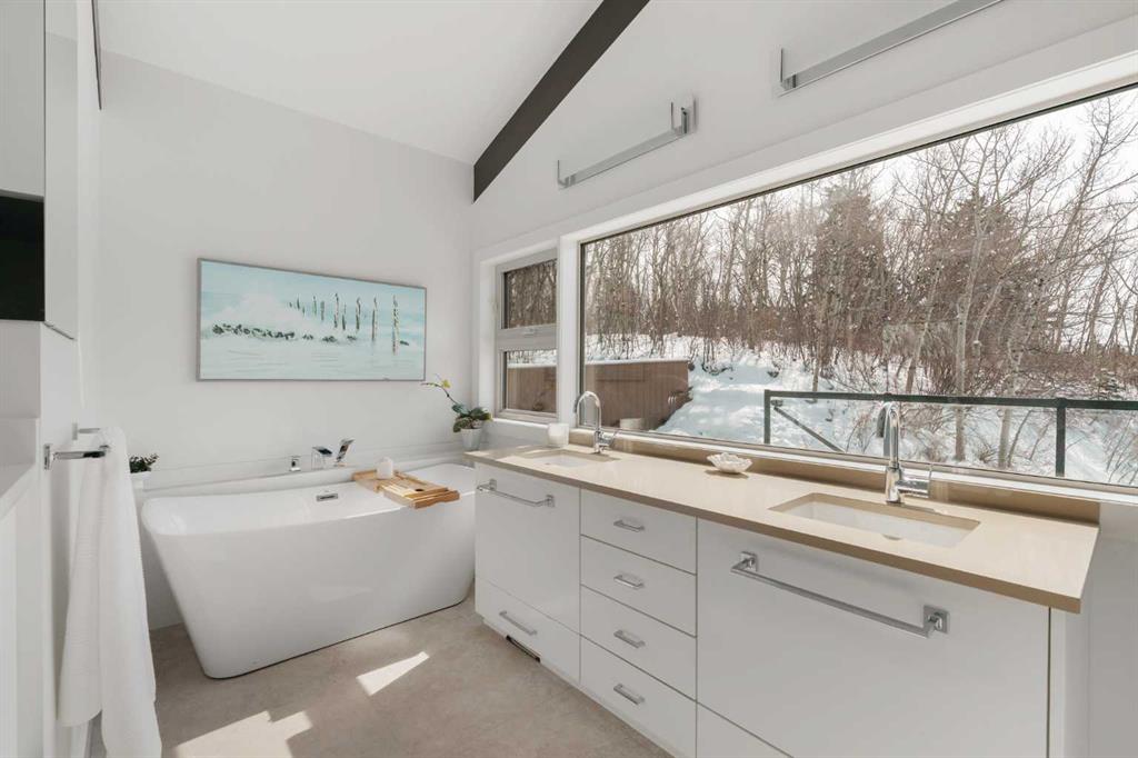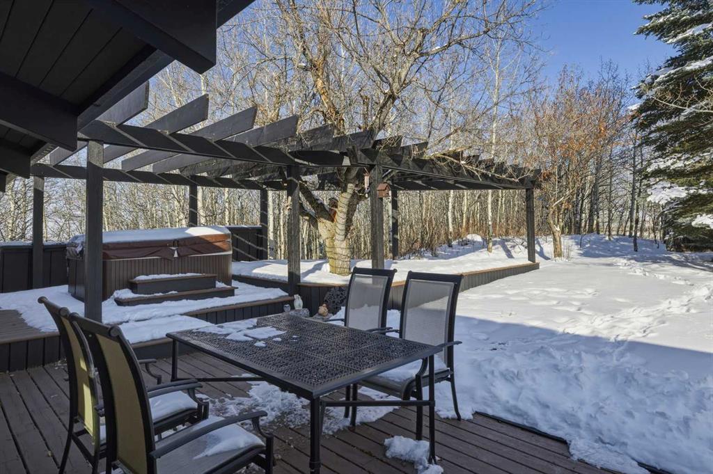 the 2 acres are on a beautifully private parcel, the property is surrounded by mature aspen and native trees, creating a tranquil, secluded setting just minutes west of Calgary’s city limits.