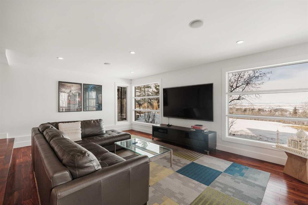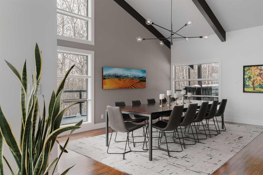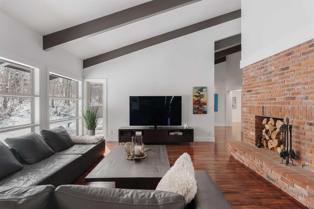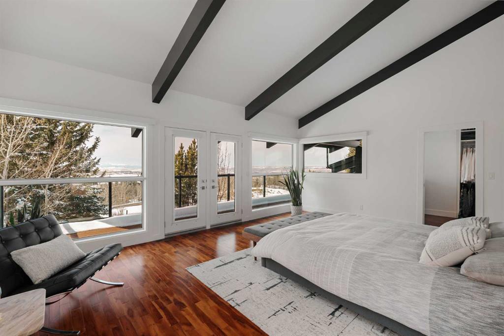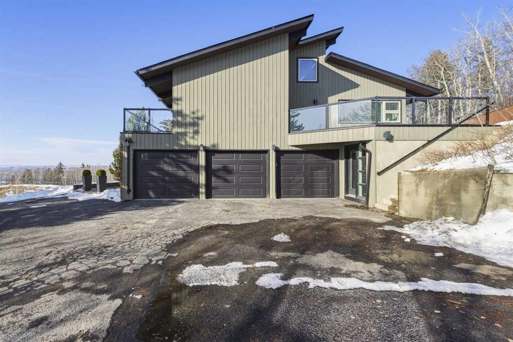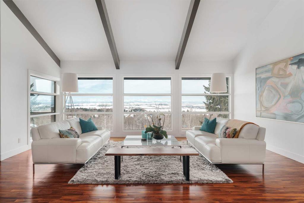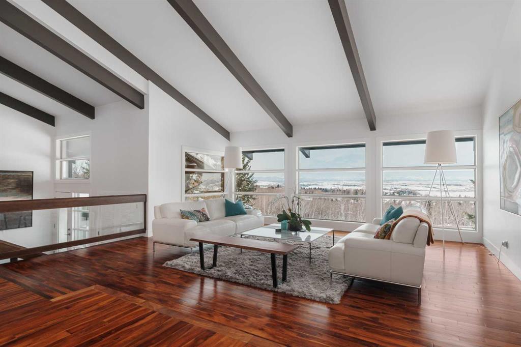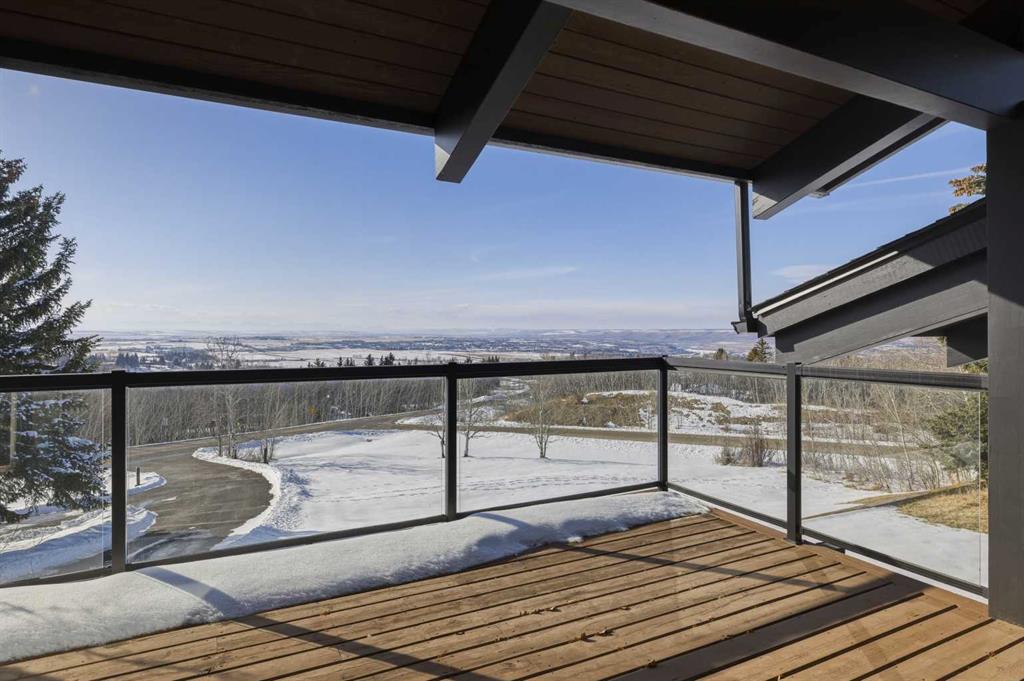 74 Artists View Drive is a truly one-of-a-kind offering—an architecturally designed raised bungalow, perfectly positioned to capture sweeping, unobstructed panoramic views of the Rocky Mountains and Bow River valley. Thoughtfully designed specifically for this exceptional lot, the home embraces its surroundings at every turn. Expansive windows, vaulted ceilings with open beam detailing, and over 3,200 sq.ft. of developed living space create a sense of volume, light, and connection to nature that is both rare and unforgettable. A wraparound deck extends the living experience outdoors, offering multiple vantage points to take in the ever-changing landscape—includingdramatic mountain sunsets. The primary suite is a private sanctuary, intentionally positioned to capture the home’s most breathtaking views. Also included in the primary bedroom is a dedicated loft retreat that offers a quiet, elevated space—ideal for meditation, yoga, or reading. The walkout level introduces a reverse walkout design, offering both flexibility and function. A large private room with direct exterior access is ideally suited for a home office, studio, or client-facing workspace, with the driveway leading directly to this entrance. The rear yard is expansive, level, and full of potential—a rare and valuable feature! Whether envisioned as a future pool, tennis court, sport court, expansive garden or other outdoor recreation or entertaining ideas the possibilities are extensive.