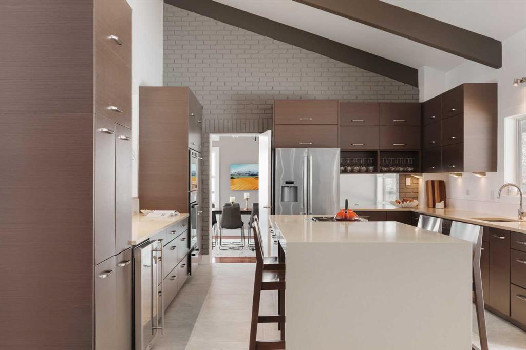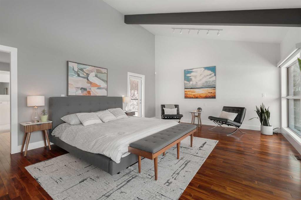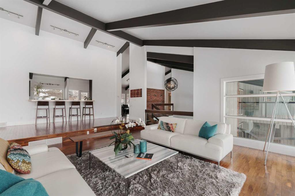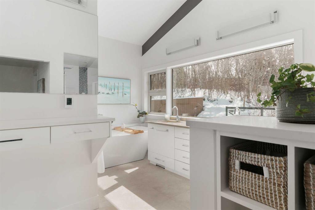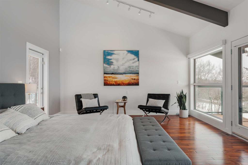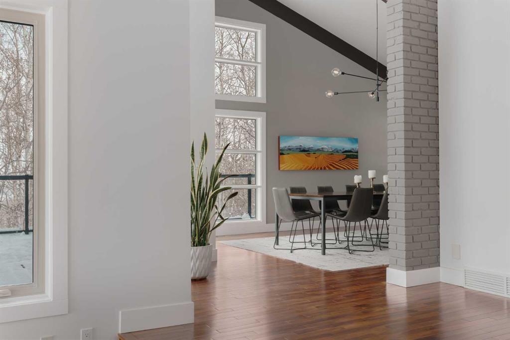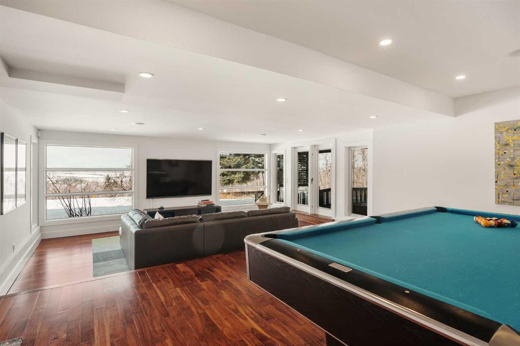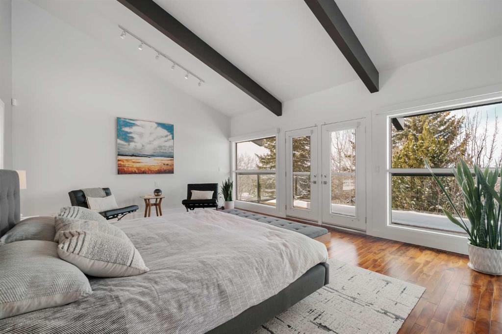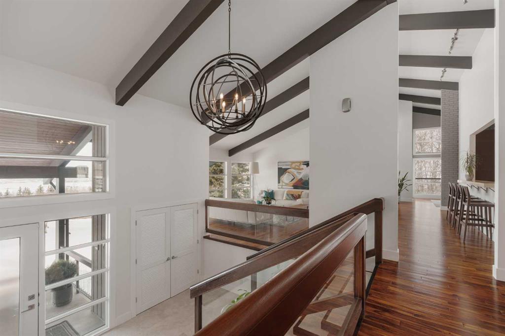 74 Artists View Drive is a truly one-of-a-kind offering—an architecturally designed raised bungalow, perfectly positioned to capture sweeping, unobstructed panoramic views of the Rocky Mountains and Bow River valley. Thoughtfully designed specifically for this exceptional lot, the home embraces its surroundings at every turn. Expansive windows, vaulted ceilings with open beam detailing, and over 3,200 sq.ft. of developed living space create a sense of volume, light, and connection to nature that is both rare and unforgettable. A wraparound deck extends the living experience outdoors, offering multiple vantage points to take in the ever-changing landscape—includingdramatic mountain sunsets. The primary suite is a private sanctuary, intentionally positioned to capture the home’s most breathtaking views. Also included in the primary bedroom is a dedicated loft retreat that offers a quiet, elevated space—ideal for meditation, yoga, or reading. The walkout level introduces a reverse walkout design, offering both flexibility and function. A large private room with direct exterior access is ideally suited for a home office, studio, or client-facing workspace, with the driveway leading directly to this entrance. The rear yard is expansive, level, and full of potential—a rare and valuable feature! Whether envisioned as a future pool, tennis court, sport court, expansive garden or other outdoor recreation or entertaining ideas the possibilities are extensive.