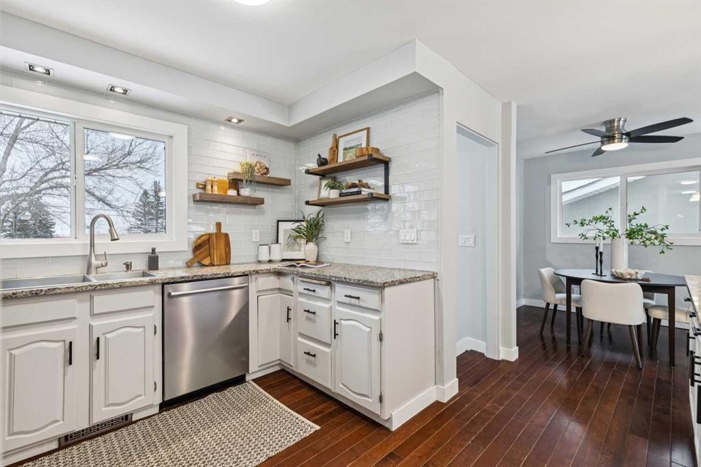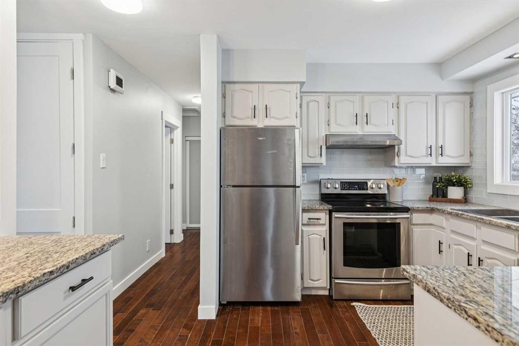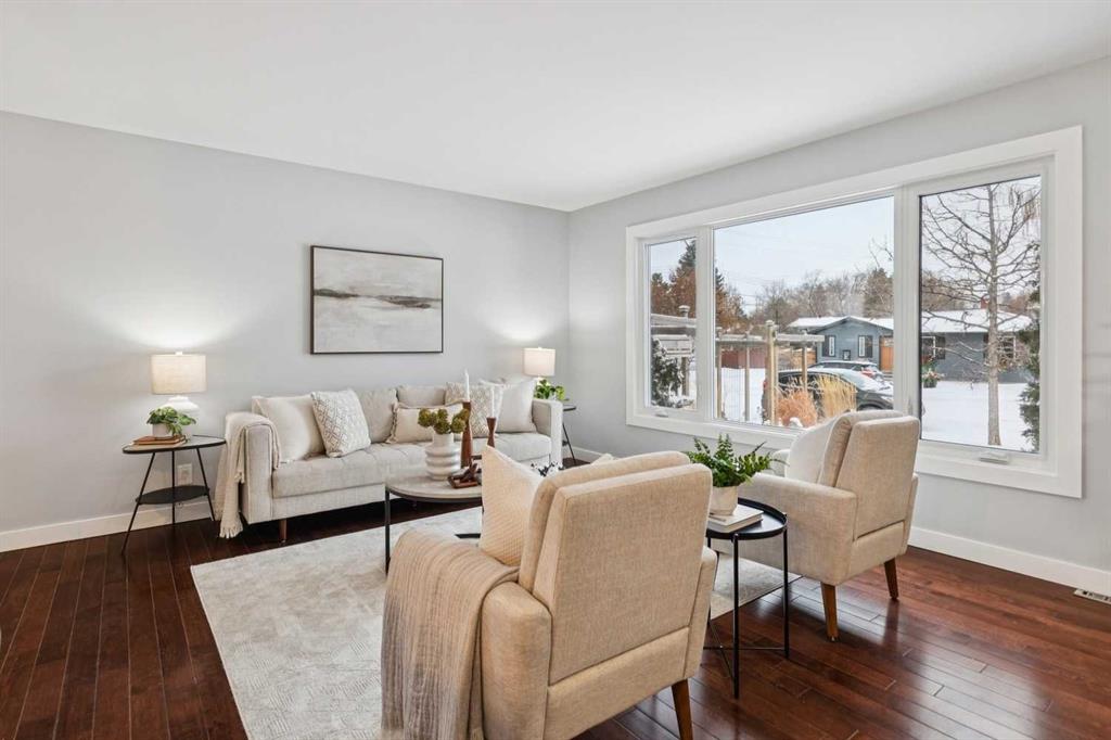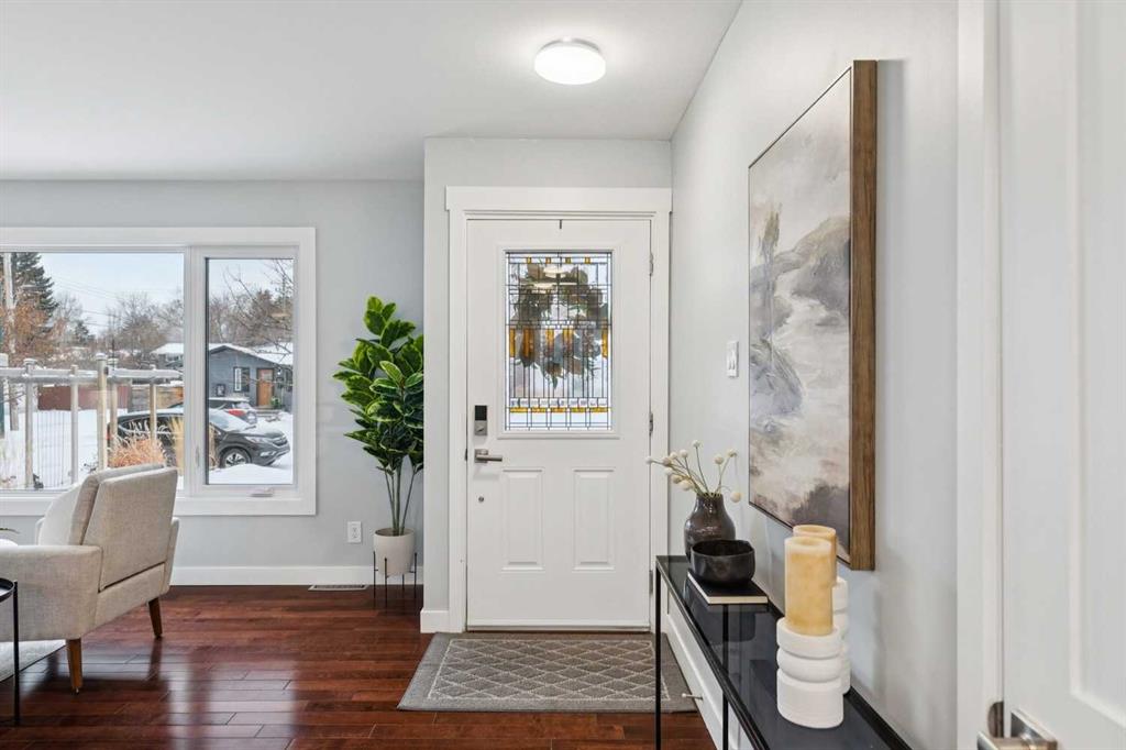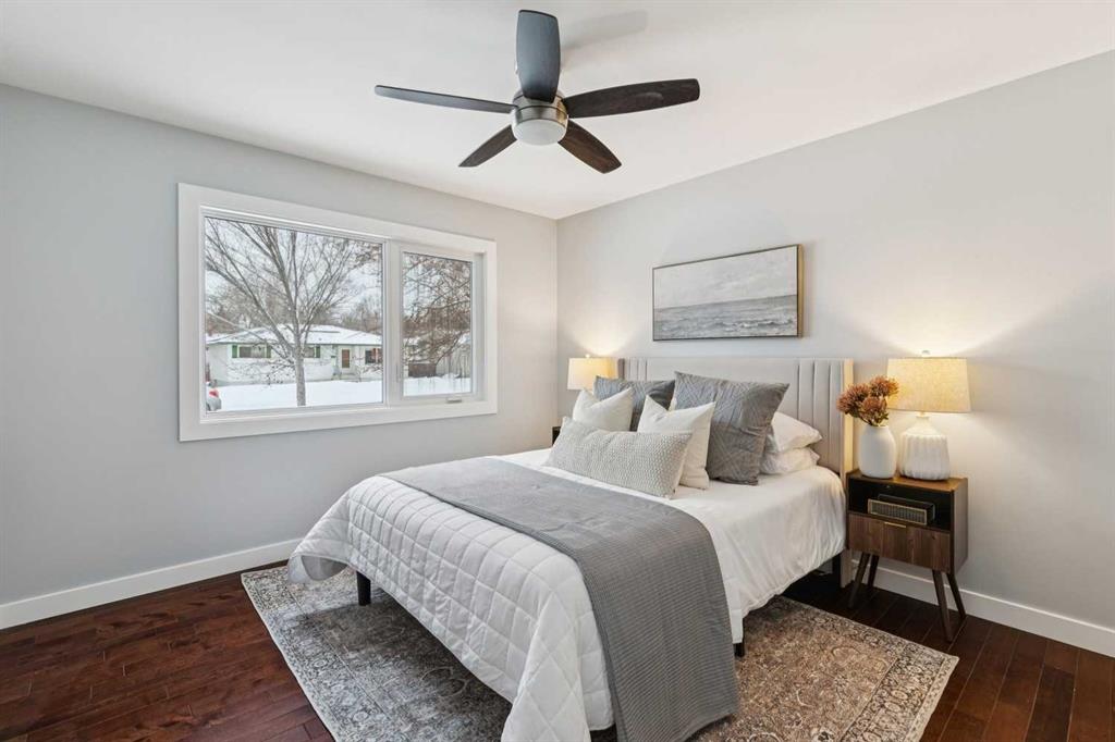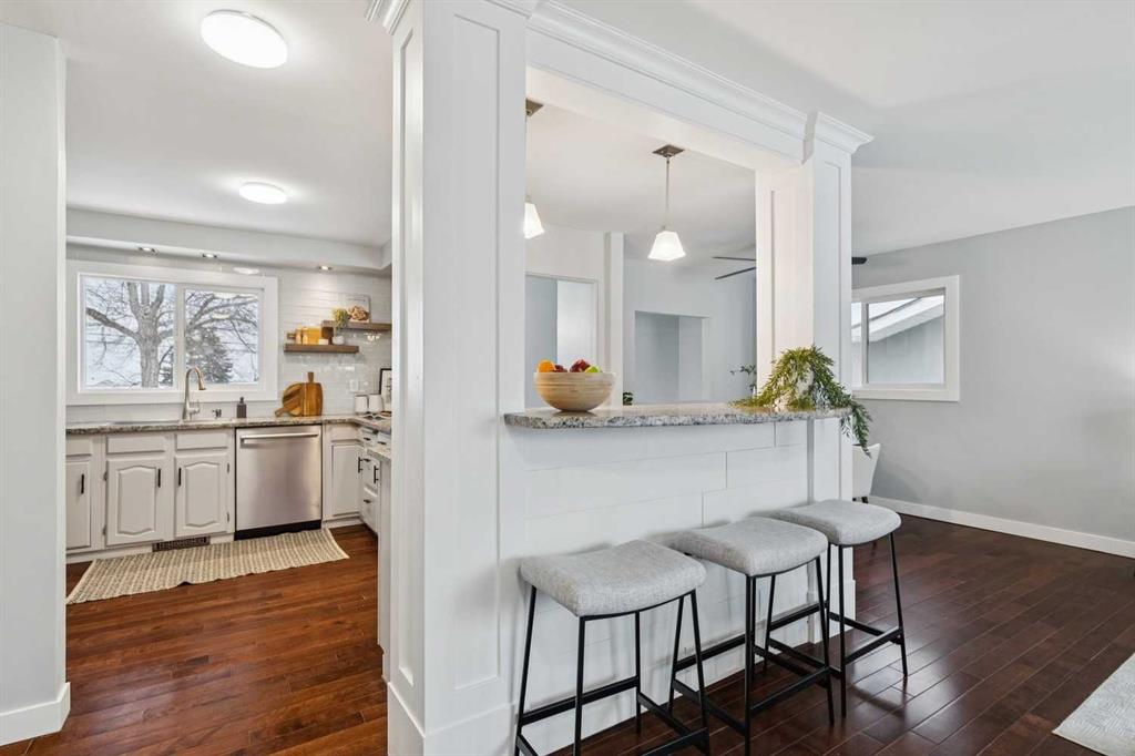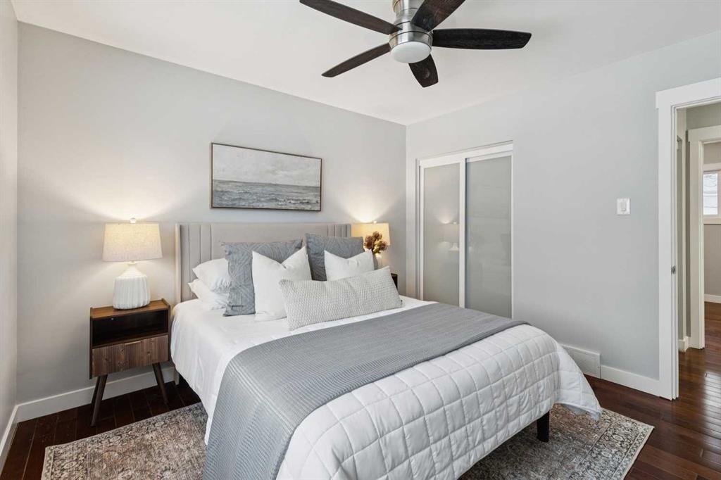 Welcome to this beautifully renovated bungalow nestled in the heart of Fairview, a mature, tree-lined community known for its welcoming feel and unbeatable convenience. Offering immediate possession, this move-in-ready home blends timeless charm with thoughtful modern updates throughout. Freshly painted throughout in 2025 and featuring new carpet in the fully developed basement (2025), the home is bright, refreshed, and ready for its next chapter. Hardwood floors grace the main level, where a large front window fills the inviting living room with natural light and overlooks the landscaped front yard. The kitchen has been tastefully updated with newly painted cabinetry, stylish new hardware, granite countertops, stainless steel appliances, a brand-new fridge, breakfast bar seating, new lighting, and even a water line behind the fridge for a future ice and water connection. The main floor offers 3 comfortable bedrooms and a full bathroom complete with a tiled tub & shower combo. Downstairs, the spacious lower level creates the perfect retreat with a large rec room with new carpet, new gas fireplace (2022), an added bedroom with egress window, a convenient half bathroom, laundry area, generous storage room, water softener, and a dedicated workbench space for projects and storage. Comfort continues with air conditioning added in 2021 and rough-in for central vacuum. Outside, the fully fenced backyard is designed for both relaxation and enjoyment, featuring mature lilac bushes, a dog run, a large deck ideal for summer evenings, back alley access, and the rare bonus of an off-leash dog park directly behind. Parking for 4 is effortless with a detached single garage boasting a new smart overhead door (2021), new shingles (2021), and a gas line already run for a future heater, plus 1 driveway stall and 2 additional spaces beside the garage. The house roof was comprehensively redone in 2021 with new shingles, eaves, soffits, and downspouts, and the front windows were replaced in 2024 All new attic insulation in 2021. Ideally situated near Fairview School and Lord Beaverbrook High School, close to parks, shopping, transit, and with quick access to Glenmore Trail and Macleod Trail, this lovingly maintained home offers the perfect blend of comfort, functionality, and location in one of Calgary’s most established neighbourhoods.