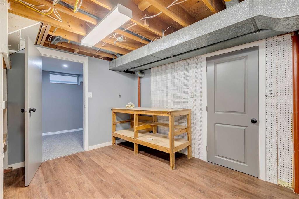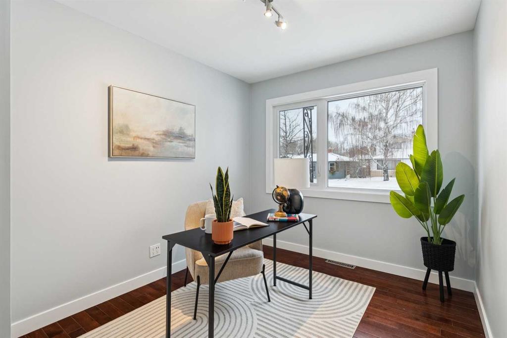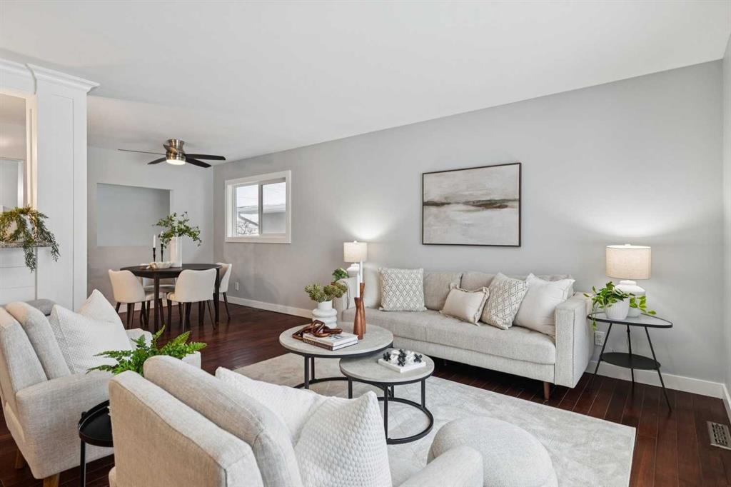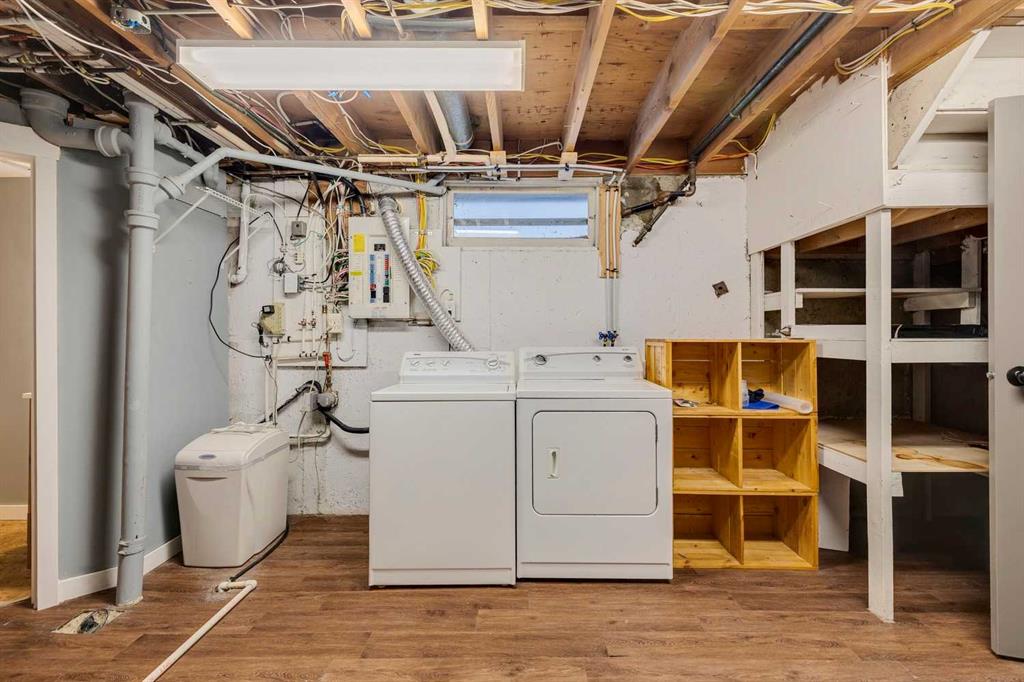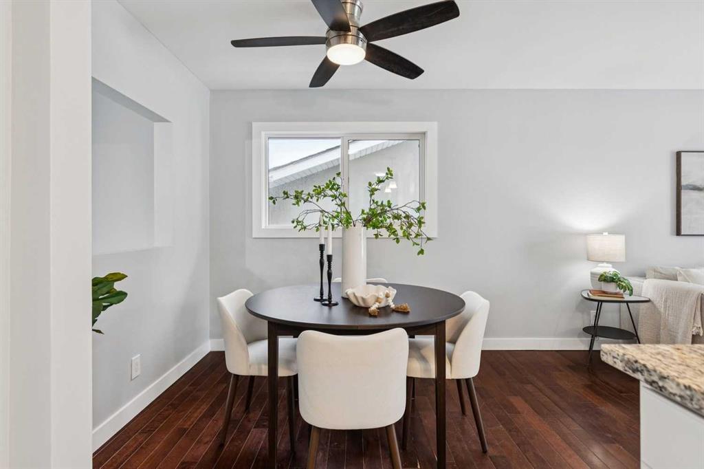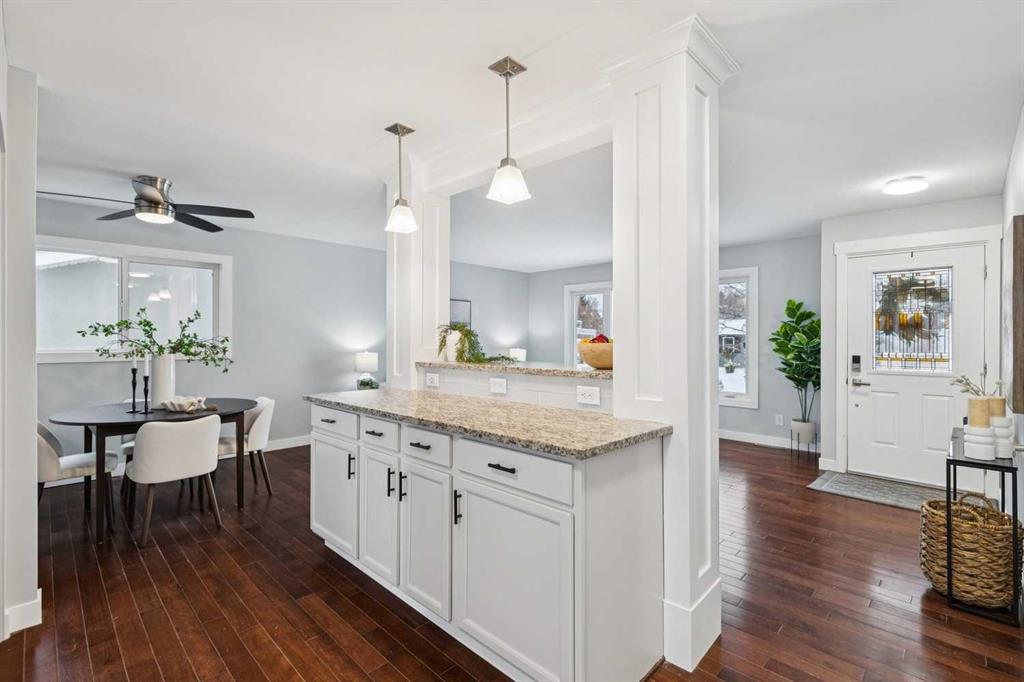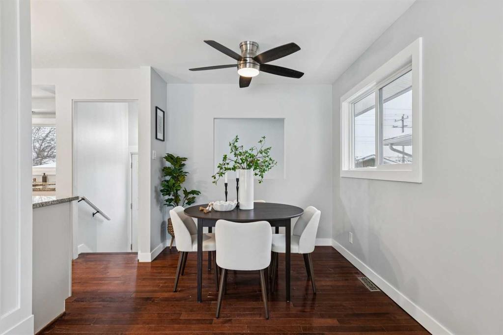 Welcome to this beautifully renovated bungalow nestled in the heart of Fairview, a mature, tree-lined community known for its welcoming feel and unbeatable convenience. Offering immediate possession, this move-in-ready home blends timeless charm with thoughtful modern updates throughout. Freshly painted throughout in 2025 and featuring new carpet in the fully developed basement (2025), the home is bright, refreshed, and ready for its next chapter. Hardwood floors grace the main level, where a large front window fills the inviting living room with natural light and overlooks the landscaped front yard. The kitchen has been tastefully updated with newly painted cabinetry, stylish new hardware, granite countertops, stainless steel appliances, a brand-new fridge, breakfast bar seating, new lighting, and even a water line behind the fridge for a future ice and water connection. The main floor offers 3 comfortable bedrooms and a full bathroom complete with a tiled tub & shower combo. Downstairs, the spacious lower level creates the perfect retreat with a large rec room with new carpet, new gas fireplace (2022), an added bedroom with egress window, a convenient half bathroom, laundry area, generous storage room, water softener, and a dedicated workbench space for projects and storage. Comfort continues with air conditioning added in 2021 and rough-in for central vacuum. Outside, the fully fenced backyard is designed for both relaxation and enjoyment, featuring mature lilac bushes, a dog run, a large deck ideal for summer evenings, back alley access, and the rare bonus of an off-leash dog park directly behind. Parking for 4 is effortless with a detached single garage boasting a new smart overhead door (2021), new shingles (2021), and a gas line already run for a future heater, plus 1 driveway stall and 2 additional spaces beside the garage. The house roof was comprehensively redone in 2021 with new shingles, eaves, soffits, and downspouts, and the front windows were replaced in 2024 All new attic insulation in 2021. Ideally situated near Fairview School and Lord Beaverbrook High School, close to parks, shopping, transit, and with quick access to Glenmore Trail and Macleod Trail, this lovingly maintained home offers the perfect blend of comfort, functionality, and location in one of Calgary’s most established neighbourhoods.