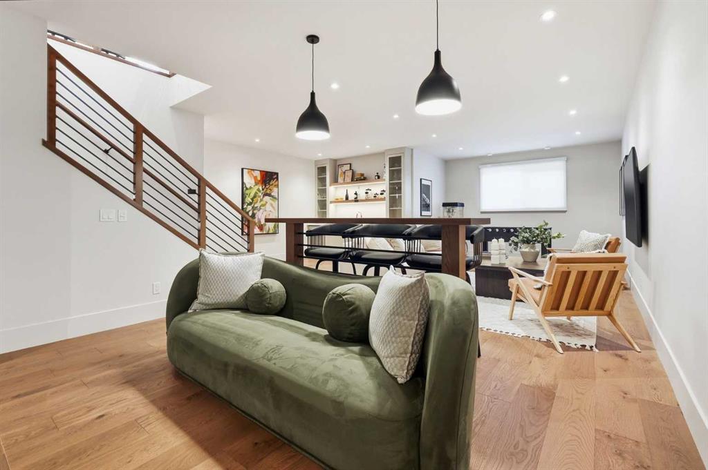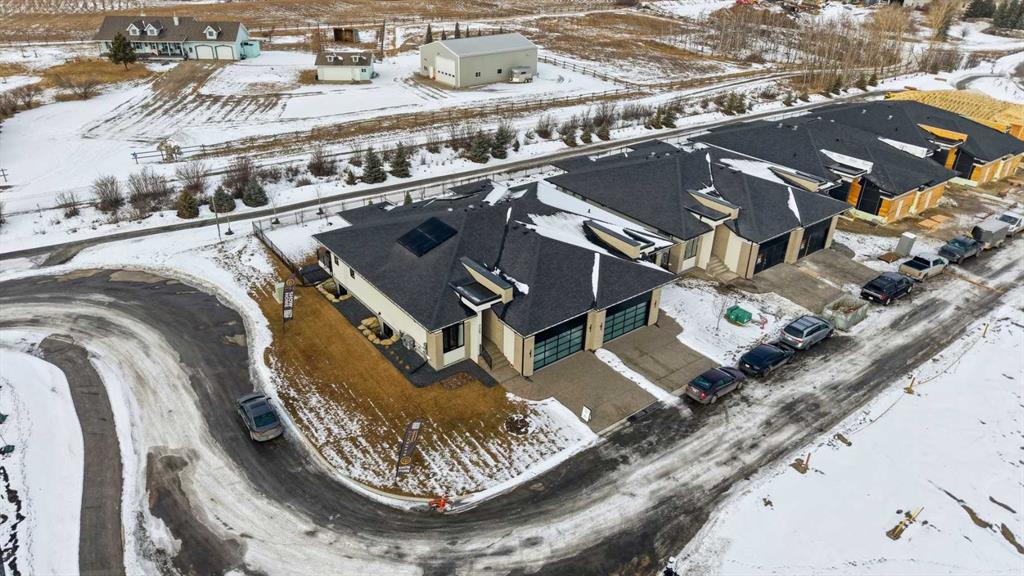 Nestled in the heart of Serenity at Heritage Pointe and backing onto a beautifully landscaped greenspace, this luxurious 3 bedroom, 2.5 bath townhome with the Sawyer floorplan has been carefully crafted by RareBuilt Homes & offers over 3200 sq ft of exceptional living space. The open concept main floor impresses with engineered wide plank hardwood, custom tile detailing, 10’ ceilings, and a spacious great room with large sliding doors that open to a covered rear deck and private fenced yard. The chef inspired kitchen is equipped with a full KitchenAid appliance package, including a six burner gas cooktop, custom hood fan, refrigerator/freezer, dishwasher, and built in oven with convection microwave. A generous island, ample storage, and thoughtful layout make this kitchen ideal for both everyday living and entertaining. A stylish home office with beam detailing adds both character and functionality. The primary suite provides a serene retreat, complete with a spa inspired 5 piece ensuite featuring heated floors, a freestanding soaker tub, an oversized shower, and a custom walk in closet. The fully finished basement extends the living space with a large recreation room, two additional bedrooms, a full bath, roughed-in theatre room and a large, finished storage room. Additional highlights include a 3 stop elevator, tilt and turn triple glazed windows, 6 standard solar panels, a high efficiency furnace, heat pump, air conditioning, and radiant in floor heating—ensuring year round comfort and energy efficiency. Outside, enjoy a covered composite rear deck with custom aluminum railing plus a fully landscaped & irrigated yard including ornamental fencing and gate in the rear yard providing access to 2 km of local pathways. Parking is effortless with a fully finished and painted oversized double attached garage complete with epoxy flooring, aggregate driveway and EV charger readiness. Enjoy the freedom of full landscape maintenance and snow removal plus close proximity to Heritage Pointe Golf Club, LaunchPad Golf at Heritage Pointe & easy access to Calgary or Okotoks via highway 2 or 2A.
