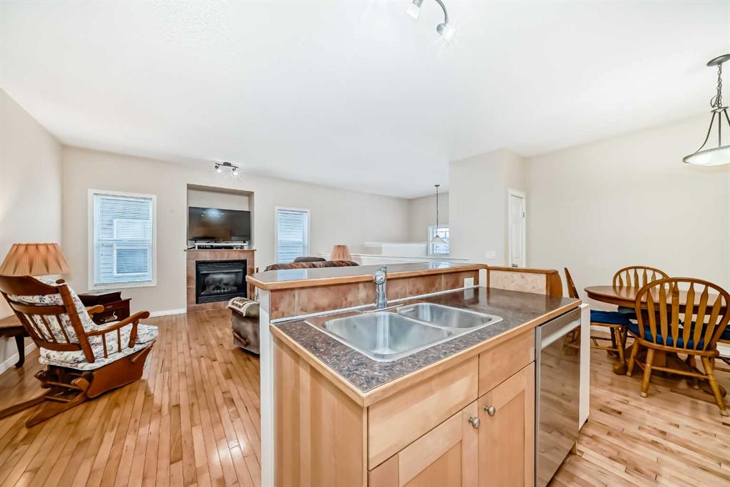 Step into a spacious tiled entryway that offers the option to head up or down. The main floor welcomes you with a bright and inviting great room, featuring a cozy gas fireplace with a tile surround and maple mantle—perfect for relaxing or entertaining.