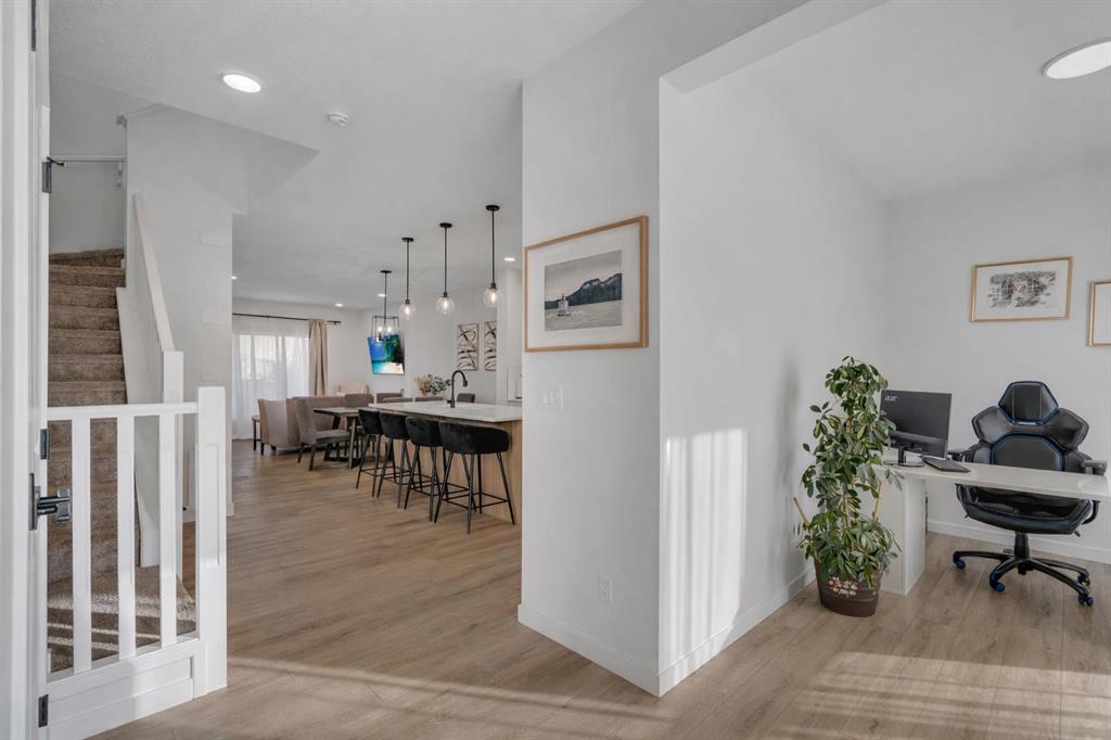 Welcome to this beautiful home in the community of Rangeview Springs! The main level features a bright, open floor plan with modern finishes, spacious living and dining areas, an office/flex space and a convenient half bath. Upstairs you’ll find three bedrooms, including the primary with its own ensuite bathroom, plus another full bath and a large bonus room with vaulted ceilings. The separate laundry room offers convenience and space for extra storage.