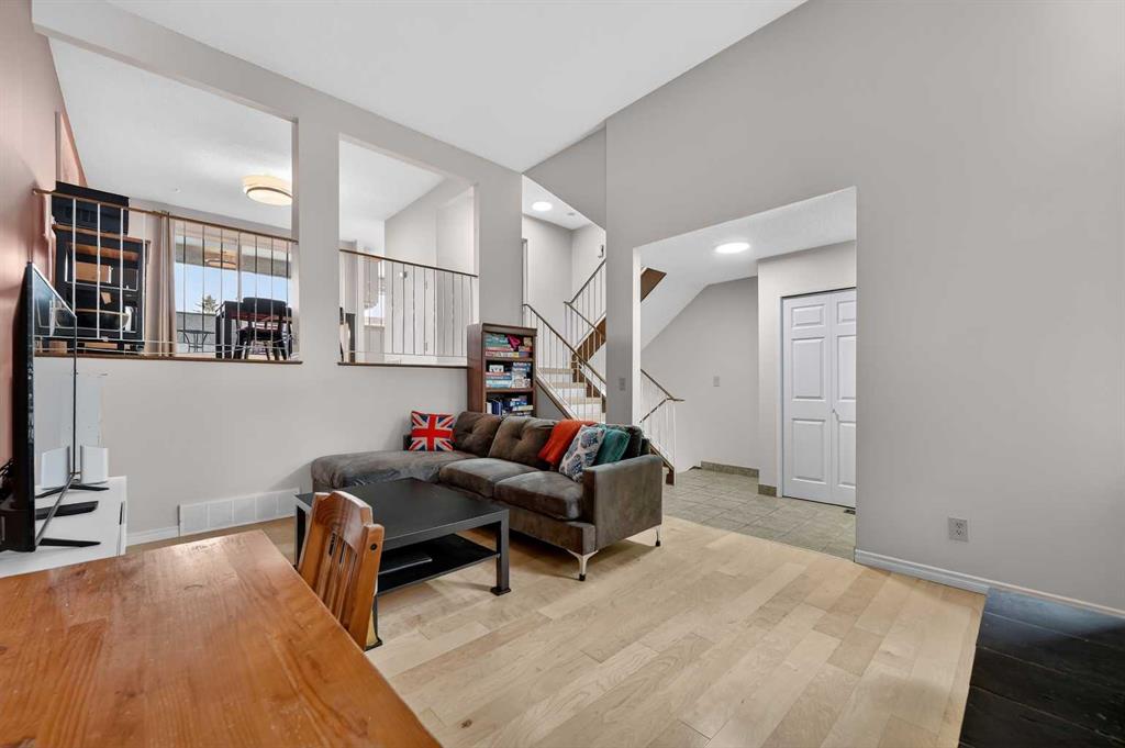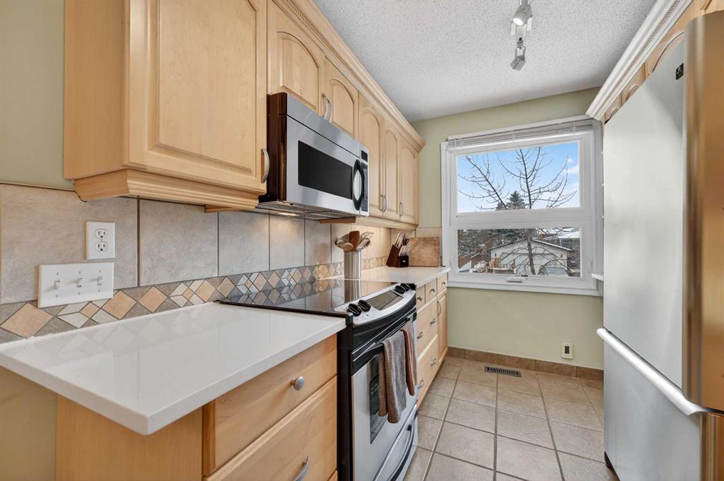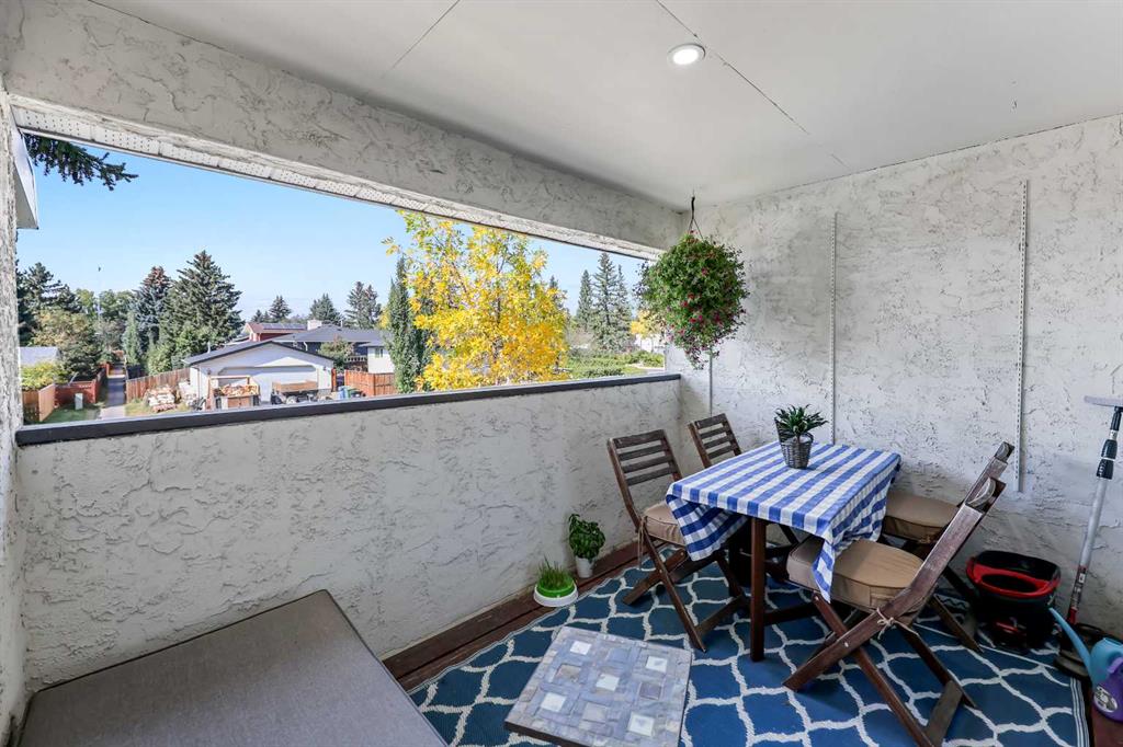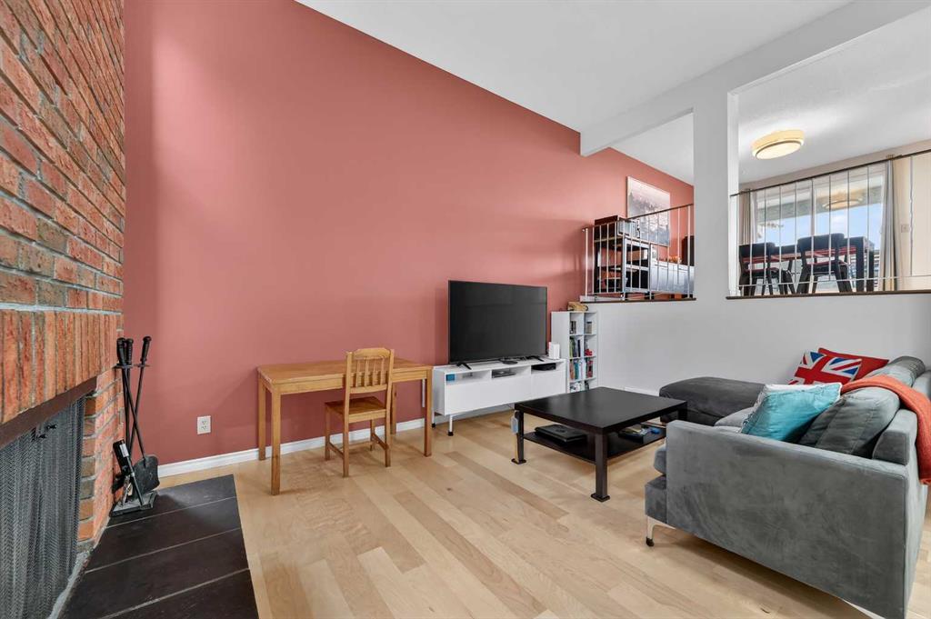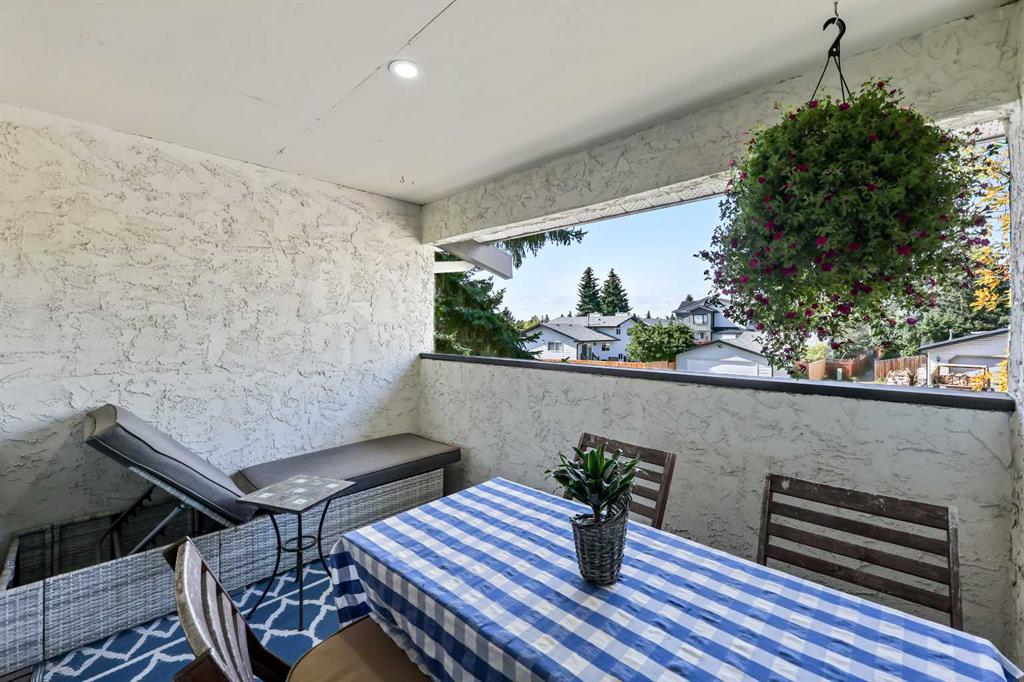 ** OPEN HOUSE SAT Apr 11, 2-4pm *** WEST facing END unit with COVERED front BALCONY in coveted 5400 Dalhousie! UPDATED and clean with a fully finished basement, this unit has so much to offer. TILE front foyer is SPACIOUS with lots of room for mudroom gear. GREAT ROOM with cathedral ceiling, NEW engineered HARDWOOD flooring, WOOD burning fireplace, stunning brick masonry floor to ceiling, SLATE hearth, ALL NEW 3pane WINDOWS (throughout!), great gathering space, with door to your very PRIVATE backyard with PATH behind. Engineered HARDWOOD continues in upper DINING room with lots of room for large table, hutch or curio cabinet. RENOVATED kitchen with MAPLE cabinets, PULLOUT pantry, QUARTZ countertops, new SINK, HEATED FLOORS, STAINLESS STEEL appliances w/NEW DISHWASHER (2025), UNDER COUNTER lighting, LOADS of storage. Pause and TAKE IN the COVERED WEST balcony, one of a handful in the complex, with MOUNTAIN VIEW. 2-piece powder room with HEATED floor. UPPER level has LARGE PRIMARY bedroom, sitting amongst tree tops from double windows view over the backyard, DOUBLE closets for all your things, 2ND bedroom with BIG closet and WEST VIEW. FAMILY BATH with SOAKER tub, MAPLE vanity with ADDED banks of STORAGE, black hardware. Deep LINEN CLOSET holds more than just linens! FINISHED basement is bonus FLEX space and includes NEW Electrolux w/d LAUNDRY (Aug 2025, done under permit). NEW HWT (2024), Patio doors (2024), Windows (2025), RE-INSULATED attic (2024), NEW bathroom fans (2024). All this with a SINGLE ATTACHED GARAGE with direct entry into your home, an ABUNDANCE of AMENITIES including indoor pool, fitness, racquetball court, gym, party space, deck with view of COP, sauna, games room, kitchen. Walking distance to shops, Dalhousie LRT station, schools and community association! This home stays warm in winter and cool in summer in a complex that offers so much for families!