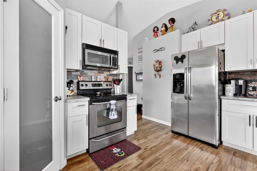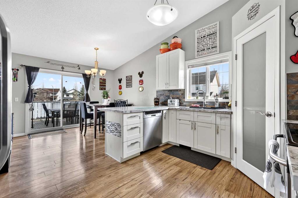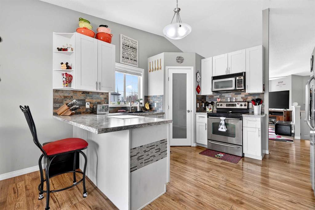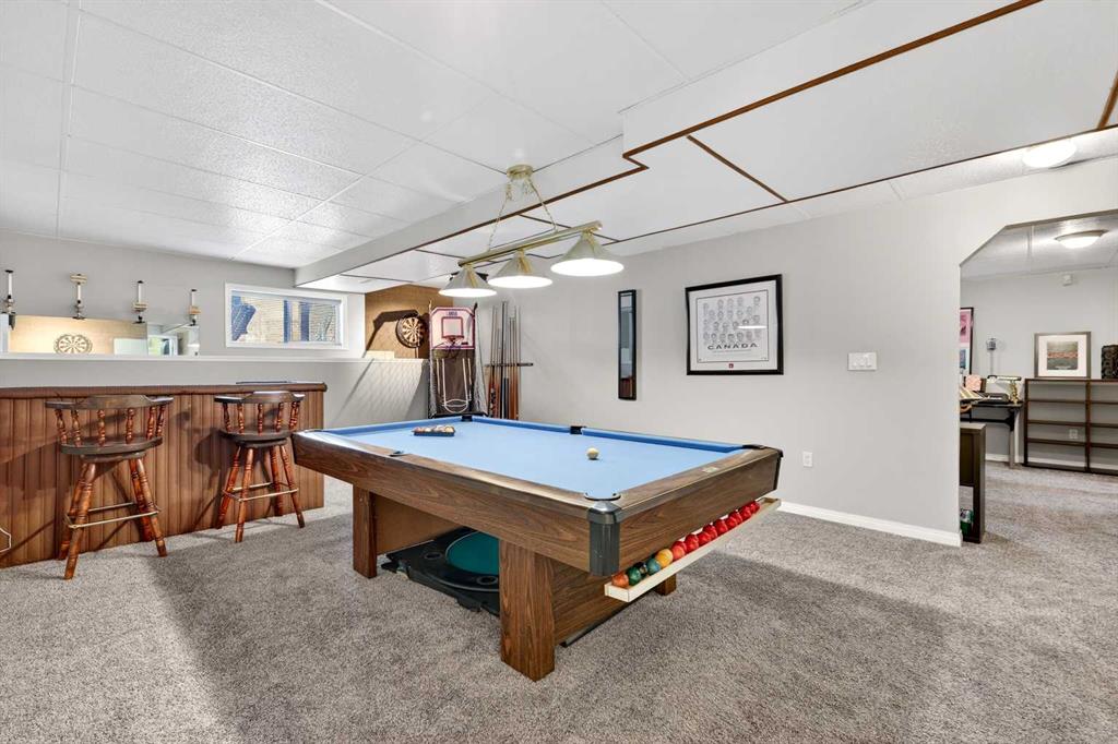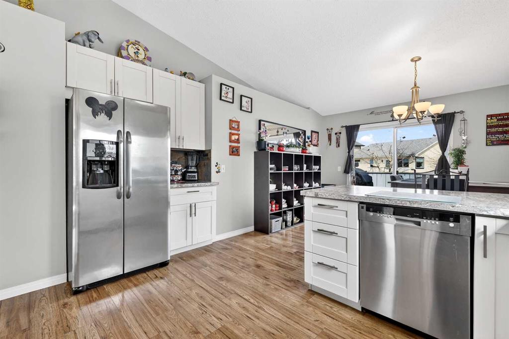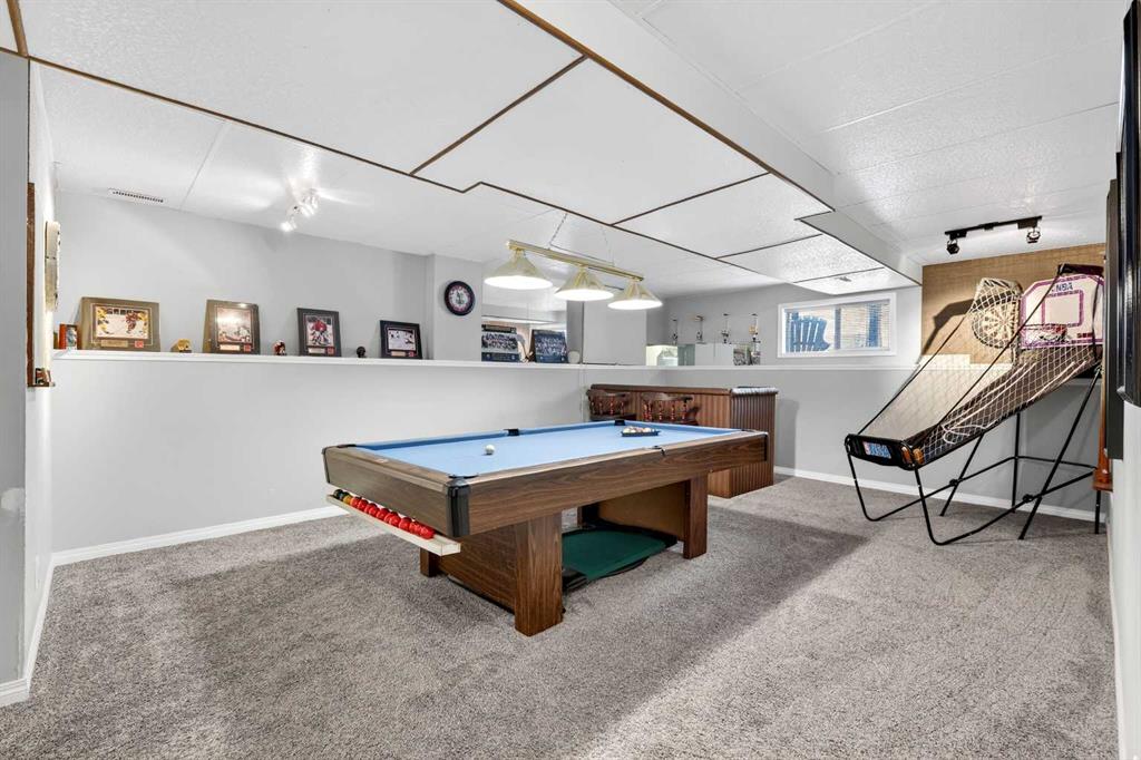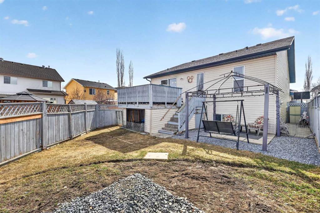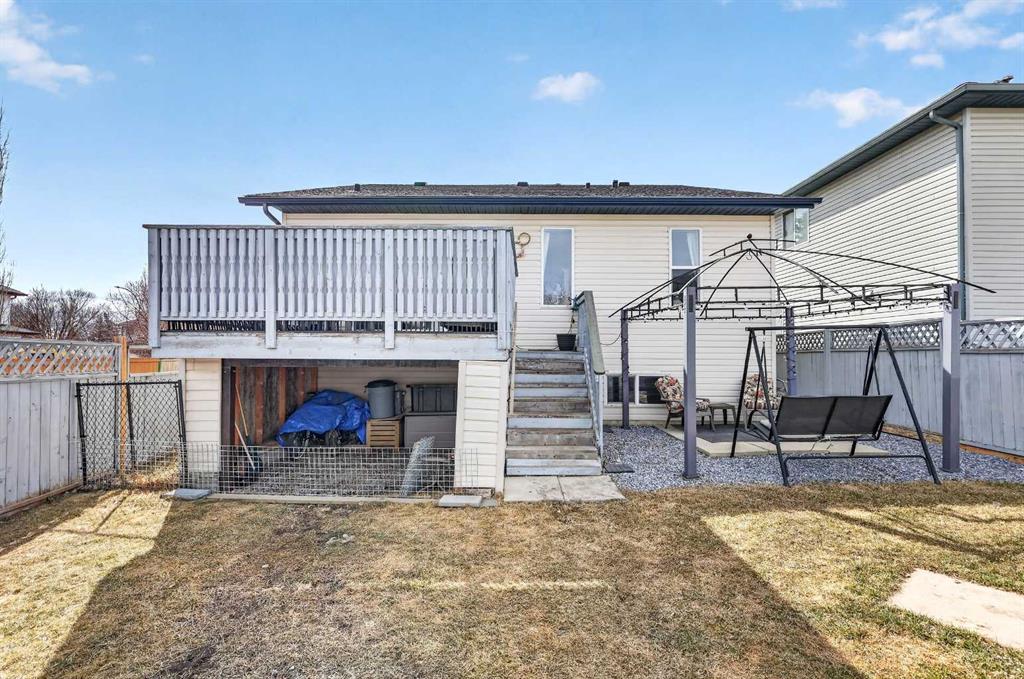 Welcome to this beautifully updated bi-level home in the highly sought-after community of Crystal Ridge, offering year-round lake access and situated on a desirable corner lot with back alley access and a wide driveway. Step inside to a bright and spacious living room, perfect for relaxing or entertaining, alongside an updated kitchen featuring stainless steel appliances and ample cabinetry. The main floor offers three generously sized bedrooms, including a primary suite with a cheater ensuite complete with an extra-wide, extra-deep jetted bathtub—your own private retreat. The fully developed basement is built for entertaining, featuring a massive family and recreation area with a pool table, bar, additional bedroom, and full bathroom—ideal for hosting guests or creating the ultimate hangout space. Outside, the yard is designed for enjoyment with a good-sized deck and a stone patio complete with a gazebo, perfect for summer evenings and outdoor gatherings. Enjoy the unbeatable lifestyle that comes with Crystal Ridge living—year-round lake access featuring a sandy beach, paddle boats, volleyball courts, and fishing in the summer, plus ice hockey and skating in the winter. This home is also within easy walking distance to Dr. Morris Gibson School, the lake, and recreation facilities, making it perfect for families. Conveniently located close to shopping, schools, and all amenities, this property offers the perfect blend of comfort, functionality, and community living.