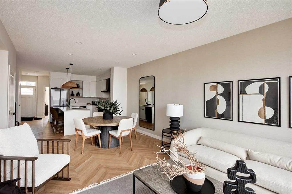 The Lucca by Cardel Homes is a move-in ready, premium paired showhome in the family-friendly community of Fireside, Cochrane. Showcasing Cardel’s signature better design and quality, this 1,867 sq. ft. home offers a light-filled, open-concept layout with 9′ ceilings, luxury vinyl plank flooring, and a versatile main-floor flex room. The upgraded kitchen features quartz countertops, custom cabinetry, matte black fixtures, and stainless-steel appliances. Upstairs includes a spacious loft, upper-floor laundry, and a primary retreat with walk-in closet and dual-sink ensuite. Additional highlights include air conditioning, a separate side entrance to the basement, rear detached garage, and concrete patio. A rare opportunity to own a professionally designed, fully upgraded showhome. Photos are representative.