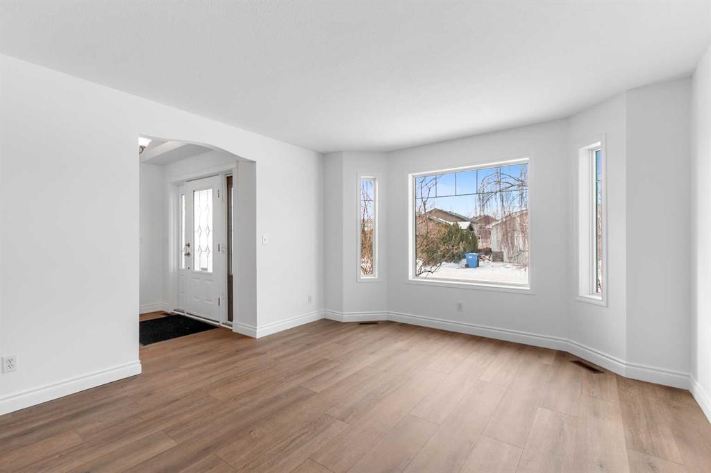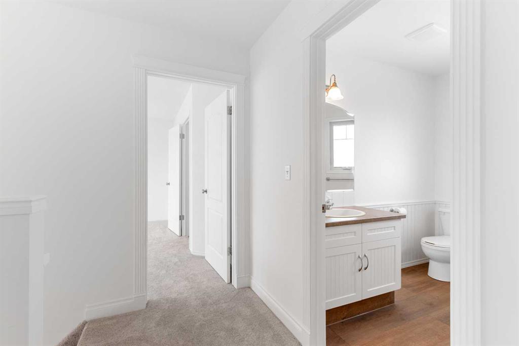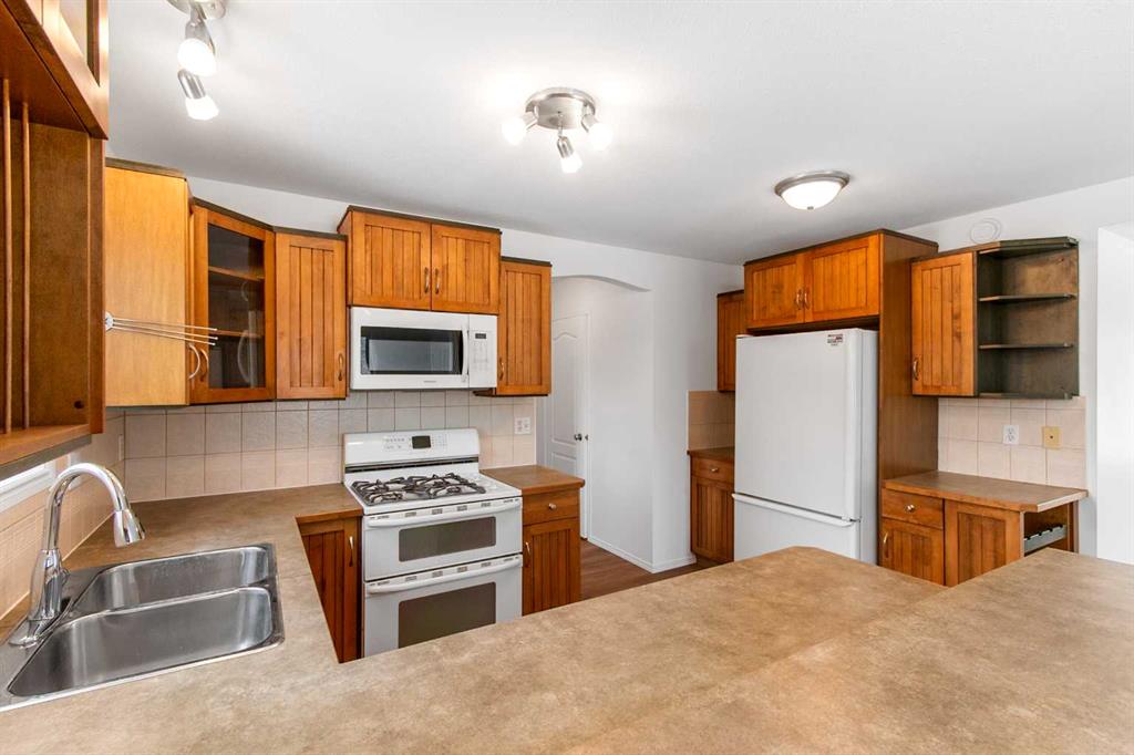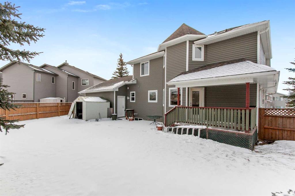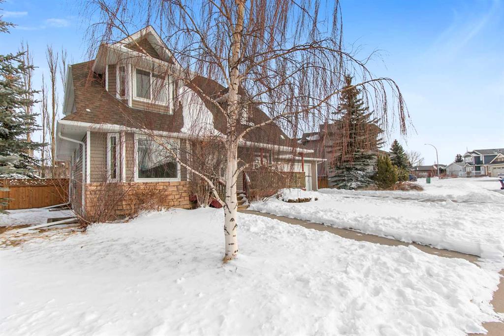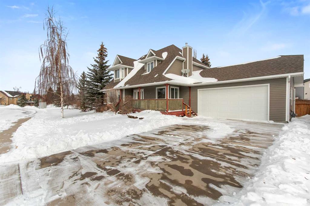This Carstairs home was originally built as a show home and offers a thoughtful layout with tons of built in features, on a 0.35-acre lot bordered by mature trees. You will love the south facing covered front porch, no neighbors beside overlooking the beautiful GREENSPACE. Appreciate the FENCED YARD + covered rear DECK & PATIO area creating a PRIVATE SETTING that feels tucked away while still being part of a welcoming neighborhood. Built in 2002, the home is flooded with NATURAL SUNLIGHT & has been refreshed with 2026 updates to flooring, paint, light fixtures on the main and upper levels, & Furnace in 2025 giving it a clean, comfortable feel. The main floor flows easily from the kitchen—finished with attractive cabinetry & numerous built in features—into a flexible dining or office space, and then into the living room where a double sided GAS FIREPLACE adds warmth and character. Upstairs, the primary bedroom is set apart with a walk-in closet and 3-PIECE ENSUITE, while two additional bedrooms and a 4-piece bath make the upper level practical and well balanced. Downstairs, you will find large windows bring natural light into the family and hobby room, offering space to relax, create, or gather, with rough-ins for a bathroom and wet bar. The backyard has easy access from the DOUBLE ATTACHED GARAGE, complimented by an extended driveway for vehicles & toys. Set in a family-friendly area of Carstairs, with walking paths nearby and the golf course just minutes away, this is a home that offers space, privacy, and a comfortable pace of living.
