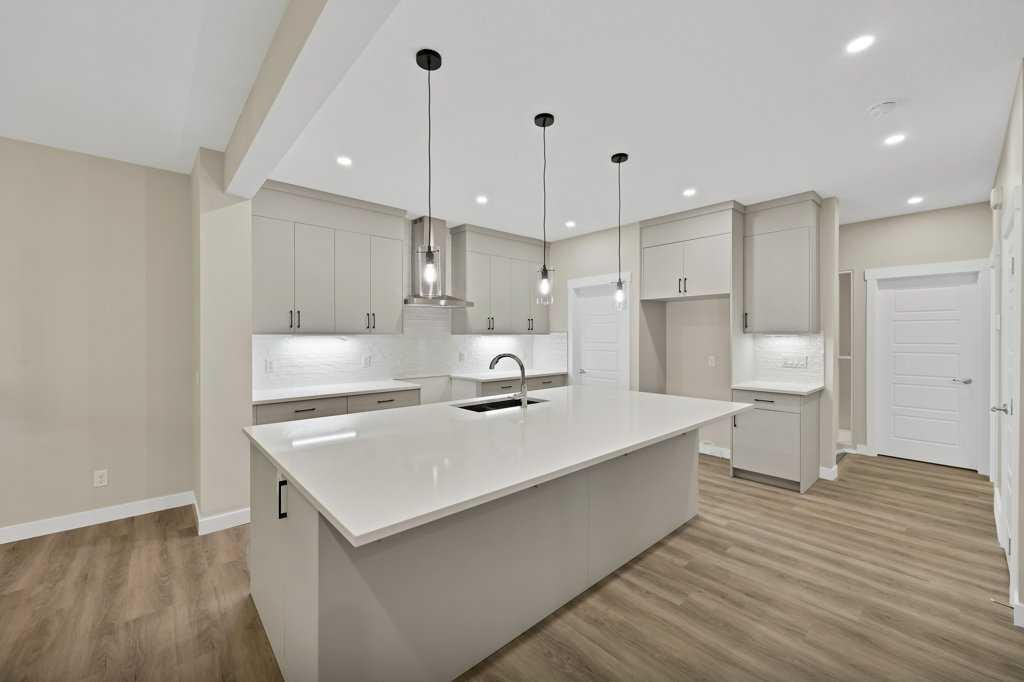 Welcome to this beautifully appointed FD 120 MODEL in the amenity-rich community of Cornerstone. Situated on an east-facing lot, this thoughtfully designed property offers exceptional space and functionality. The main floor features a bedroom and full bathroom, ideal for guests or multi-generational living, along with an open-concept layout. The central kitchen is a standout, complete with stainless steel appliances, gas stove, and chimney-style hood fan, built-in microwave, seamlessly flowing into the dining area and spacious living room with an electric fireplace. Upstairs, you’ll find three generously sized bedrooms, a bonus room with a VAULTED CEILING, three bathrooms, and a convenient laundry area which comes with front load washer and dryer. The home offers two primary bedrooms, each with walk-in closets and private ensuites (5-piece and 4-piece), while all bedrooms include walk-in closets for added storage. The basement features a separate side entrance, 9-foot ceilings, and large windows, providing excellent potential for future development. Located close to parks, schools, shopping, and transit, this home delivers comfort, versatility, and outstanding value in a vibrant community.