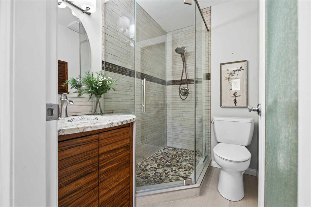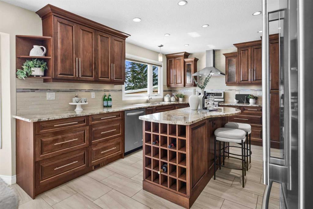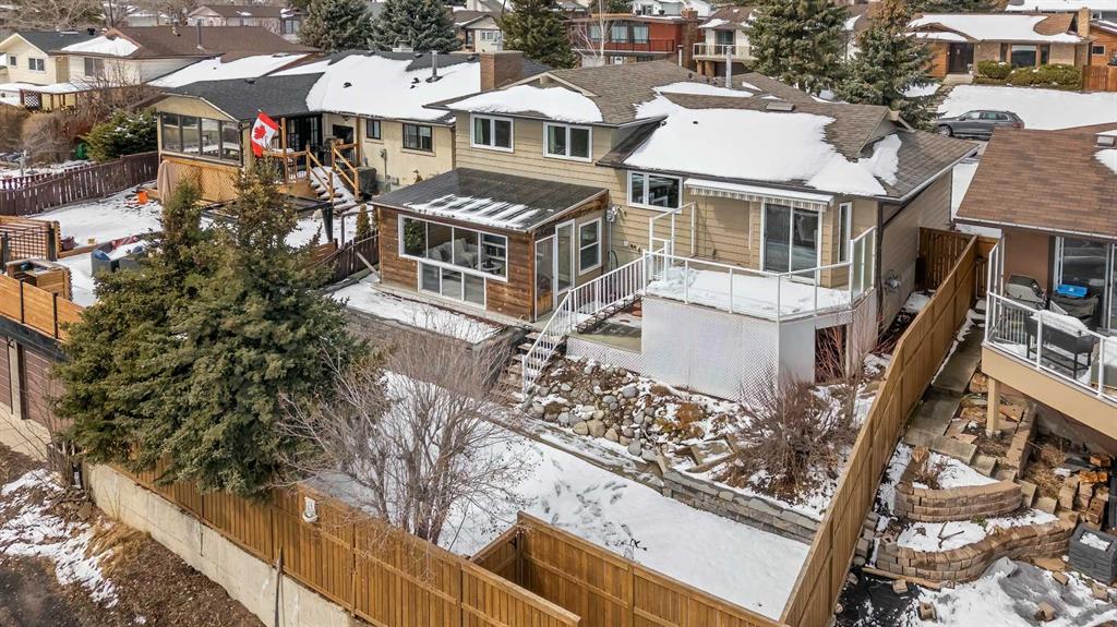 Tucked into a quiet pocket of North West Calgary, 7715 67th Avenue NW is a home that has been deeply cared for and thoughtfully reimagined over time. This cherished residence shows absolute pride of ownership with every renovation curated with intention. Not to be missed, the stunning panoramic views from the back of the city, COP and the mountains. The split-level design offers an expansive layout, delivering over 2,300 sq/ft of developed living space that adapts beautifully to family life. With four bedrooms, three full bathrooms, and a convenient half bath off the family room, the home provides both comfort and flexibility. Upstairs, you’ll find three well-appointed bedrooms, one of which is the primary, accompanied by a 3-piece ensuite. The second bathroom on this level provides ample space and function for the rest of the family. All three full bathrooms have been completely renovated with custom cabinetry. The lower level introduces a second primary suite complete with its own fully renovated 3 piece ensuite—ideal for any family combination. At the heart of the home, the kitchen stands as a testament to craftsmanship. Custom solid maple cabinetry, with soft-close drawers and dove-tailed joinery, pairs seamlessly with heated tile flooring and granite countertops. The refrigerator and the gas range with its double oven are brand new, literally weeks old and never used! Throughout the home, extensive renovations reflect careful attention to detail that goes beyond the surface, such as Burmese Teak Hardwood floors with inlaid tile on the stairs. The family room and sunroom level invites family time. Retractable, automated metal blinds on the windows make for great movie nights and the gas fireplace adds coziness. Major upgrades and updates will remove any worry around those “big ticket” home ownership fears. The roof, installed in 2014, comes with a transferable limited lifetime warranty featuring a hail-resistant Legacy Malarkey Shingle System. Outdoors, a newly constructed retaining wall in 2025 adds both structure and visual appeal to the landscape. The fence is newer and the exterior of the home has been clad in aluminum. A natural gas line for the BBQ has been added to the back deck. The eavestroughs were replaced five years ago, and the sunroom underwent a makeover in 2021. The sunroom is one of the home’s most captivating features: a light-filled sanctuary that captures sweeping city and mountain views. It’s a space that invites quiet mornings, Summer dinners and events with family, and general three season enjoyment. A bonus to the home is an oversized double attached, gas heated garage… no more cold and snow covered cars! It also comes complete with work benches and a compressor, perfect for the project enthusiast in the family. Set in a family-friendly community, the location is just as compelling as the home itself with schools nearby and a quick walk to the LRT. This is a forever home, ready for its next chapter. Comes with great neighbours too!
