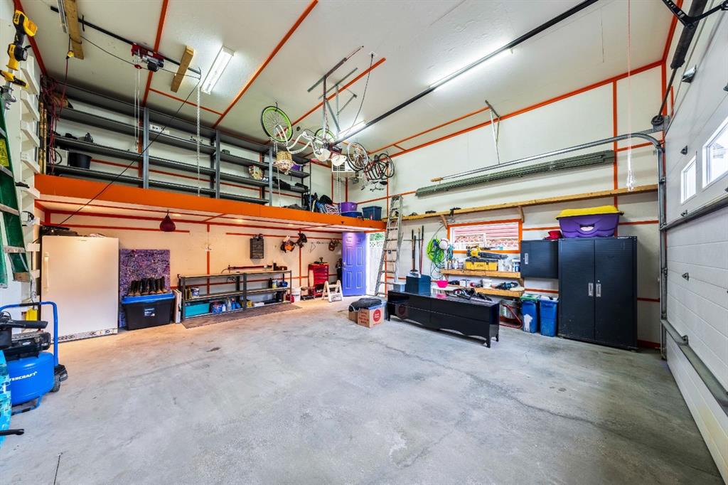 Need an oversized double garage? Look no further, this 22’ x 24’ HEATED garage is 575 sqft comes with a extra tall 18’x 10’ ft door and mezzanine storage, offering an exceptional and unique space for vehicles, hobbies, or a workshop—another feature rarely matched by new builds.