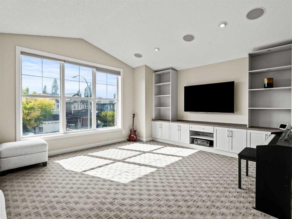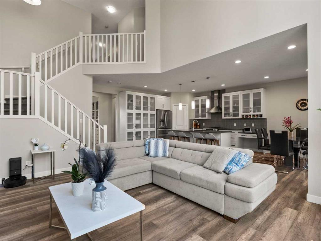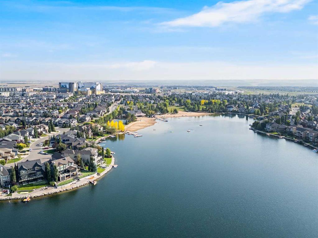 Lake lifestyle! Nestled in a quiet cul-de-sac just steps from the lake and Auburn Bay Schools, this stunning home sits on a massive, professionally landscaped pie lot. The open-concept main floor makes a grand statement with 18-ft floor-to-ceiling windows, custom built-ins, and a cozy gas fireplace. The chef-inspired kitchen boasts quartz countertops, white cabinetry, a gas range, and a walk-in pantry. Upstairs, the primary retreat features a 5-piece ensuite with a deep soaker tub and glass shower. Two additional bedrooms share a full bath, plus a huge vaulted bonus room with surround sound. The fully finished basement (9ft ceilings) is an entertainer’s dream, featuring a private theatre room with a projector, screen, and surround sound, plus a 4th bedroom and full bath. The backyard oasis is unrivaled: a custom pergola, stamped concrete, built-in fire pit. Enjoy year-round lake access in Calgary’s premier community. OPEN HOUSE: Sunday, Jan. 18 from 1-3 PM.
