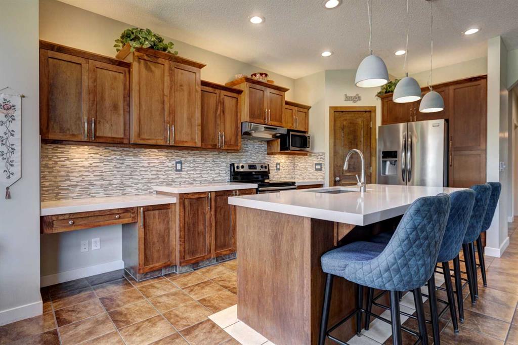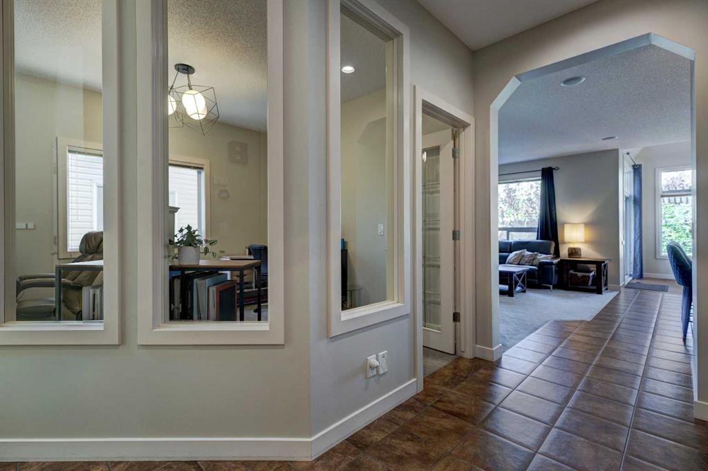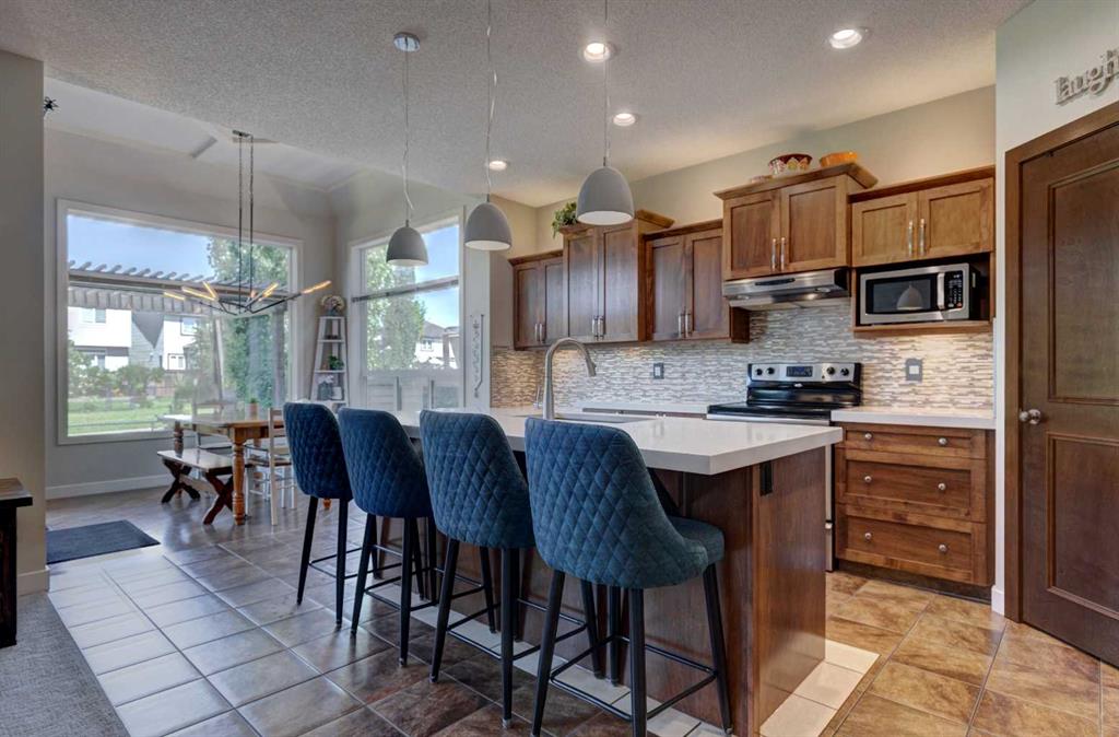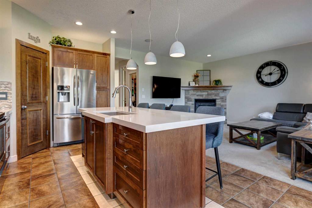 Step Into Luxury and Comfort in Cranston. Welcome to this exceptionally beautiful Cranston home, where elegance meets everyday functionality. From the moment you enter the inviting foyer, adorned with a striking modern chandelier, you’ll feel the warmth and sophistication that defines this residence. Main Floor Marvels: A sun-drenched open floorplan featuring a versatile office/flex space, perfect for creativity or productivity, A spacious and stylish living room anchored by a charming stone-faced fireplace, ideal for cozy family nights and lively gatherings. A gourmet kitchen with rich maple cabinetry, an oversized quartz-topped island, and a walk-in corner pantry—a true chef’s delight. A gracious dining area with a vaulted and coffered ceiling, perfect for hosting memorable dinners. A sleek buffet server cabinet ready to showcase your dream charcuterie spread. Central air conditioning ensures year-round comfort. Upper-Level Serenity: A generously sized primary suite with a spa-inspired 4-piece ensuite and a walk-in closet, Two bright and airy bedrooms and a modern 4-piece bath, A cozy bonus room—your go-to space for movie marathons and popcorn-filled evenings. Thoughtful Upgrades & Features: New carpet, fresh paint, and upgraded lighting throughout, a built-in sound system for immersive entertainment, new dishwasher and garburator for added convenience, and A fully drywalled and insulated double attached garage—perfect for Calgary winters. Next comes Outdoor Bliss: A charming backyard retreat with a spacious deck, elegant pergola, a stone firepit , a BBQ gas line for effortless outdoor cooking, situated on a Peaceful greenspace with great views with no rear neighbors and providing direct access to scenic walking paths. Basement Bonus:. An unspoiled basement with bathroom rough-in, Pex waterlines, and a unique hockey arena—a dream come true for sports lovers and your budding hockey player, plus ample storage space for all your seasonal gear. Prime Location Perks: Nestled in the heart of family-friendly Cranston, this home offers walking access to public and Catholic schools, access to lush parks, meandering trails, and a vibrant community association. Cranston Market is a feature of the community that provides many different stores and services including Sobeys, Petro Canada, the Berwick Public House, Subway, Good Earth Cafe as well as many professional services such as a dentist, an optometrist and a veterinary clinic. Enjoy quick routes to the majestic mountains, Stoney Trail, and Deerfoot Trail for seamless commuting. Put this home on your viewing list – you won’t be disappointed.